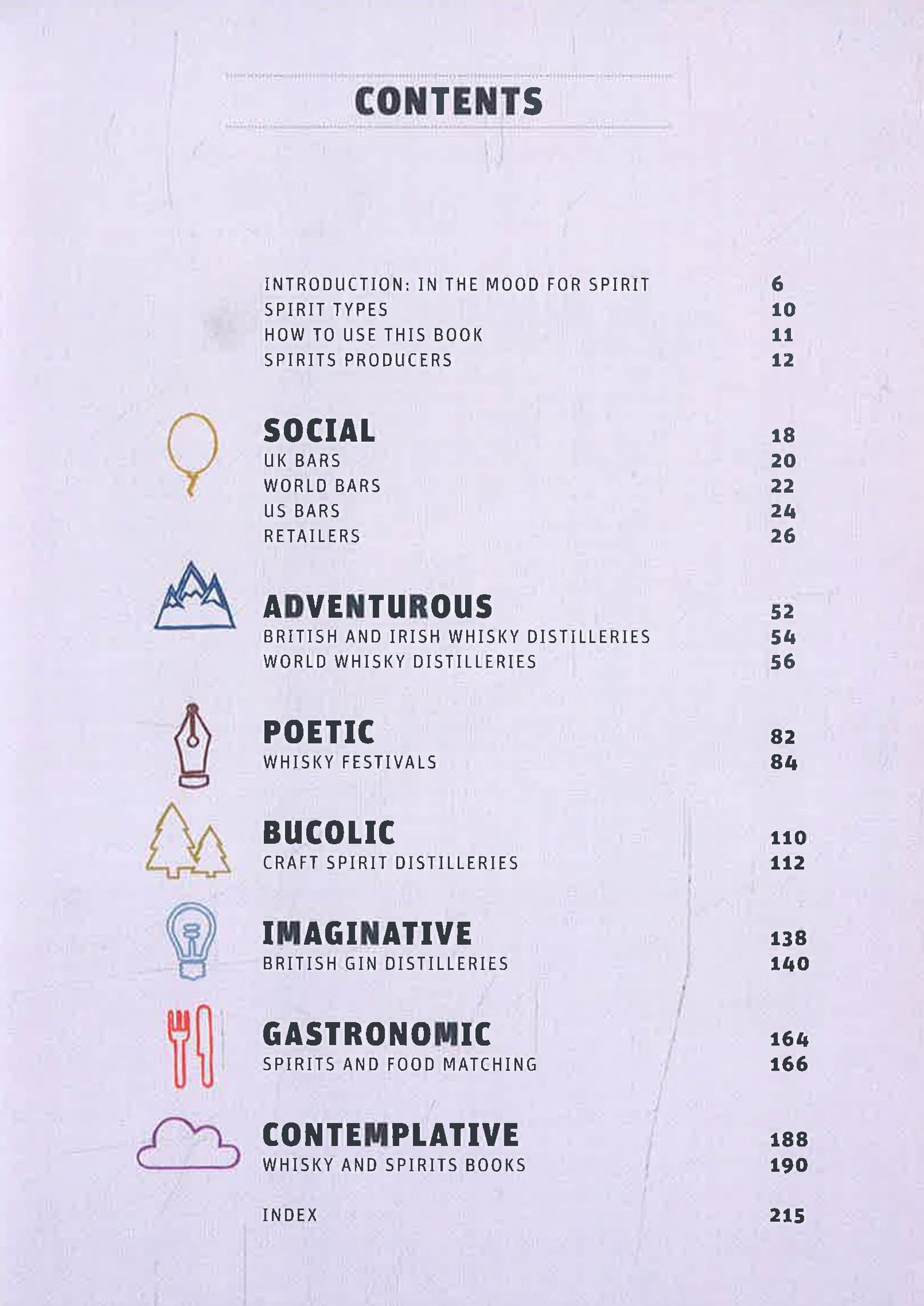 The second in the “Seven Moods” series, this little guide is destined to become the pocket bible to craft spirits for years to come. Now is the most exciting time for craft spirits. Craft distilling is riding a perfect wave, as consumers look for provenance and heritage, drink less but better, and seek bespoke and original drinks rather than homogenous global brands. Gin distilling has become particularly popular in London, tequila is back in fashion, Cuban rum is making a resurgence, and great whiskies are being created everywhere, from France to Japan, Taiwan to Denmark. Gone are the days of brand loyalty. Instead, drinkers are choosing from a portfolio of drinks to match where they are and what they are doing, from a relaxing gunpowder tea-based gin to a festive spiced rum, and from a contemplative single malt to a fiery absinthe. Brought together in one accessible guide, here are 350 of the world’s most interesting and innovative spirits – whiskies, gins, vodkas, rums, brandies, liqueurs, poteens, tequilas, piscas, schnapps, and brandies/cognacs. Researched and written by leading whisky writer, Dominic Roskrow, each entry includes a specially commissioned drawing, tasting description, strength, distillery information, and spirit type. Each chapter is devoted to seven different moods (Social, Adventurous, Poetic, Bucolic, Contemplative, Gastronomic, Imaginative), and alongside the entries there are numerous useful features on related subjects, including gin and whisky distilleries, spirit bars, whisky festivals, craft distillers, and mixing spirits and food.