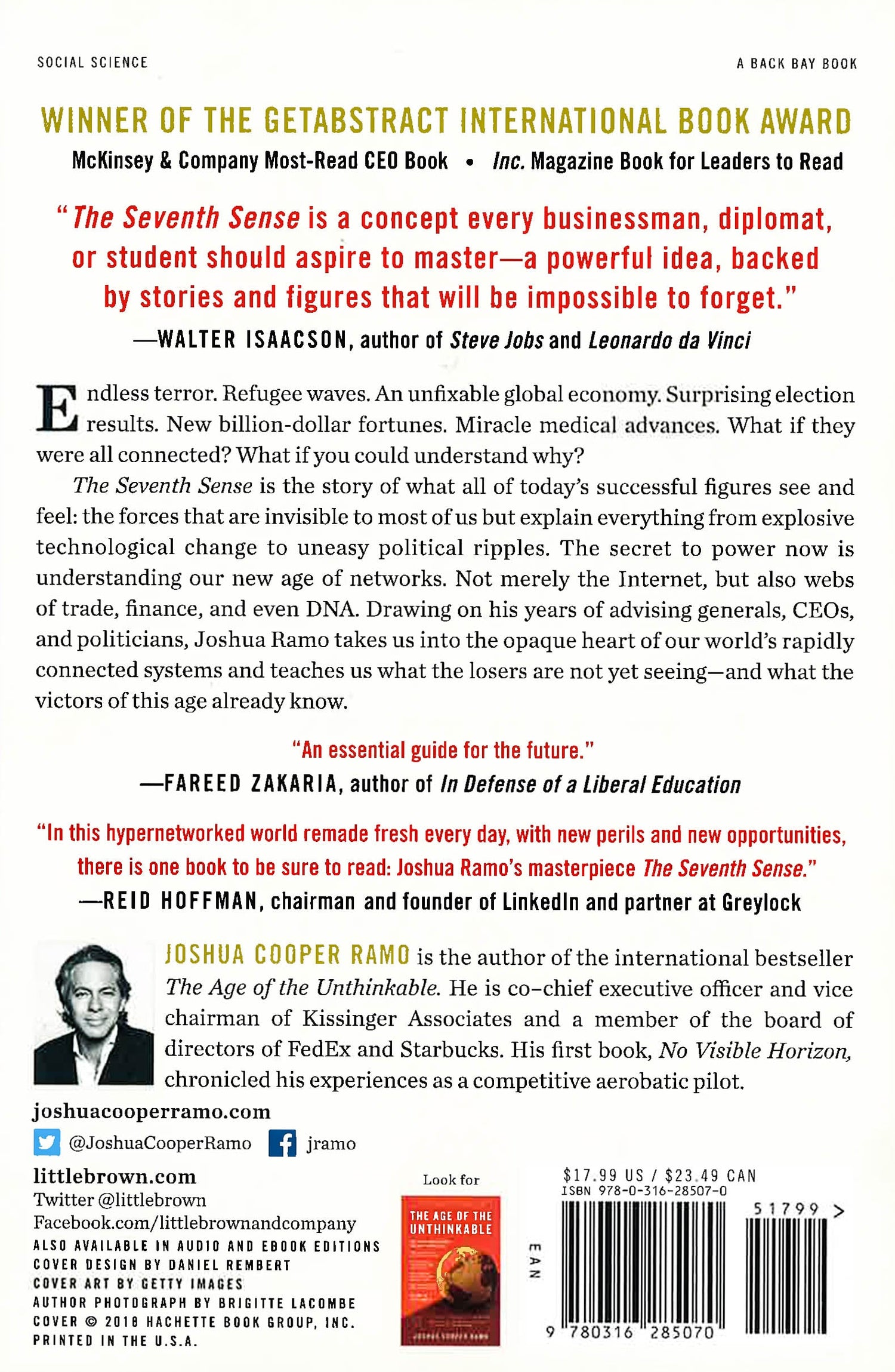 Endless terror. Refugee waves. An unfixable global economy. Surprising election results. New billion-dollar fortunes. Miracle medical advances. What if they were all connected? What if you could understand why?The Seventh Sense is the story of what all of today's successful figures see and feel: the forces that are invisible to most of us but explain everything from explosive technological change to uneasy political ripples. The secret to power now is understanding our new age of networks. Not merely the Internet, but also webs of trade, finance, and even DNA. Drawing on his years of advising generals, CEOs, and politicians, Joshua Ramo takes us into the opaque heart of our world's rapidly connected systems and teaches us what the losers are not yet seeing - and what the victors of this age already know.