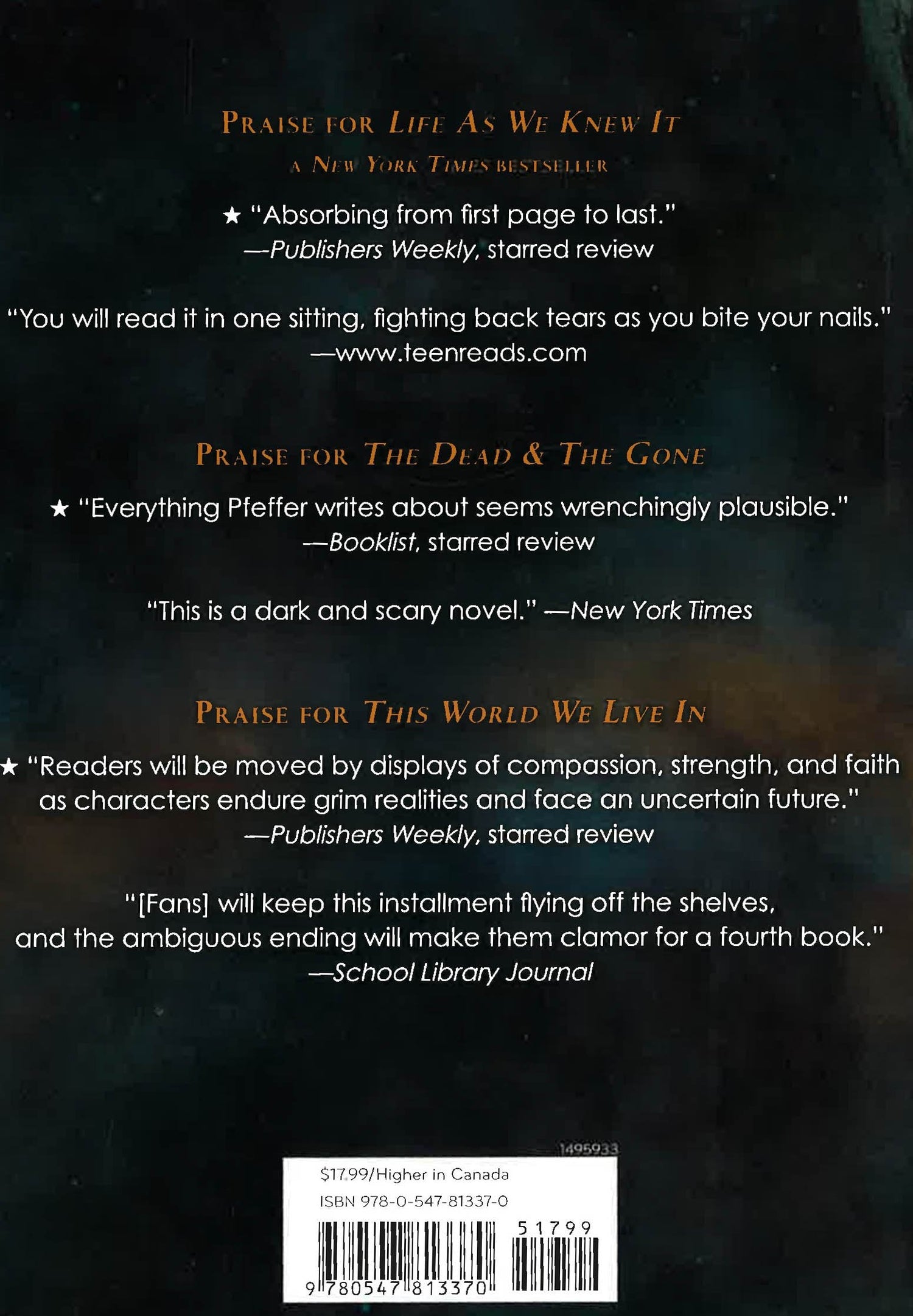 The eagerly awaited addition to the series begun with the New York Times best-seller Life As We Knew It, in which a meteor knocks the moon off its orbit and the world changes forever.