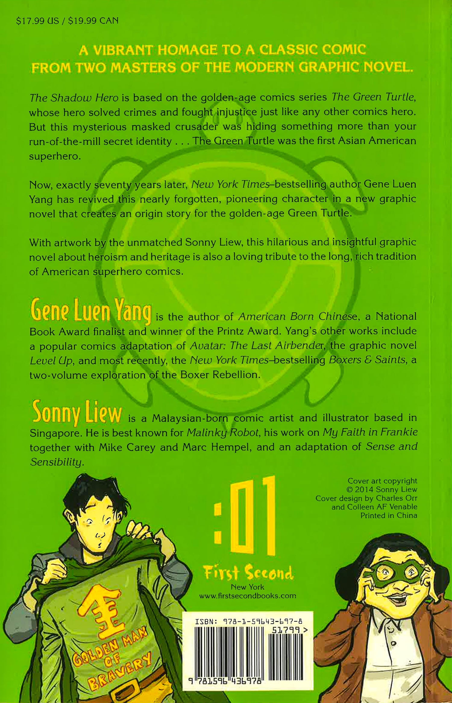 In the comics boom of the 1940s, a legend was born: the Green Turtle. He solved crimes and fought injustice just like the other comics characters. But this mysterious masked crusader was hiding something more than your run-of-the-mill secret identity . . . The Green Turtle was the first Asian American super hero. The comic had a short run before lapsing into obscurity, but the acclaimed author of American Born Chinese, Gene Luen Yang, has finally revived this character in Shadow Hero, a new graphic novel that creates an origin story for the Green Turtle. With artwork by Sonny Liew, this gorgeous, funny comics adventure for teens is a new spin on the long, rich tradition of American comics lore.