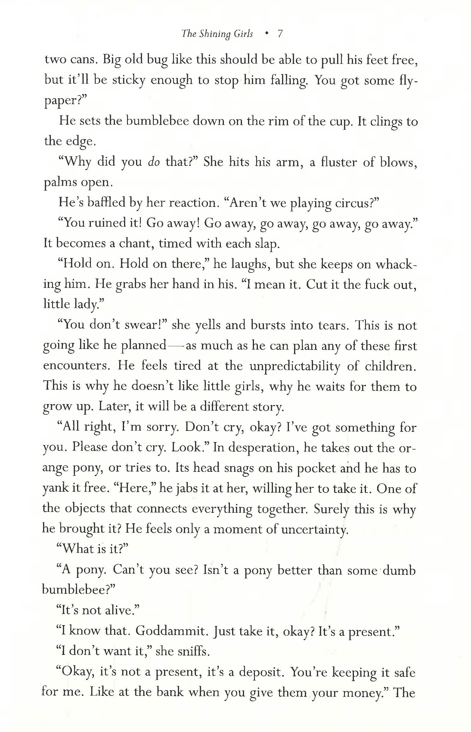 At the urging of the House, Harper inserts himself into the lives of these shining girls, waiting for the perfect moment to strike. He's the ultimate hunter, vanishing without a trace into another time after each murder -- until one of his victims survives.