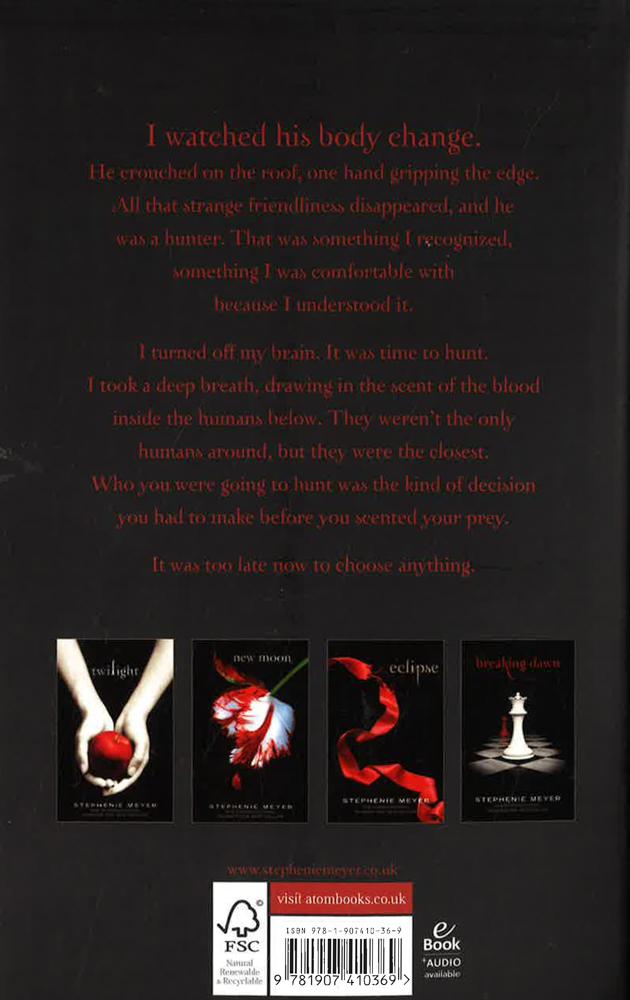Fans of The Twilight Saga will be enthralled by this riveting story of Bree Tanner, a character first introduced in Eclipse, and the darker side of the newborn vampire world she inhabits. In another irresistible combination of danger, mystery, and romance, Stephenie Meyer tells the devastating story of Bree and the newborn army as they prepare to close in on Bella Swan and the Cullens, following their encounter to its unforgettable conclusion. May have remainder mark.