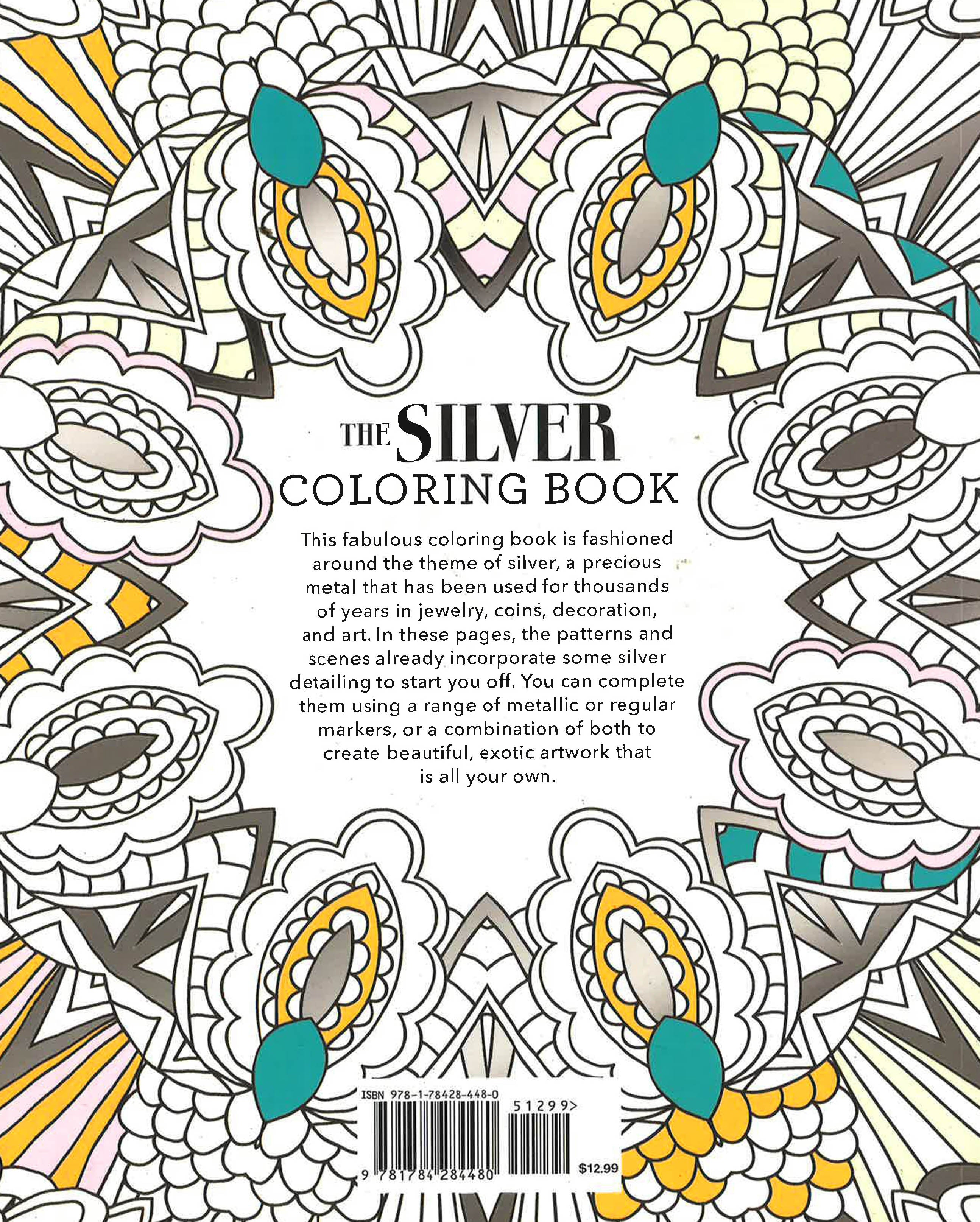 This sumptuous coloring book is based around the theme of silver. Each monochrome image has silver detailing so that the reader can shade it in either in jewel colors or, if they so desire, in metallic tones. The abstract images have been selected to suggest the exotic beauty of mosaics or stained glass so that, when complete, they will represent a treasure trove of coloring riches.