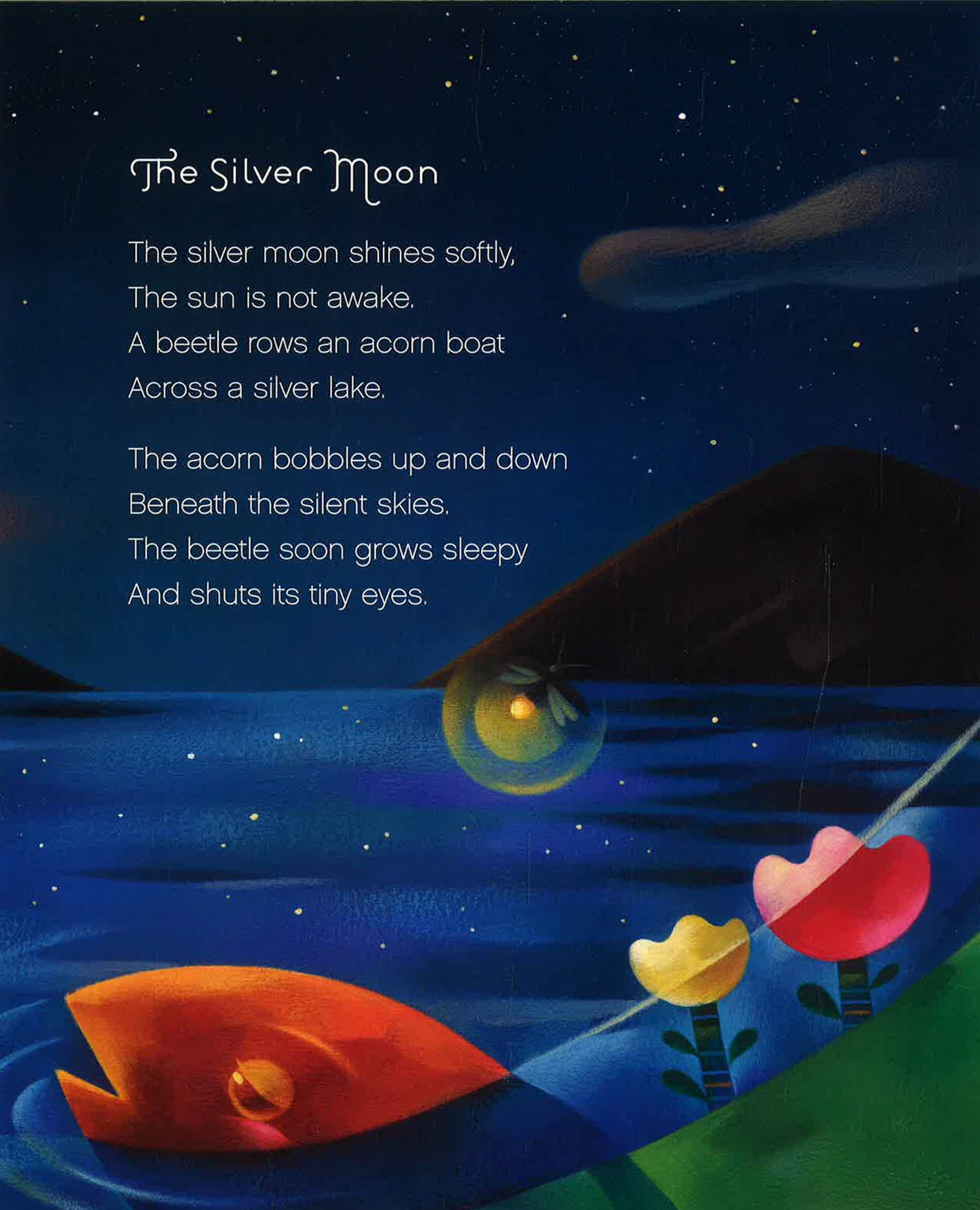 Jack Prelutsky, a recording artist and the first children's poet laureate, has been publishing bestselling poetry collections and picture books for more than thirty years. The Silver Moon is a collection of twenty original lullabies and cradle songs perfect for reading (or singing) at bedtime or naptime. Jui Ishida's lush and spectacular illustrations accompany lullabies about the animal kingdom, about the moon and stars, and about loved ones closer to home. Jack Prelutsky has included the music for four of the lullabies on the last pages of the book; the remaining music can be downloaded at the author's website.