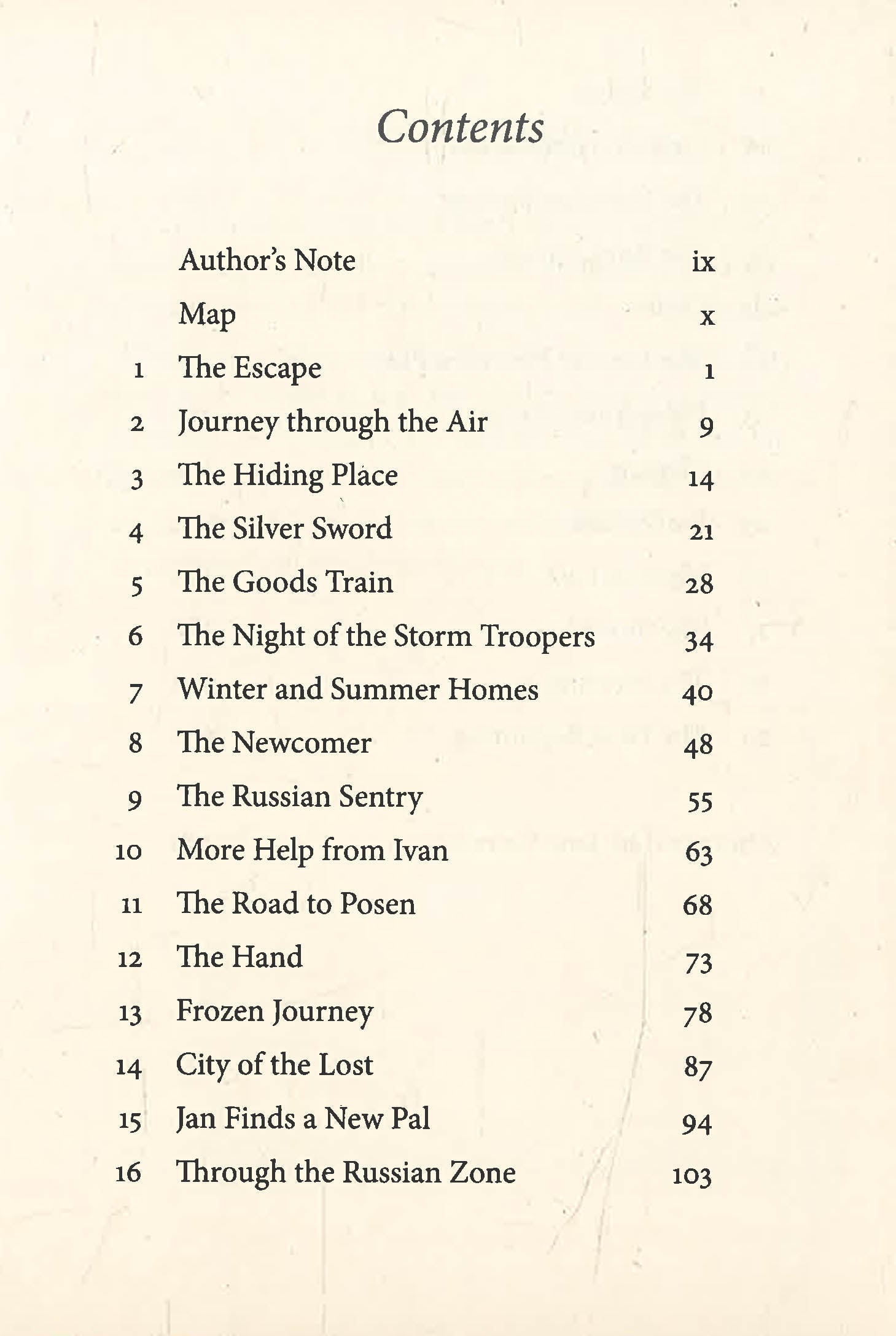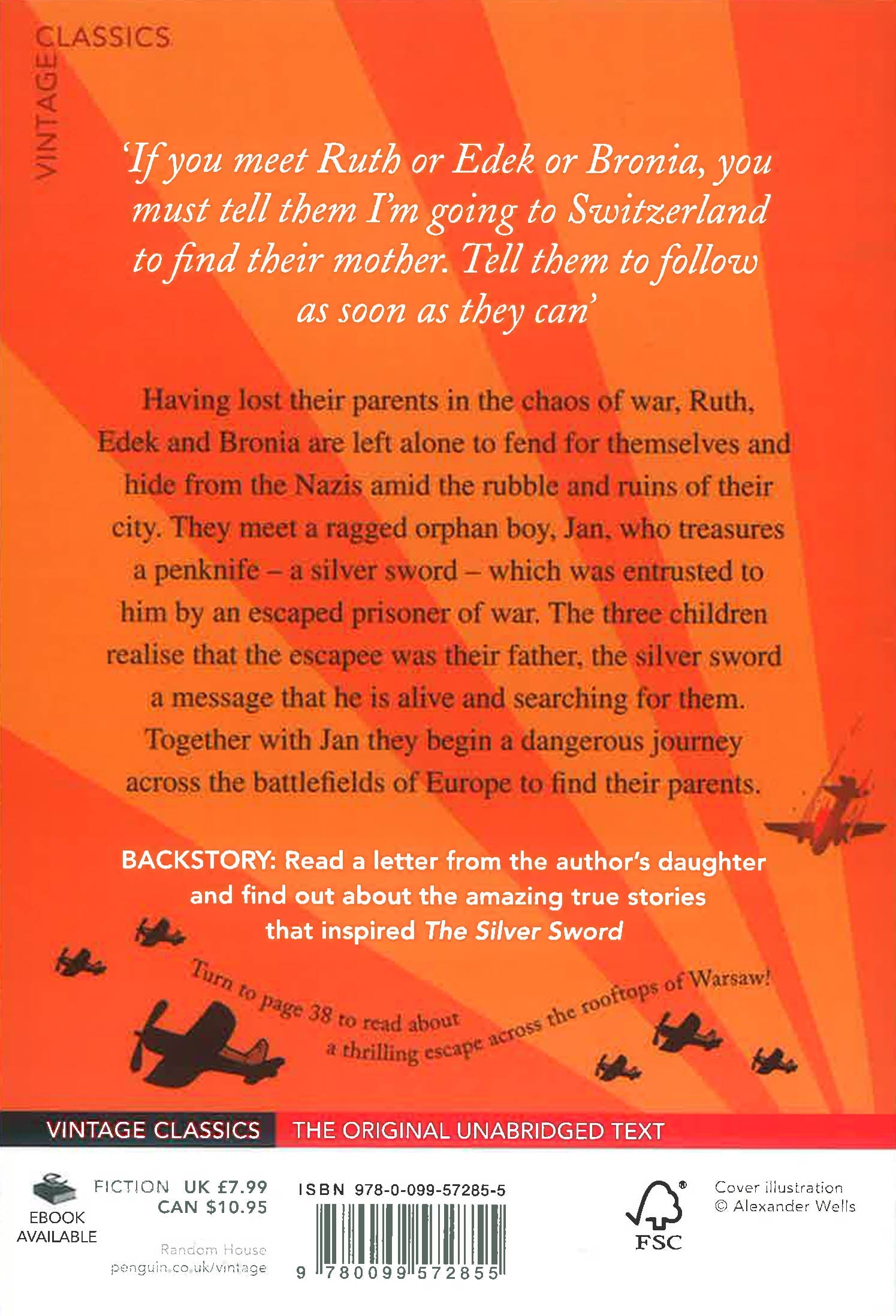Having lost their parents in the chaos of war, Ruth, Edek and Bronia are left alone to fend for themselves and hide from the Nazis amid the rubble and ruins of their city. They meet a ragged orphan boy, Jan, who treasures a paperknife -- a silver sword -- which was entrusted to him by an escaped prisoner of war. The three children realise that the escapee was their father, the silver sword a message that he is alive and searching for them. Together with Jan they begin a dangerous journey across the battlefields of Europe to find their parents.