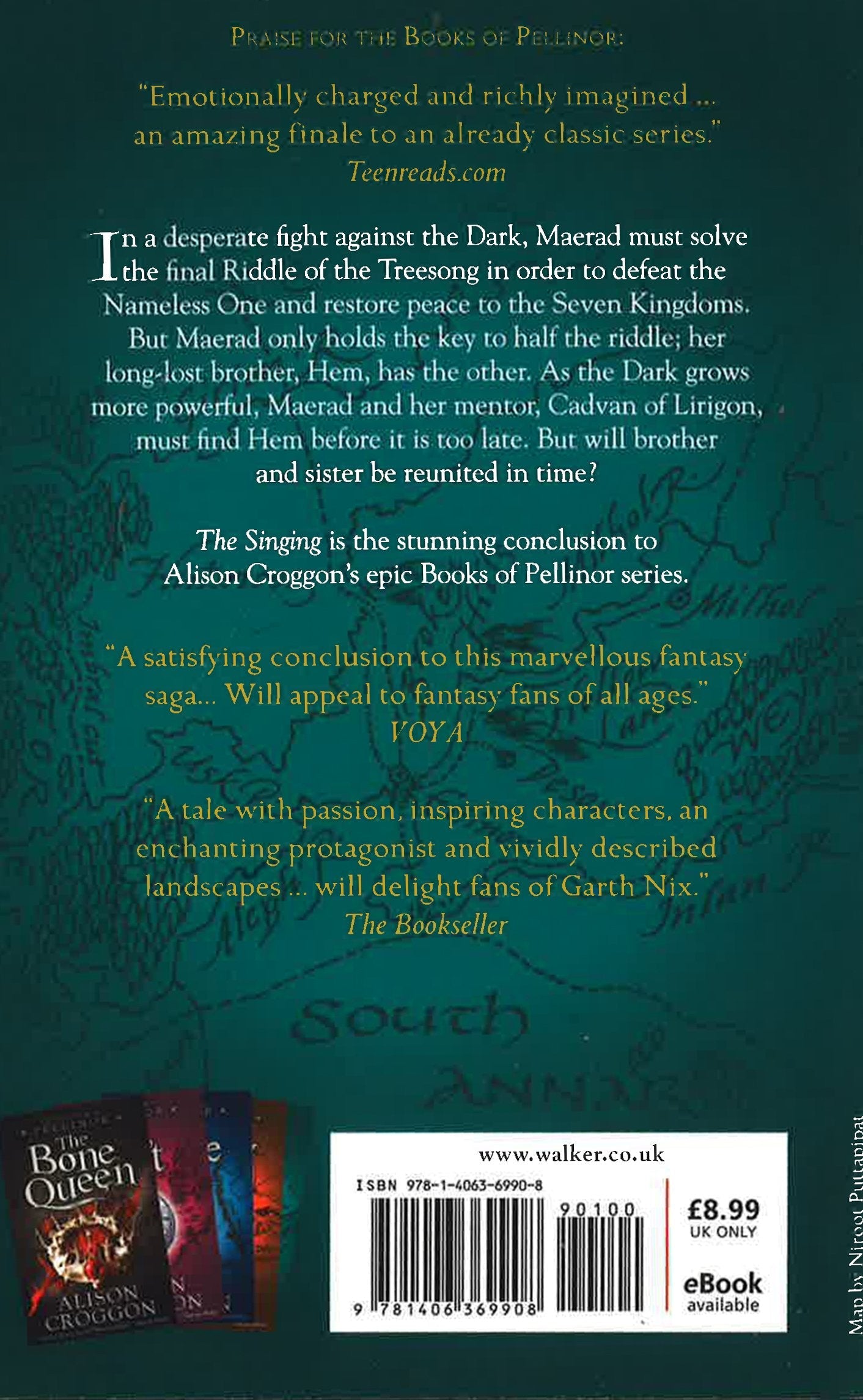 The stunning conclusion to the epic high fantasy Books of Pellinor series. The Singing is the final instalment in Alison Croggon's highly acclaimed fantasy series The Books of Pellinor, perfect for fans of The Lord of the Rings, Trudi Canavan and Garth Nix. The final book follows the separate journeys of Maerad and Cadvan, and Maerad's brother, Hem, as they desperately seek each other in an increasingly battle-torn land. The Black Army is moving north and Maerad has a mighty confrontation with the Landrost to save Innail. All the Seven Kingdoms are being threatened with defeat. Yet Maerad and Hem hold the key to the mysterious Singing and only in releasing the music of the Elidhu together may the Nameless One be defeated. Can brother and sister find each other in time to fight the Nameless One, and are they strong enough to defeat him?