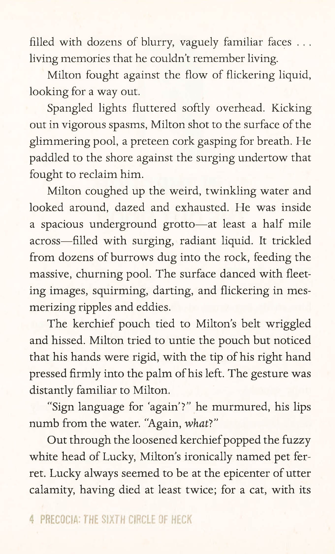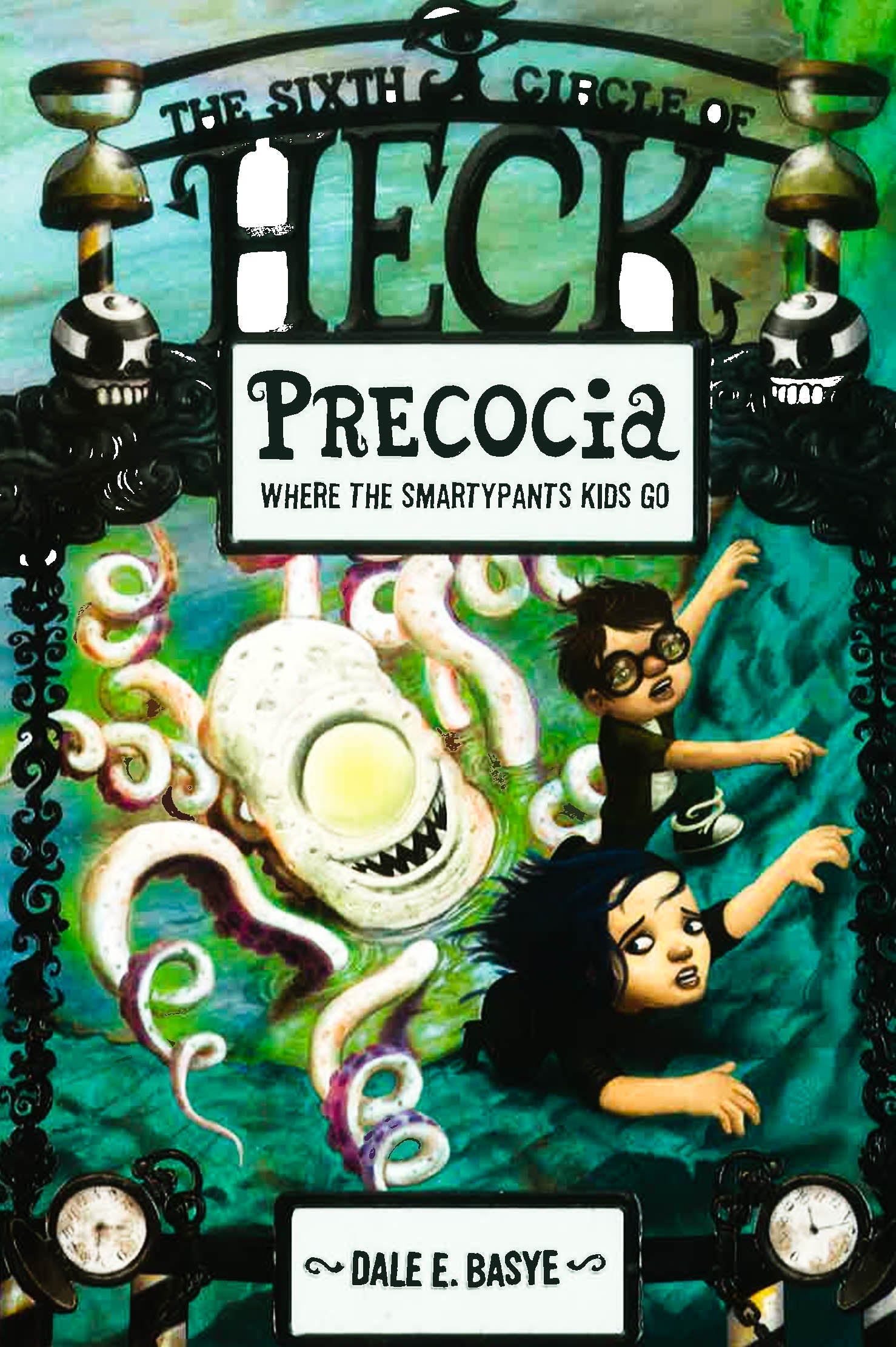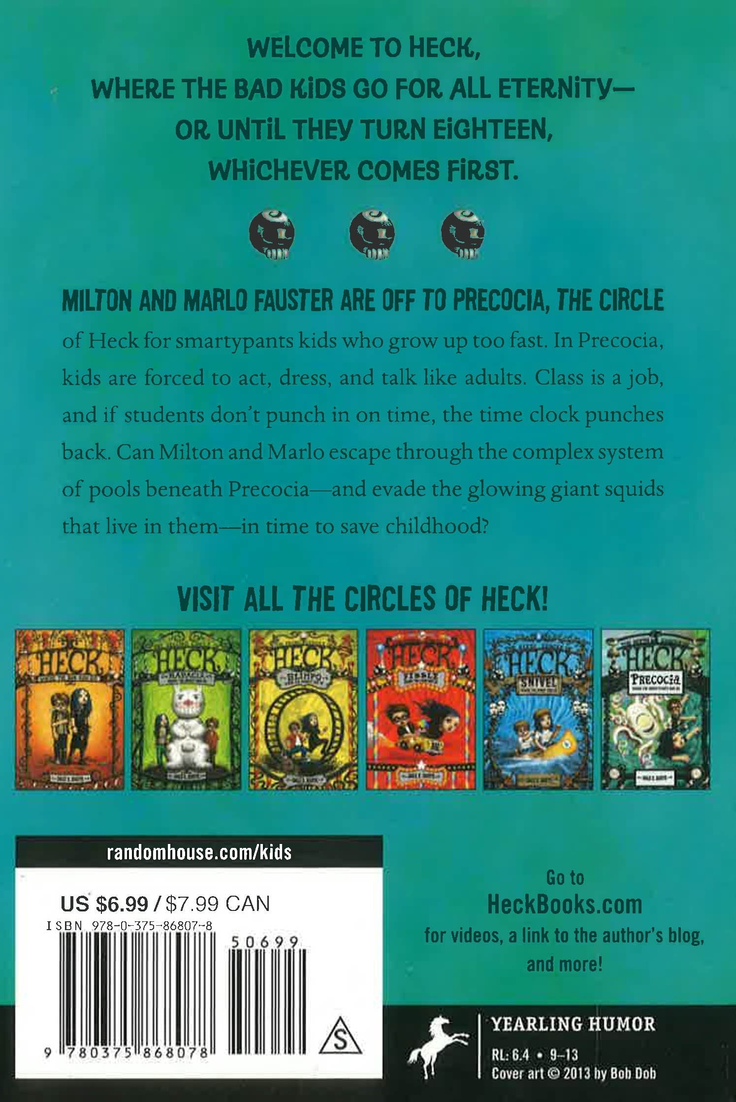 Dale E. Basye sends Milton and Marlo to Precocia, the circle reserved for kids who grow up too fast, for their latest hilarious escapade in Heck. When Bea "Elsa" Bubb, the Principal of Darkness, tells Milton and Marlo Fauster they've gotten too big for their britches, she sends them to Precocia, the circle of Heck for smartypants kids who grow up too fast. There, the children learn adult jobs. William the Kid teaches bill collection. Mozart teaches commercial jingles. And all the students are forced to act, dress, and talk like little adults. Soon, the Fausters realize that Precocia's vice principals Napoleon and Cleopatra want more than to hasten adulthood--they seem to want to eliminate childhood altogether. Can Milton and Marlo figure out their plan in time to stop it? Heck is a school in the afterlife where bad kids go for all eternity, or until they turn eighteen, whichever comes first. As in Dante's "Inferno, " there are nine circles of Heck, based on kids' various vices.