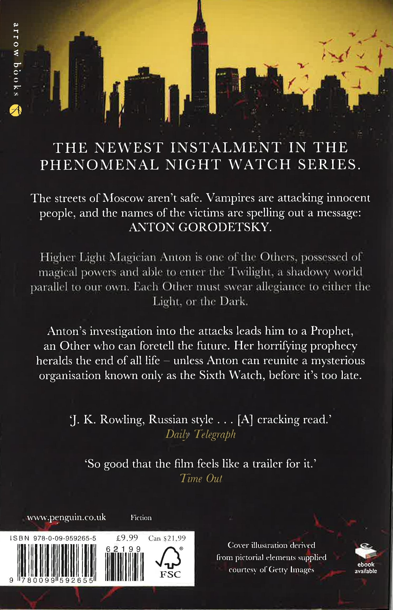 Higher Light Magician Anton is one of the Others, possessed of magical powers and able to enter the Twilight, a shadowy world parallel to our own. Each Other must swear allegiance to one side: either the Light, or the Dark. But who is after Anton and what do they want? Anton’s investigation leads him to a Prophet, an Other with the gift of seeing the future. Her horrifying vision heralds the end of all life at the hands of an ancient threat – unless Anton can reunite a mysterious organisation known only as the Sixth Watch, before it’s too late.
