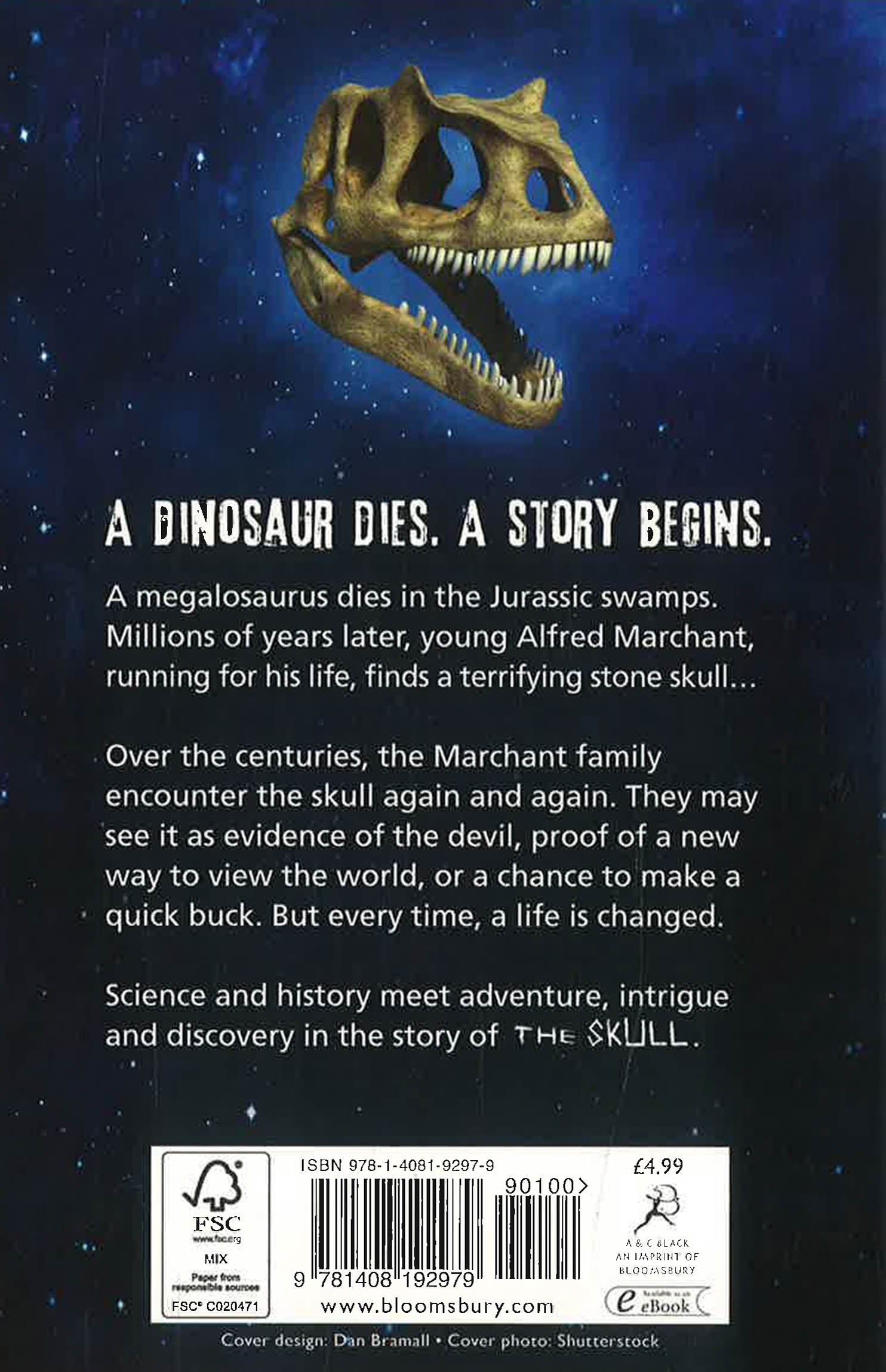 It seemed as though a dragon, for it could be nothing else, had reared out of the ground in the night . . . and then been turned to stone by the first rays of the dawn sun. Starting with the living beast, the Megalosaurus herself, over 144 million years ago, The Skull follows the Marchant family from generation to generation, exploring key moments in history shaped by radical philosophical and scientific change. Whether feeding in a frenzy, seen as evidence of the devil, kept as a token of scientific heritage or used an easy way to make a quick buck, the Megalosaurus skull continues to change lives over millennia, long after her untimely demise. In this superb fictional tale, scientific and historical fact is blended with drama, intrigue, and life-changing scientific discoveries that not only affect the Marchants, but science, philosophy and civilisation as we know it.