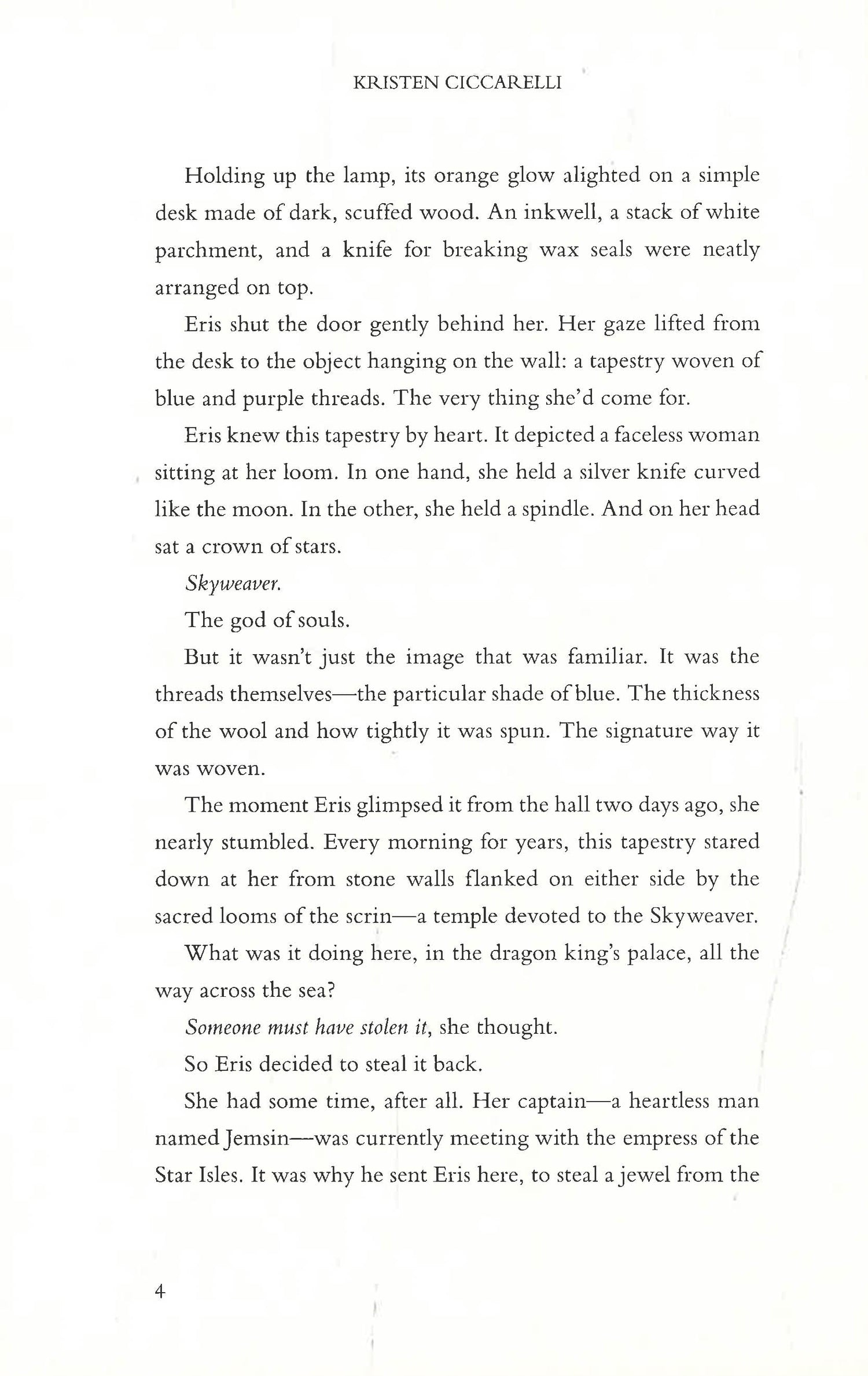 Now Safire and Eris--sworn enemies--find themselves on a common mission: to find Asha, the last Namsara. From the port city of Darmoor to the fabled faraway Star Isles, their search and their stories become woven ever more tightly together as they discover that the uncertain fate they're hurtling toward just may be a shared one. In this world--and the next.