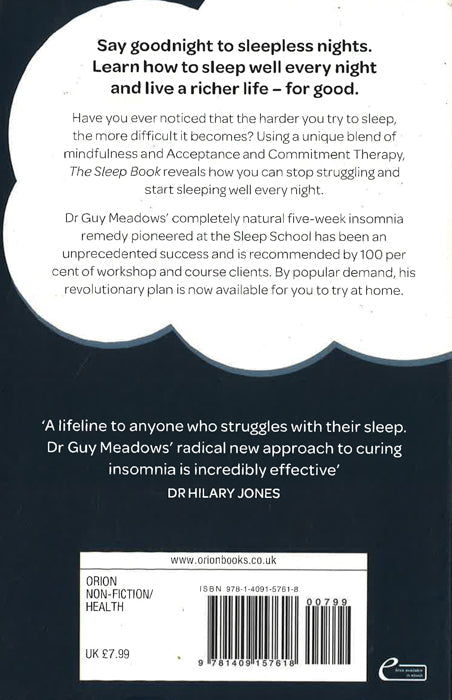 Using a blend of mindfulness and new ACT therapy techniques, Dr Guy shares his unique five-week plan to cure your sleep problem whether it's a few restless nights or a lifetime of insomnia. Most people who have trouble sleeping invest a huge amount of time, effort and money into fixing the problem, but Dr Guy has discovered the secret lies not in what you do, but what you learn not to do. In fact, as you will have discovered, the more frustrated you become only serves to push sleep further away.