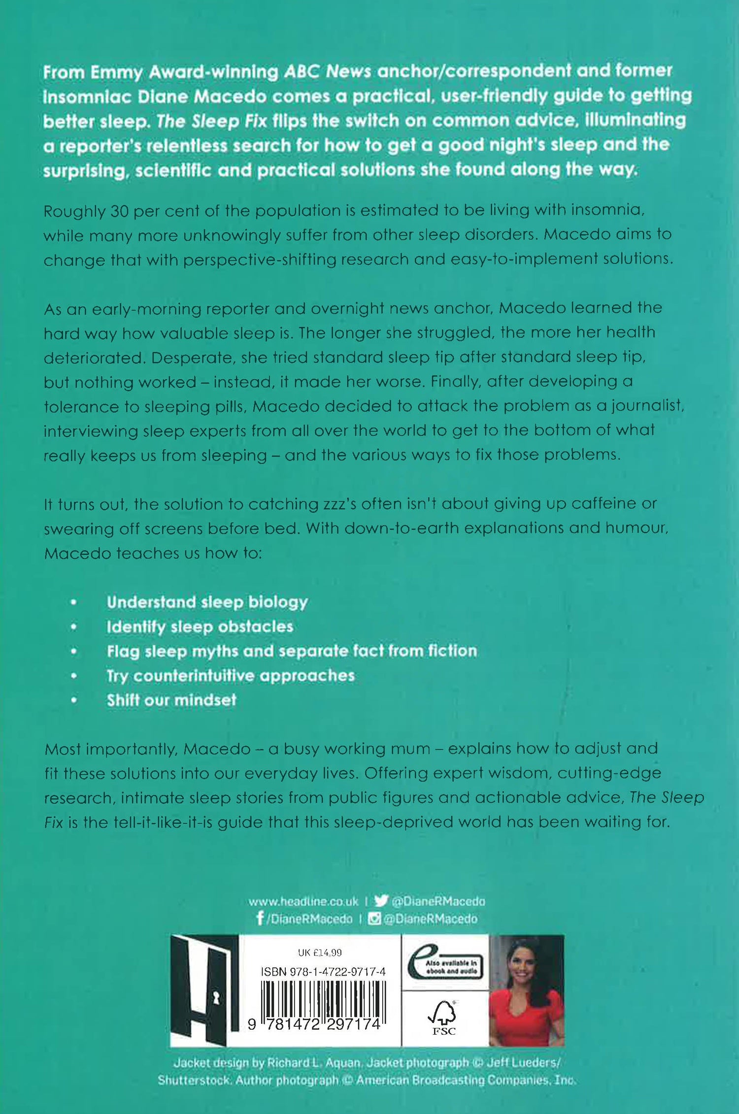 From Emmy Award-winning ABC News anchor/correspondent and former insomniac Diane Macedo comes a practical, user-friendly guide to getting better sleep. The Sleep Fix flips the switch on common advice, illuminating the reporter's relentless search for how to get a good night's sleep.