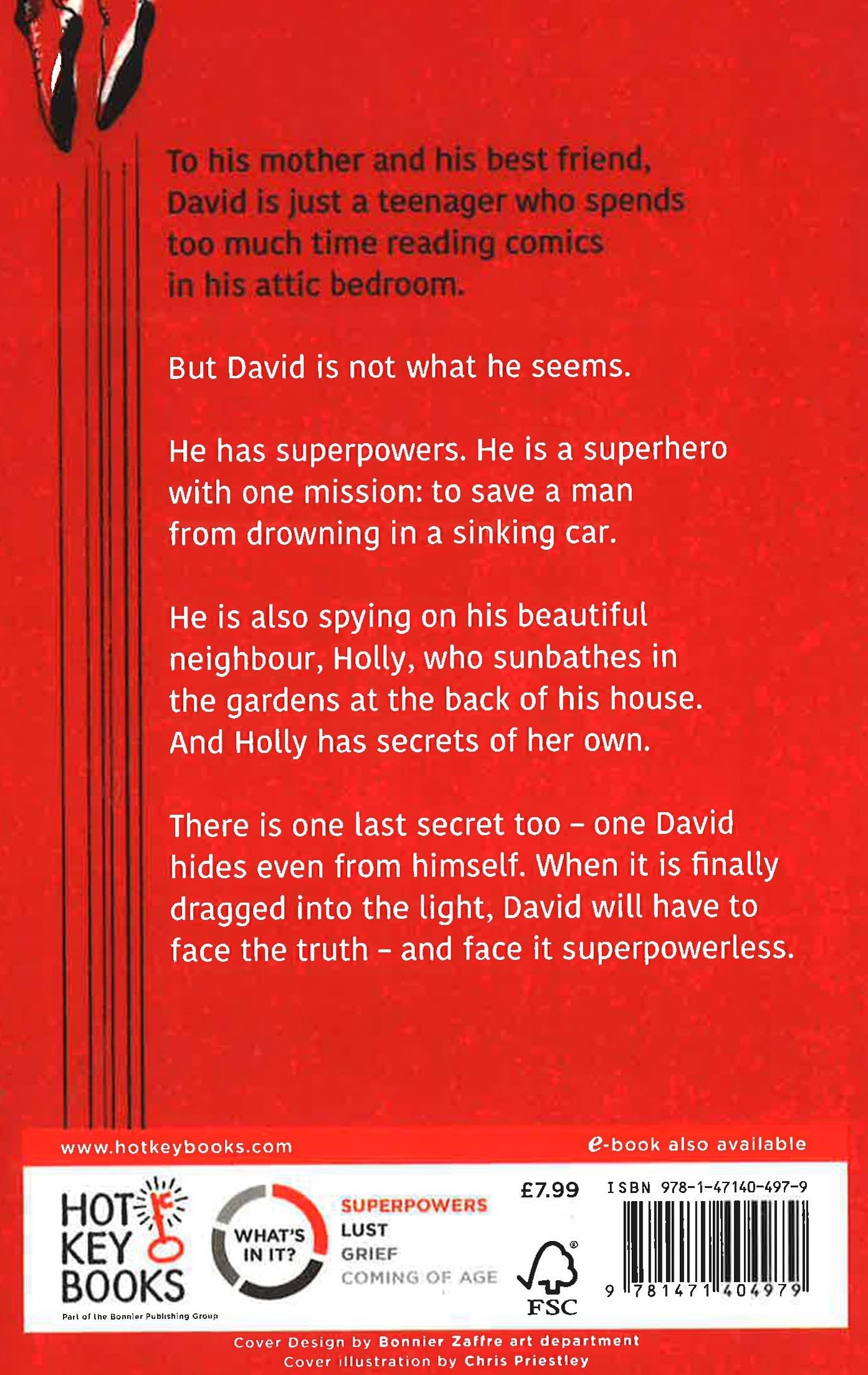 Life hasn't been easy recently for David, though. His father died just a couple of years ago, he has a fractious relationship with his mum, and he has fallen out with his best friend. But, David has a secret, which he hasn't told anyone. He has superpowers. He can soar through the air, he has superhearing, he feels and hears everything super-keenly. So life should be easier, then, shouldn't it? But somehow it's not - and when David gets involved with the girl next door, gorgeous Holly Harper, he begins to realise just how very complicated it can get.