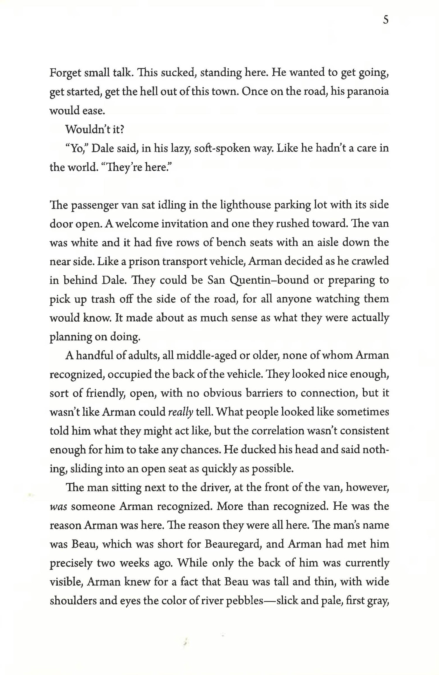 Sometimes the greater good requires the smaller evil. 17-year-old Arman Dukoff can't remember life without anxiety and chronic illness when he arrives at an expensive self-help retreat in the remote hills of Big Sur. He's taken a huge risk--and two-thousand dollars from his meth-head stepfather--for a chance to "evolve," as Beau, the retreat leader, says. Beau is complicated. A father figure? A cult leader? A con man? Arman's not sure, but more than anyone he's ever met, Beau makes Arman feel something other than what he usually feels--worthless. The retreat compound is secluded in coastal California mountains among towering redwoods, and when the iron gates close behind him, Arman believes for a moment that he can get better. But the program is a blur of jargon, bizarre rituals, and incomprehensible encounters with a beautiful girl. Arman is certain he's failing everything. But Beau disagrees; he thinks Arman has a bright future--though he never says at what. And then, in an instant Arman can't believe or totally recall, Beau is gone. Suicide? Or murder? Arman was the only witness and now the compound is getting tense. And maybe dangerous. As the mysteries and paradoxes multiply and the hints become accusations, Arman must rely on the person he's always trusted the least: himself. *This book may have remainder mark*