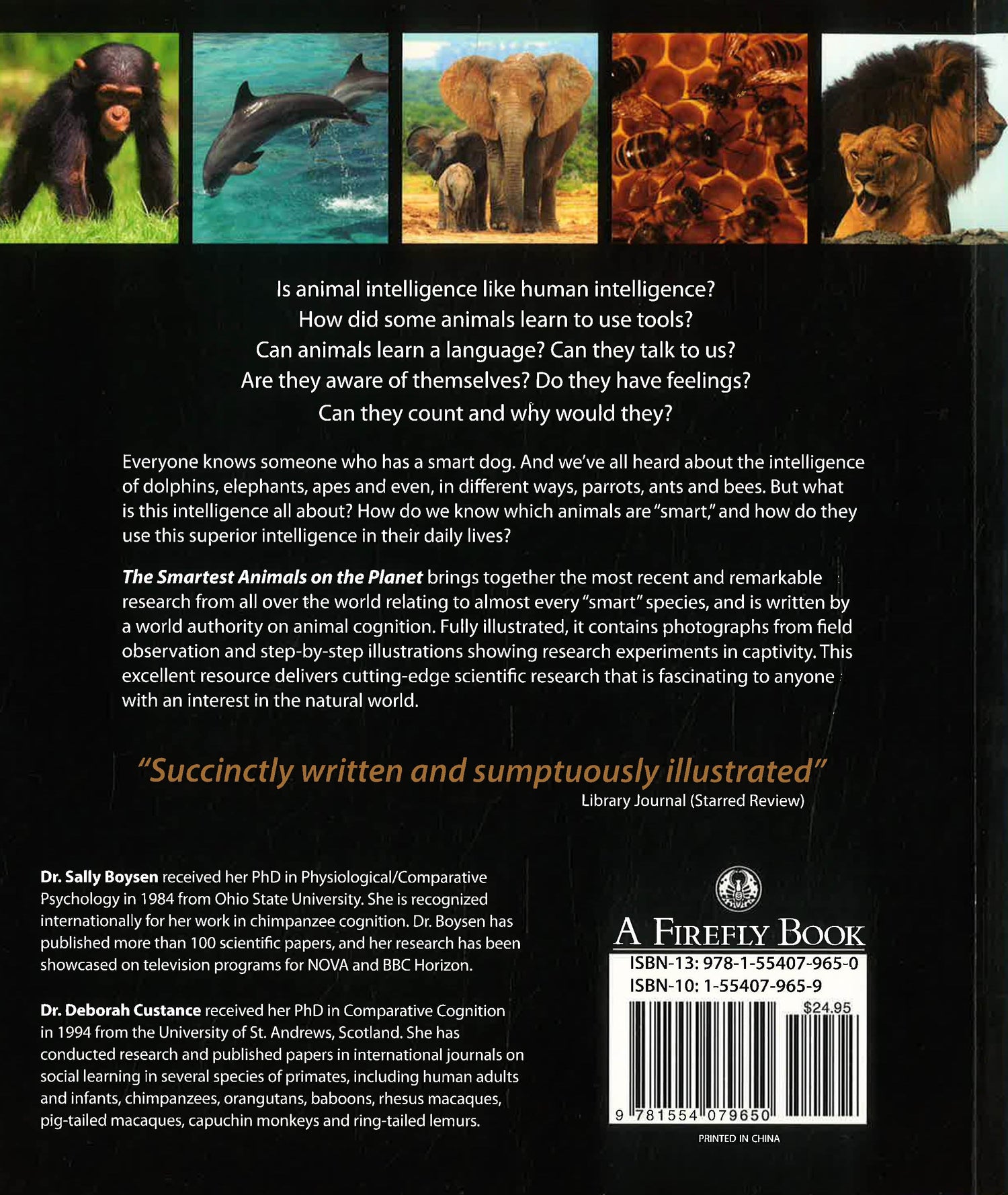 This compelling book is from a world authority in animal intelligence and brings together the cumulative research relating to non-human "smart" species. It reveals how intelligent animals communicate, how they learn behavior, how they show feelings and emotions -- and for some species, how they use tools, count, and pick up a foreign language!