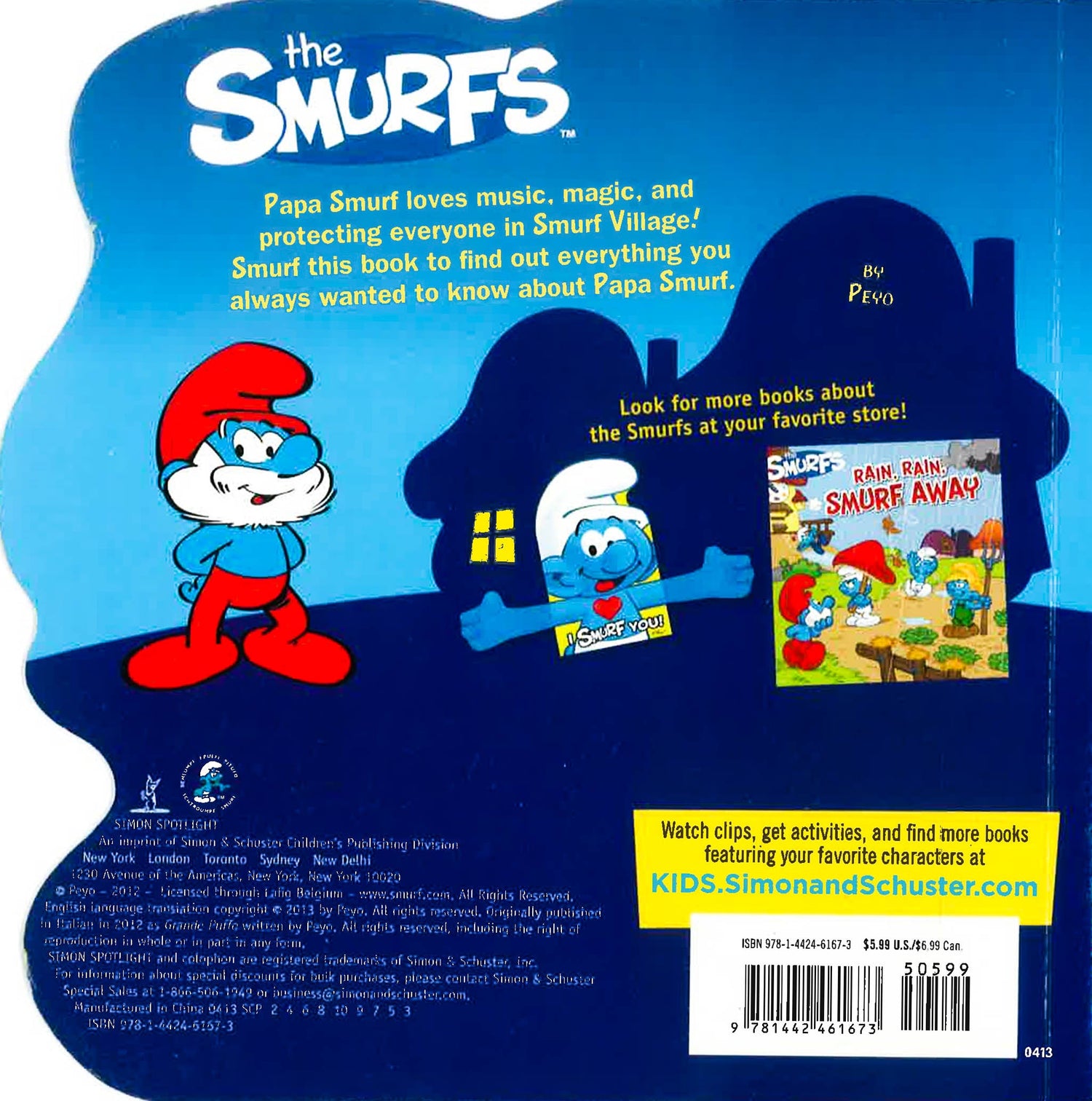 Learn all about Papa Smurf in this smurf-shaped board book. What are Papa Smurf's favorite things? He loves helping people, and smurfberries, and magic... and much, much more! In this shaped board book, there is plenty of smurftastic fun to be found!