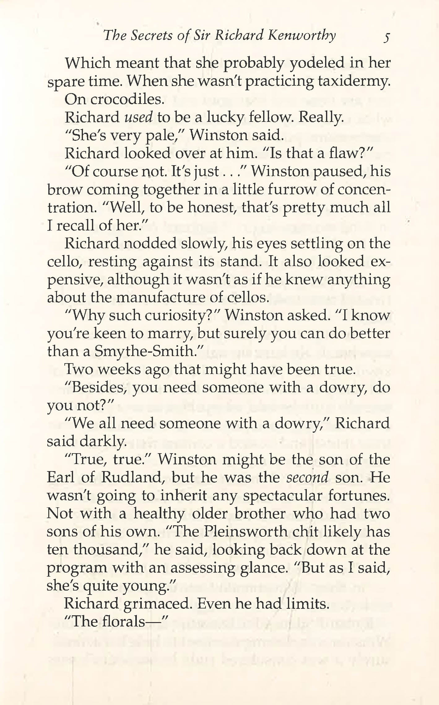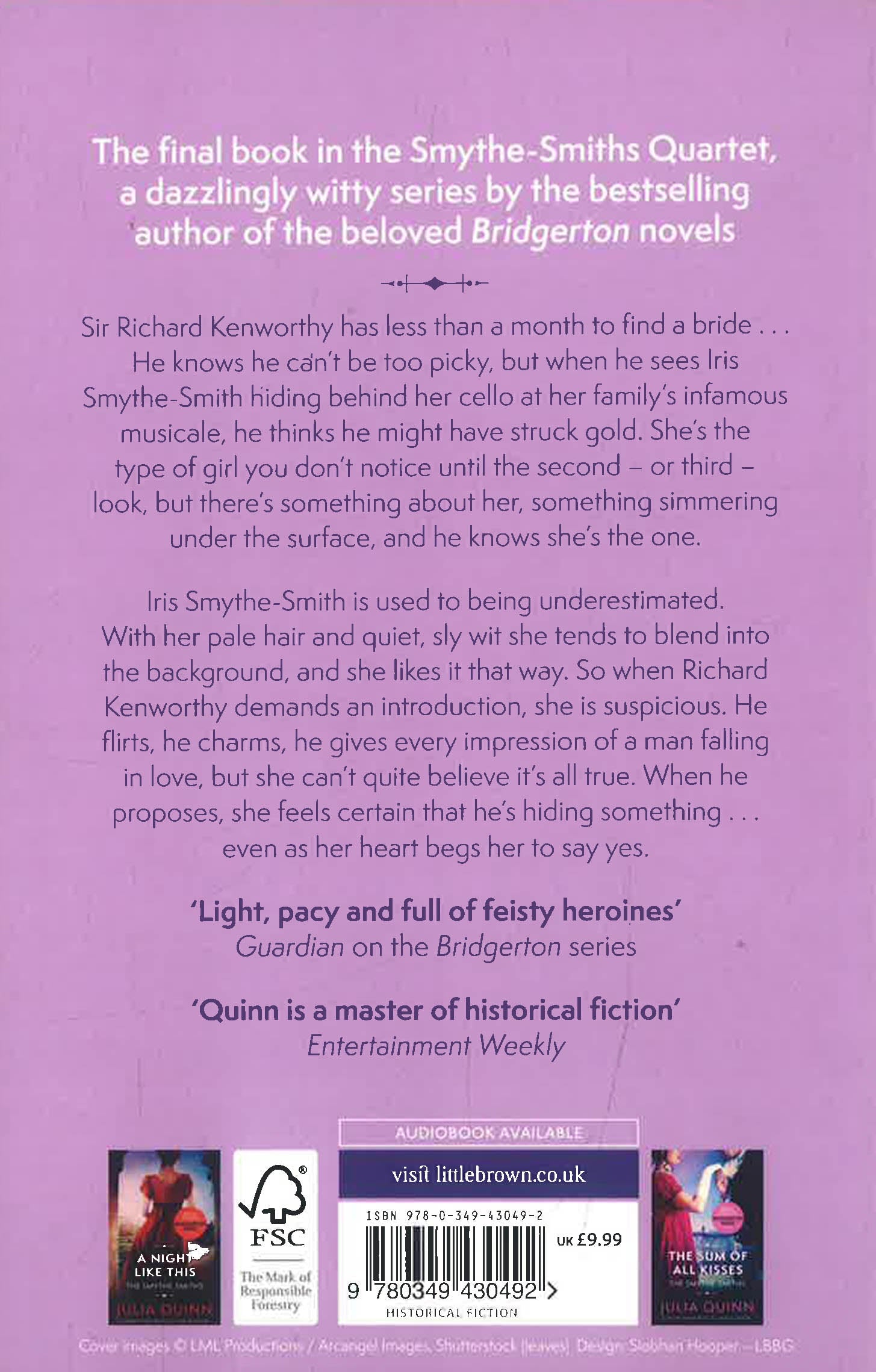 Sir Richard Kenworthy has less than a month to find a bride . . . He knows he can't be too picky, but when he sees Iris Smythe-Smith hiding behind her cello at her family's infamous musicale, he thinks he might have struck gold. She's the type of girl you don't notice until the second-or third-look, but there's something about her, something simmering under the surface, and he knows she's the one.