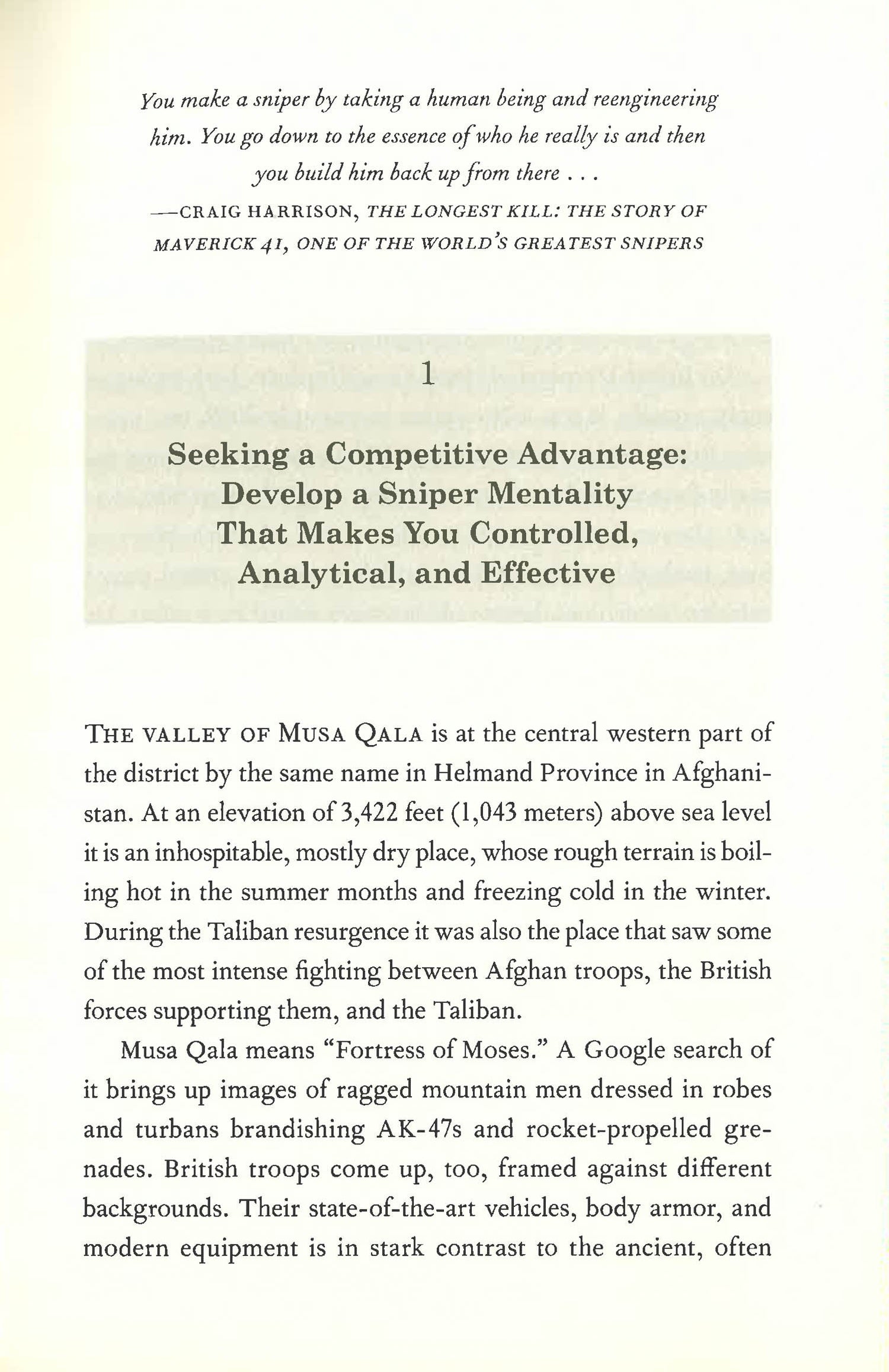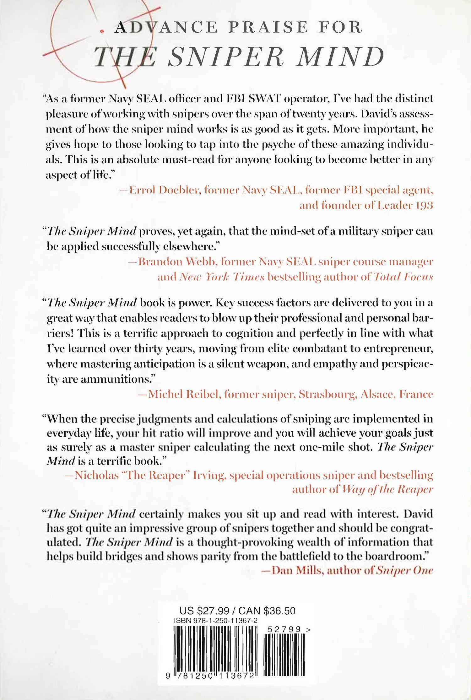 Snipers are exceptional. The trained sniper is a complex fusion of hard skills such as weapons knowledge, situational awareness, knowledge of ballistics and physics, and soft skills such as emotional stability, empathy, and a stoic acceptance of the hardships associated with a particular set of circumstances. There are countless instances where a single sniper, embarking on a secret mission, would have to improvise, operate beyond any hope of support, and yet still manage to carry out the mission and get back home unharmed even though the enemy was actively hunting him.For the first time ever, The Sniper Mind reveals the practical steps that allow a sniper’s brain to work in this superhuman precise, calculated way. It teaches readers how to understand and apply these steps, whether they are stuck in a cubicle facing mounting piles of work or sitting in a corner office making industry-defining decisions.Through the explanation of advanced military training techniques and cutting-edge neuroscience, David Amerland's book provides concrete strategies and real-world skills that can help us be better:- At our jobs - In our relationships- In our executive decision making - In the paths we choose to take through lifeBy learning how snipers teach their minds to eliminate fears and deal with uncertainty we can also develop the mental toughness we need to achieve the goals that seem to elude us in business as well as in life.
