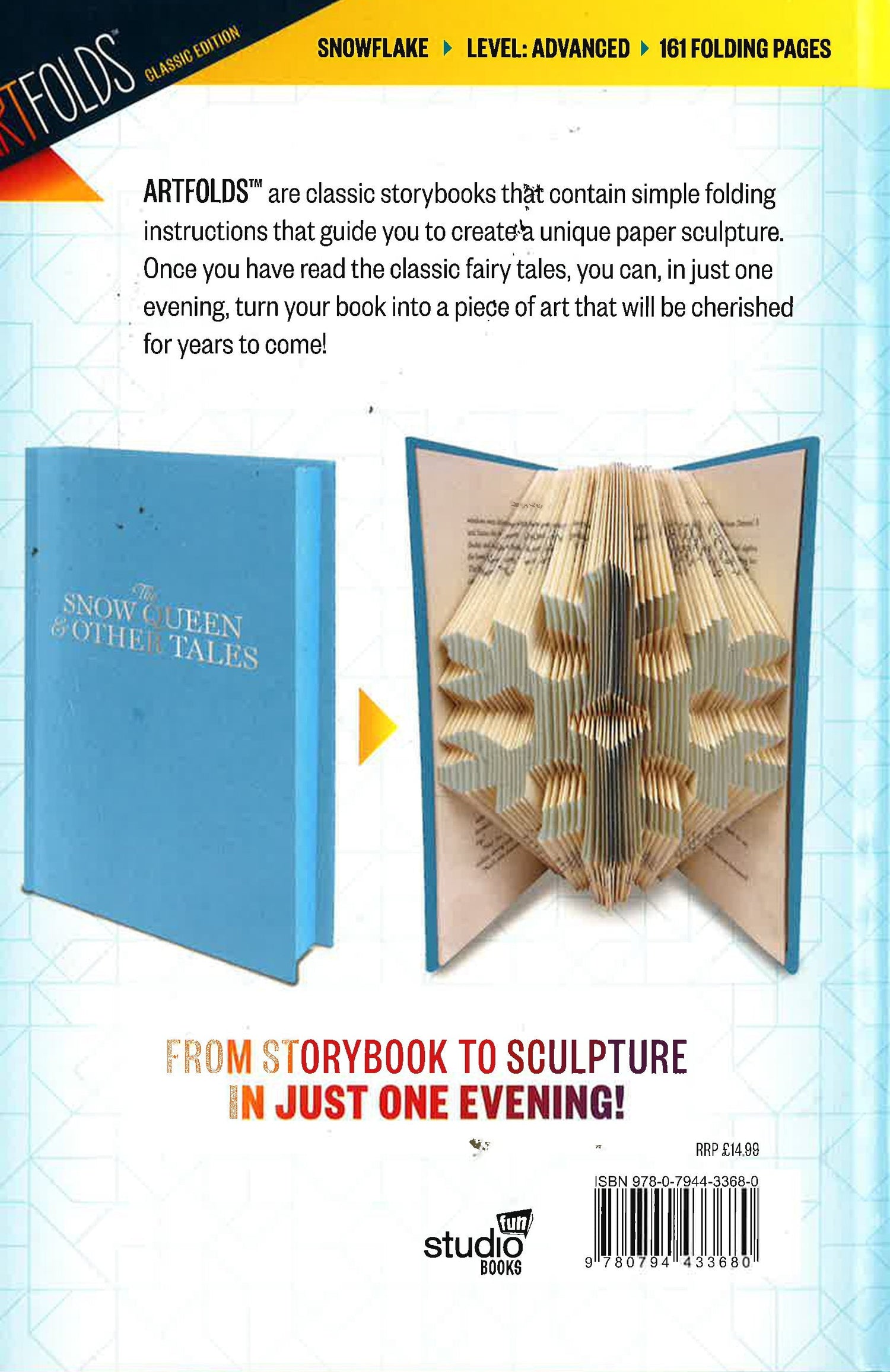 This ArtFolds book is more than just a book! Inside are simple instructions that show readers how to fold pages to transform this book into a beautiful, personal, and long-lasting work of art as the pages evolve into a colorful sculpture displaying a snowflake. An ArtFolds book is a hardcover book that is transformed into a unique paper sculpture merely by folding pages, based on our exclusive, patent-pending instructions. The process is fun and easy and takes surprisingly little time, making it as appropriate for children as it is for adults. Each Classic Edition, with its embossed cover and color-edged pages, is based on a much-loved classic work of fiction. In ArtFolds: Snowflake, readers will find original works of Hans Christian Anderson. There are 161 pages to fold. Level: Advanced