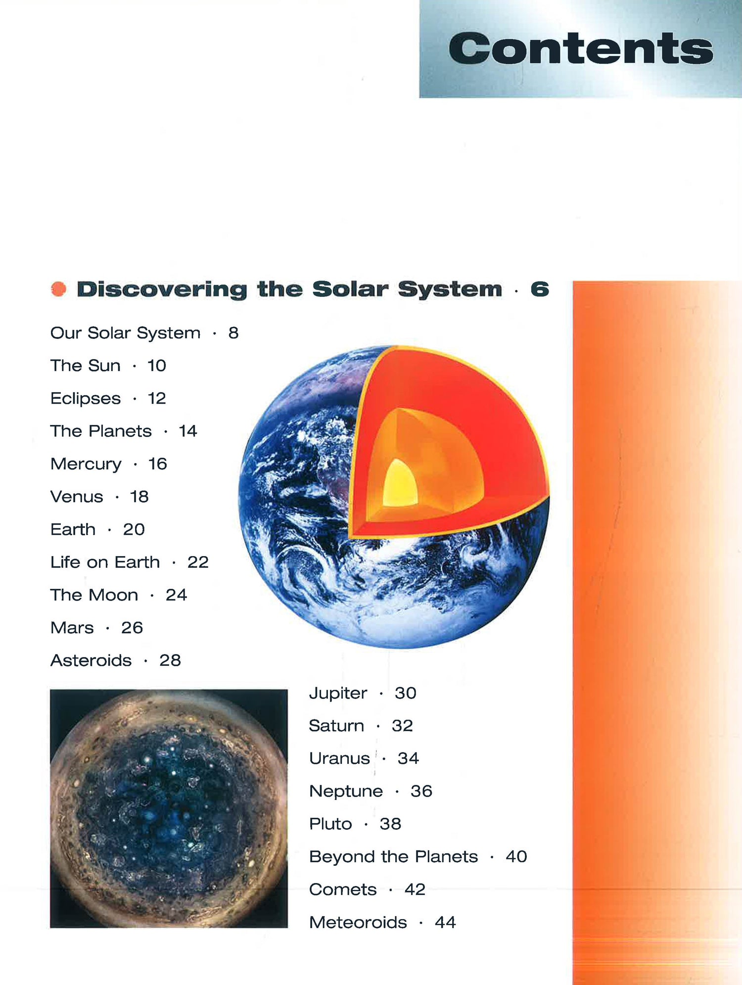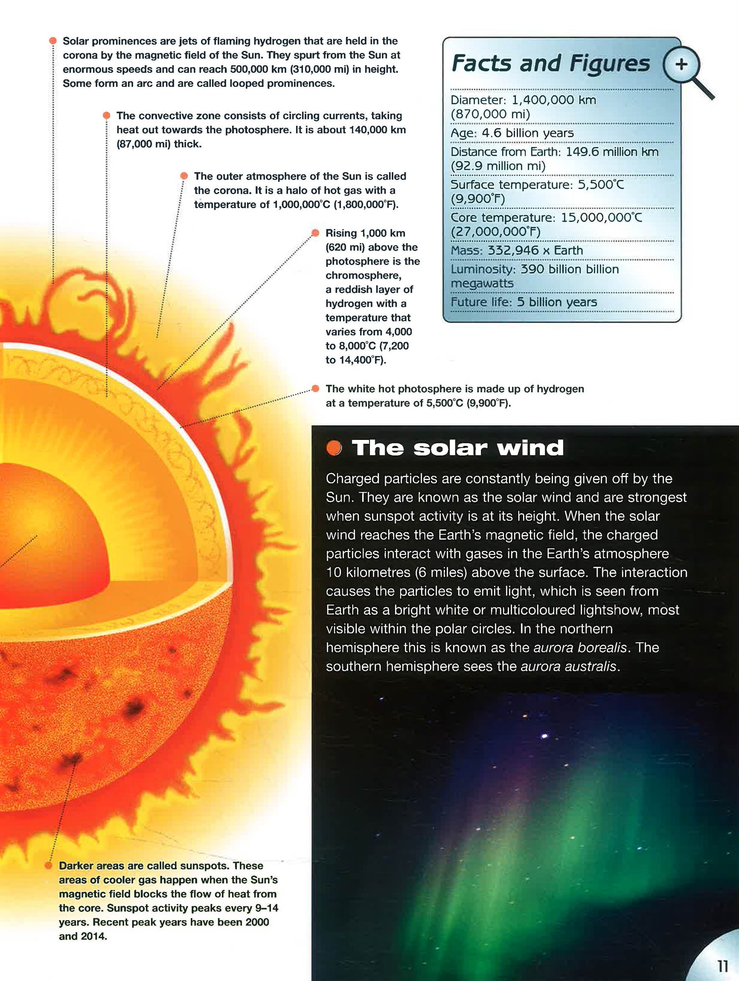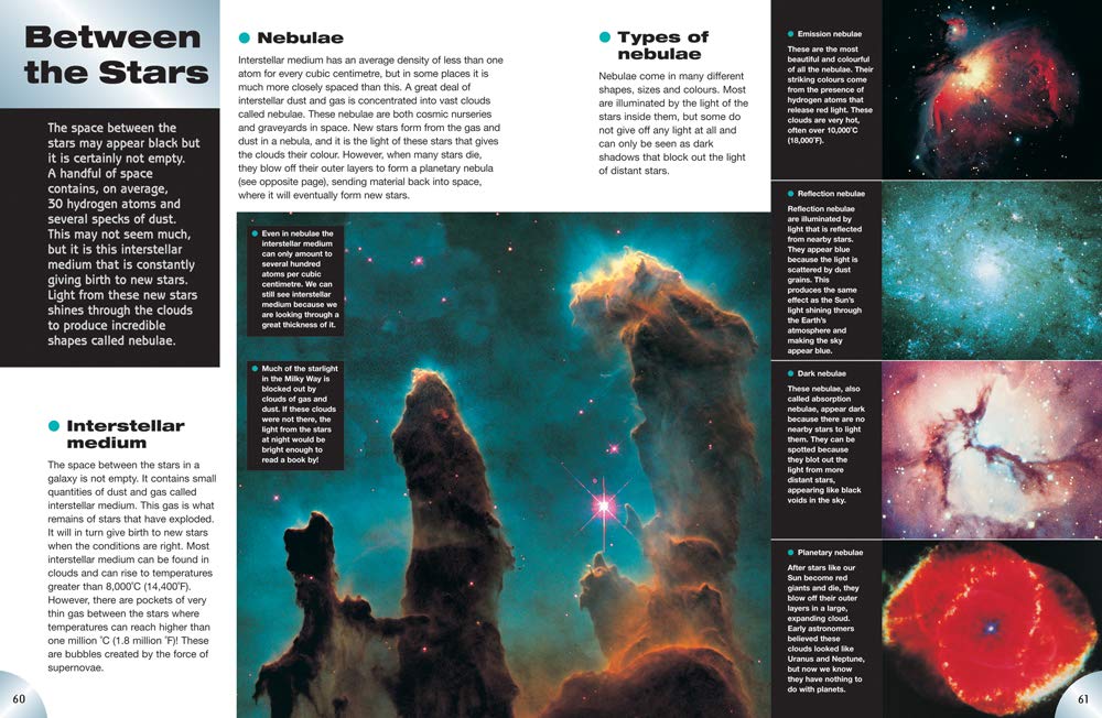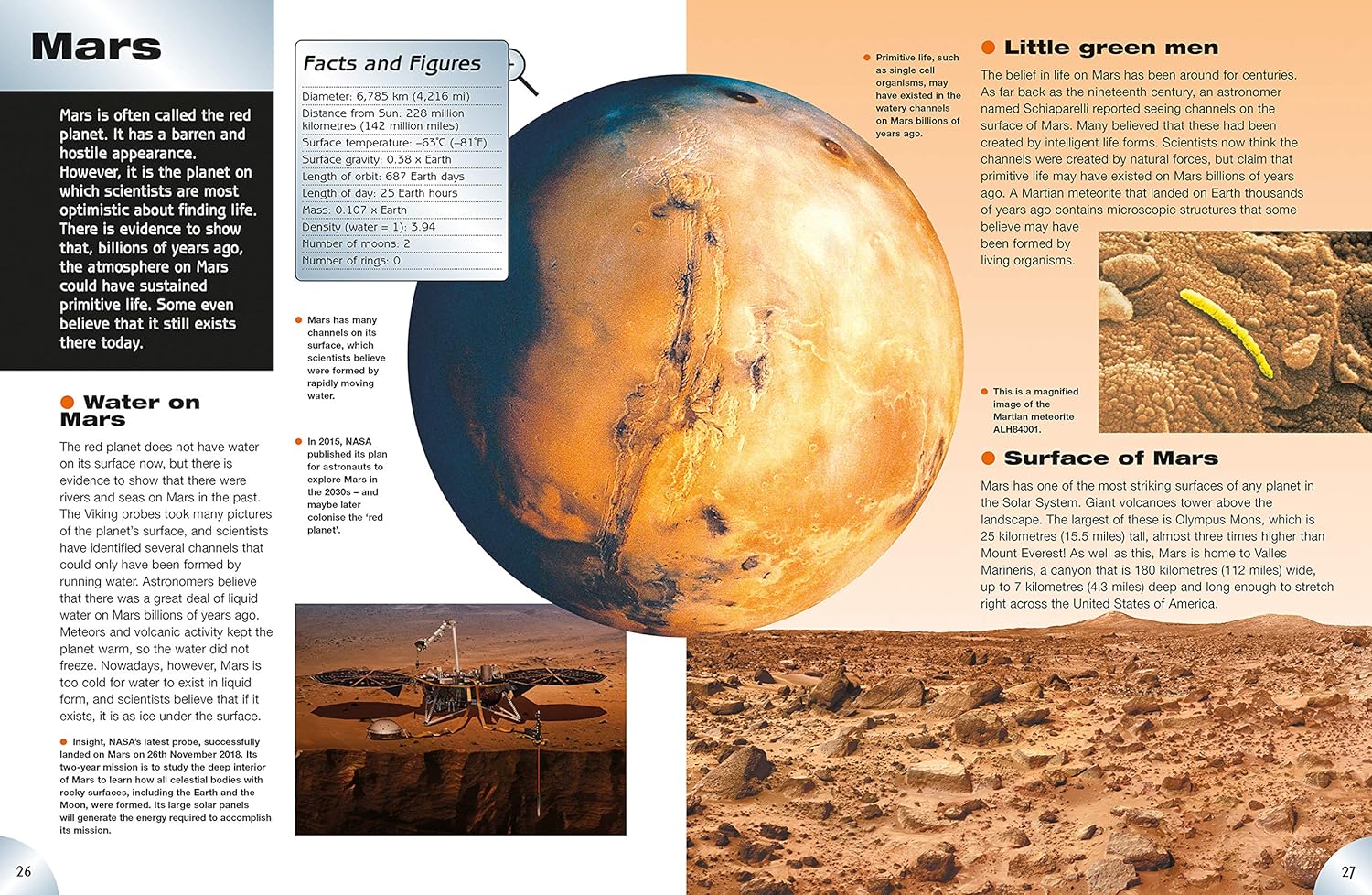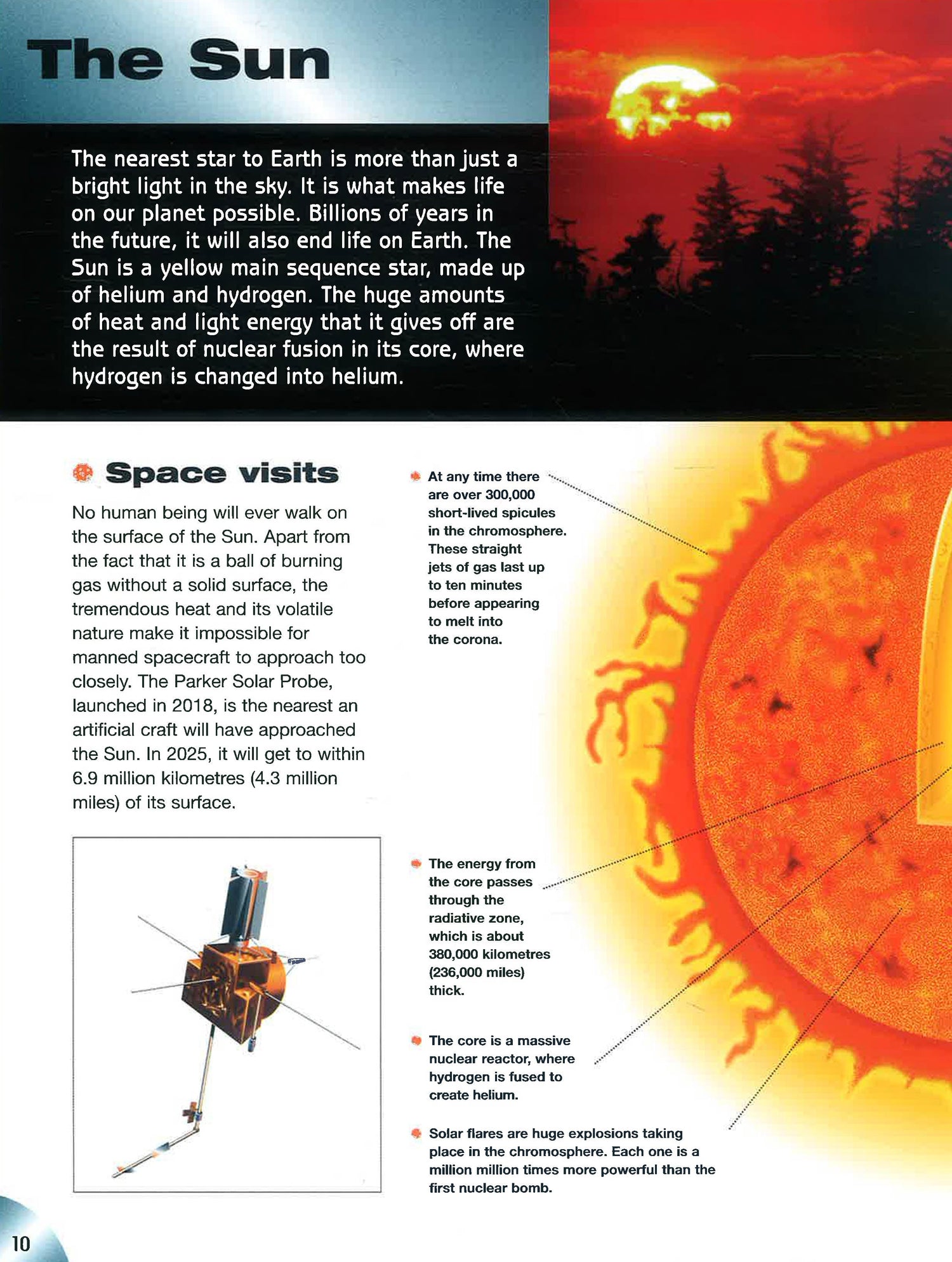This stunning survey explores our own star system and its place in our galaxy and the universe itself. It offers in-depth coverage of all the planets, as well as the Sun, the Moon, asteroids, comets and meteoroids. The book also looks further into the heavens, to examine black holes, other solar systems and distant galaxies, and speculates about the future of space travel. Featuring 300 amazing photographs and detailed illustrations take you on whirlwind tour of the cosmos, while the text provides a wealth of essential information for young astronomers everywhere. An additional reference section contains fact charts, star maps, a glossary of terms and a detailed index. The planets and countless other objects revolving around our Sun make up the Solar System. As scientists discover more about these heavenly bodies, including our own planet, Earth, they are also finding further mysteries and extraordinary space puzzles. Our Solar System is but one of billions in the vastness of our galaxy, the Milky Way, and the universe itself contains countless ever-changing galaxies. This book covers them all, from the tiniest piece of space junk to vast nebulae, making it a fascinating home reference guide to our Solar System and beyond.