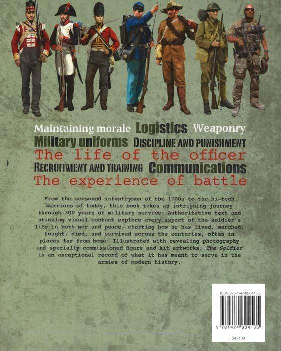 From the seasoned infantryman of the 1700s to the hi-tech warrior of today, this book makes an intriguing journey through 300 years of military service. Authoritative text and stunning visual content explore every aspect of a soldier's life in both war and peace, charting how he has lived, marched, fought, died and survived across the centuries, often in places far from home. Some aspects of serving in any army are timeless--soldiers throughout history have faced the challenges of barracks boredom, homesickness and battlefield terror. Yet at the same time, the evolution of technology has progressively given the modern soldier levels of communications, firepower, comfort and survivability beyond the dreams of, say, a trooper in the American Revolution or the Napoleonic Wars. Trace this evolution in this detailed guide. Illustrated with revealing photography and specially commissioned figure and kit artwork, The Soldier is an exceptional record of what it has meant to serve in the armies of modern history.