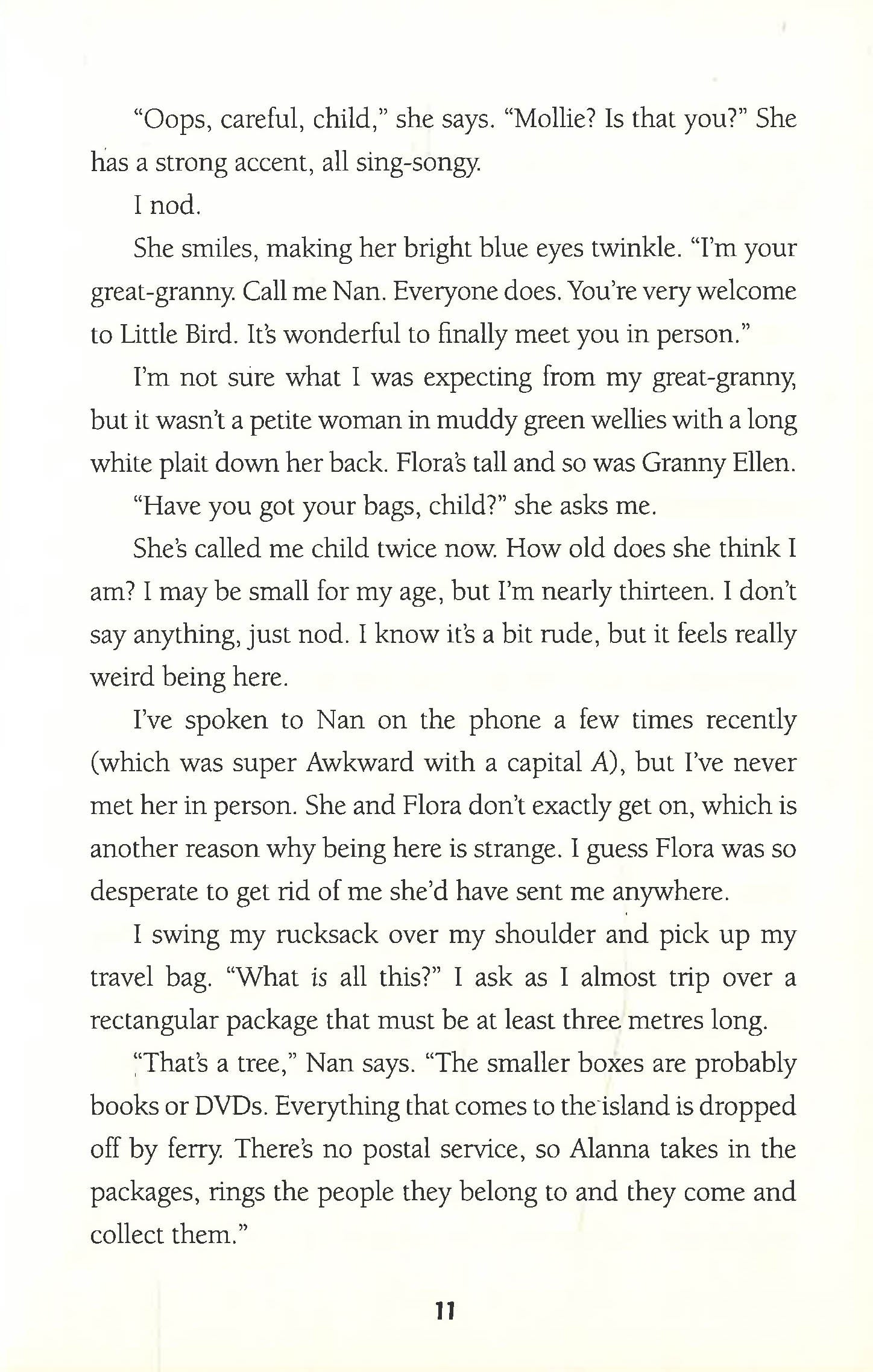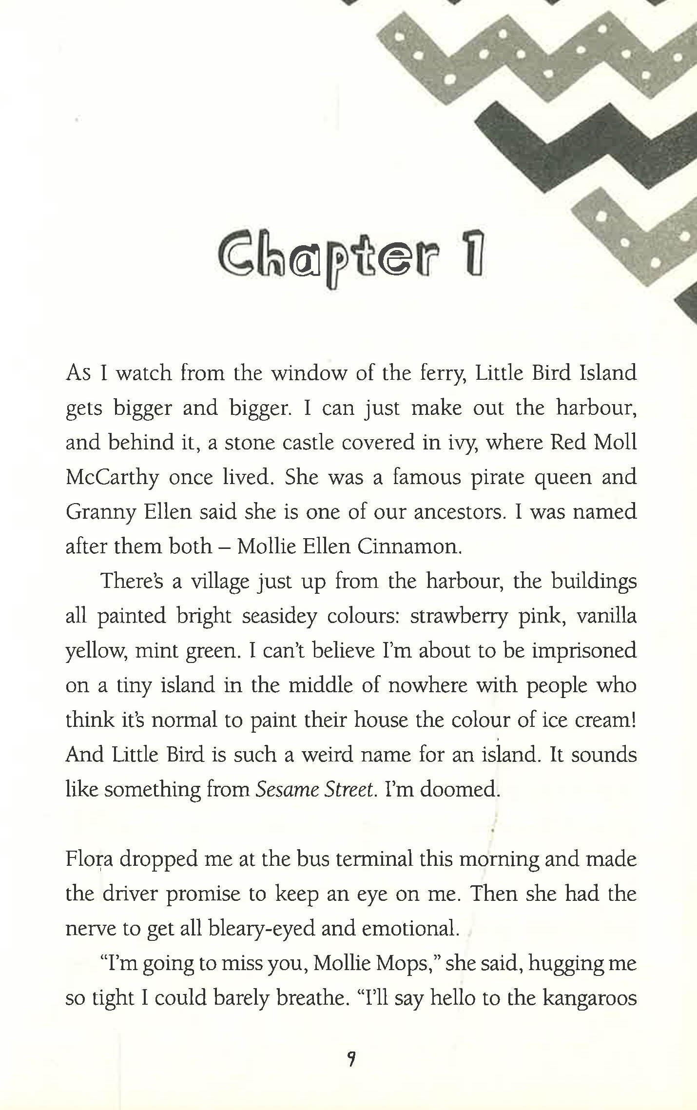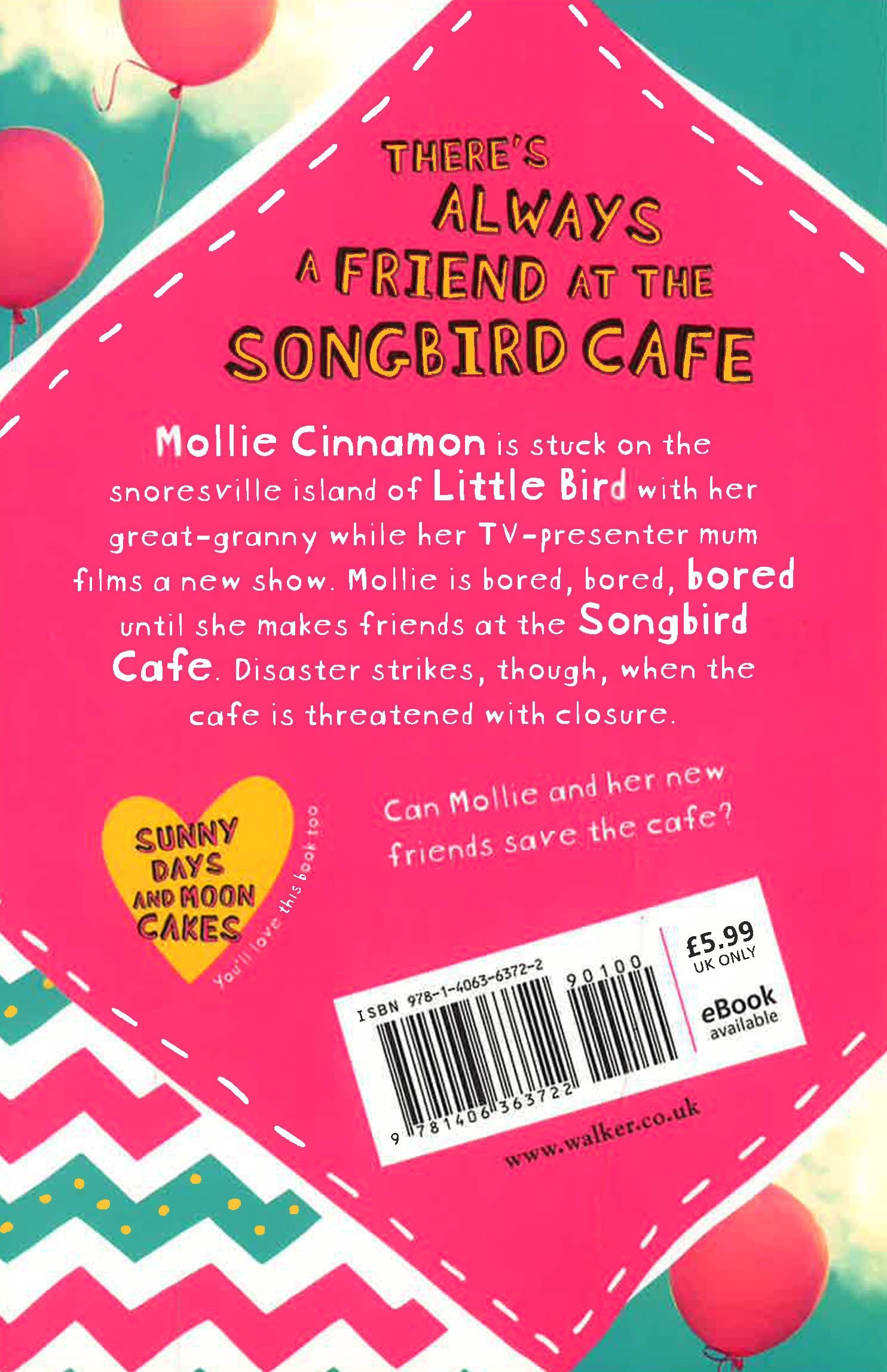 Mollie Cinnamon is stuck on the snoresville island of Little Bird with her great-granny while her TV-presenter mum films a new show. Mollie is bored, bored, bored until she makes friends at the Songbird Cafe. Disaster strikes, though, when the cafe is threatened with closure.