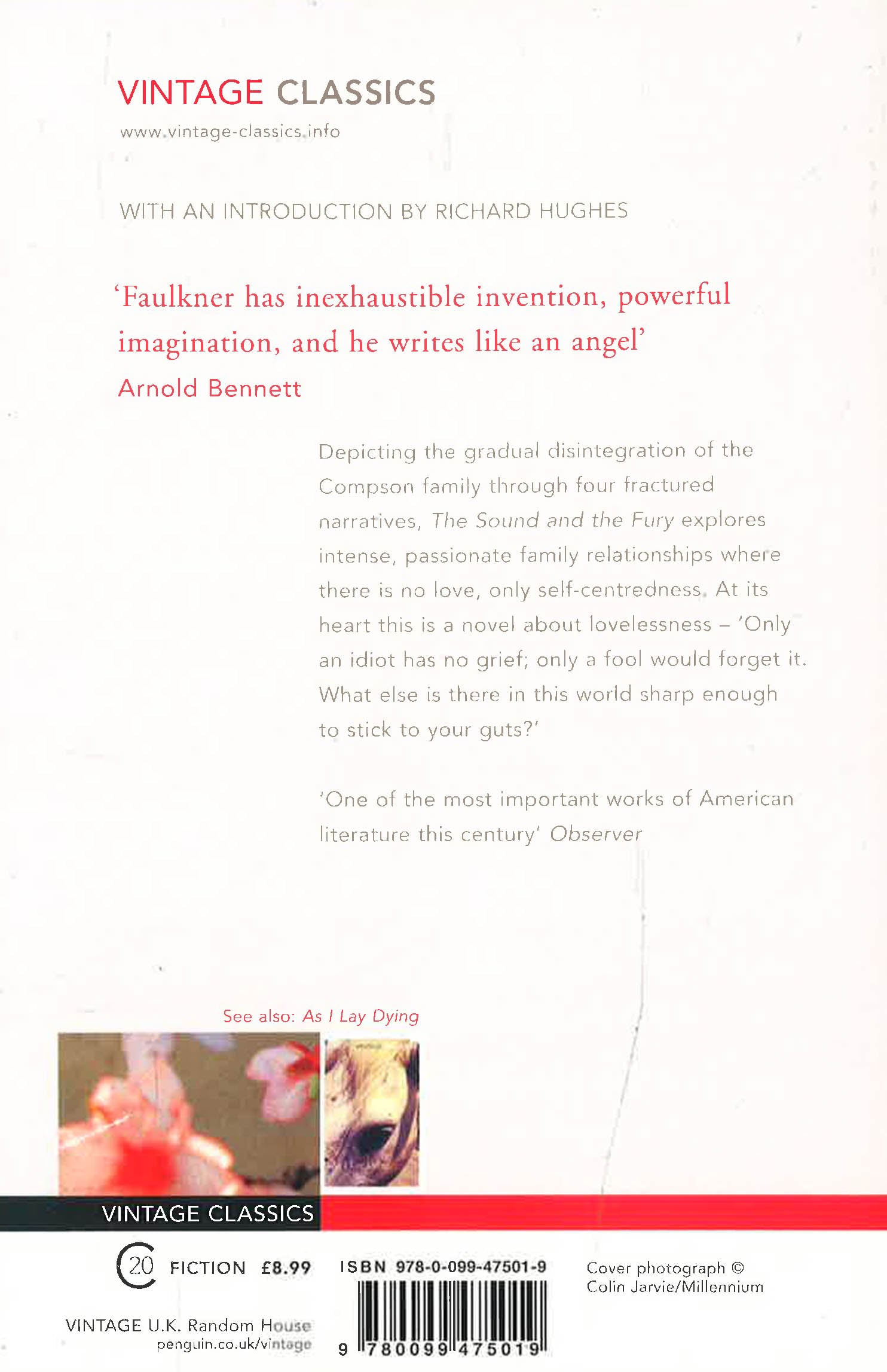 With an introduction by Richard Hughes Ever since the first furore was created on its publication in 1929, The Sound and the Fury has been considered one of the key novels of this century. Depicting the gradual disintegration of the Compson family through four fractured narratives, The Sound and the Fury explores intense, passionate family relationships where there is no love, only self-centredness. At its heart this is a novel about lovelessness - 'only an idiot has no grief; only a fool would forget it. What else is there in this world sharp enough to stick to your guts?'