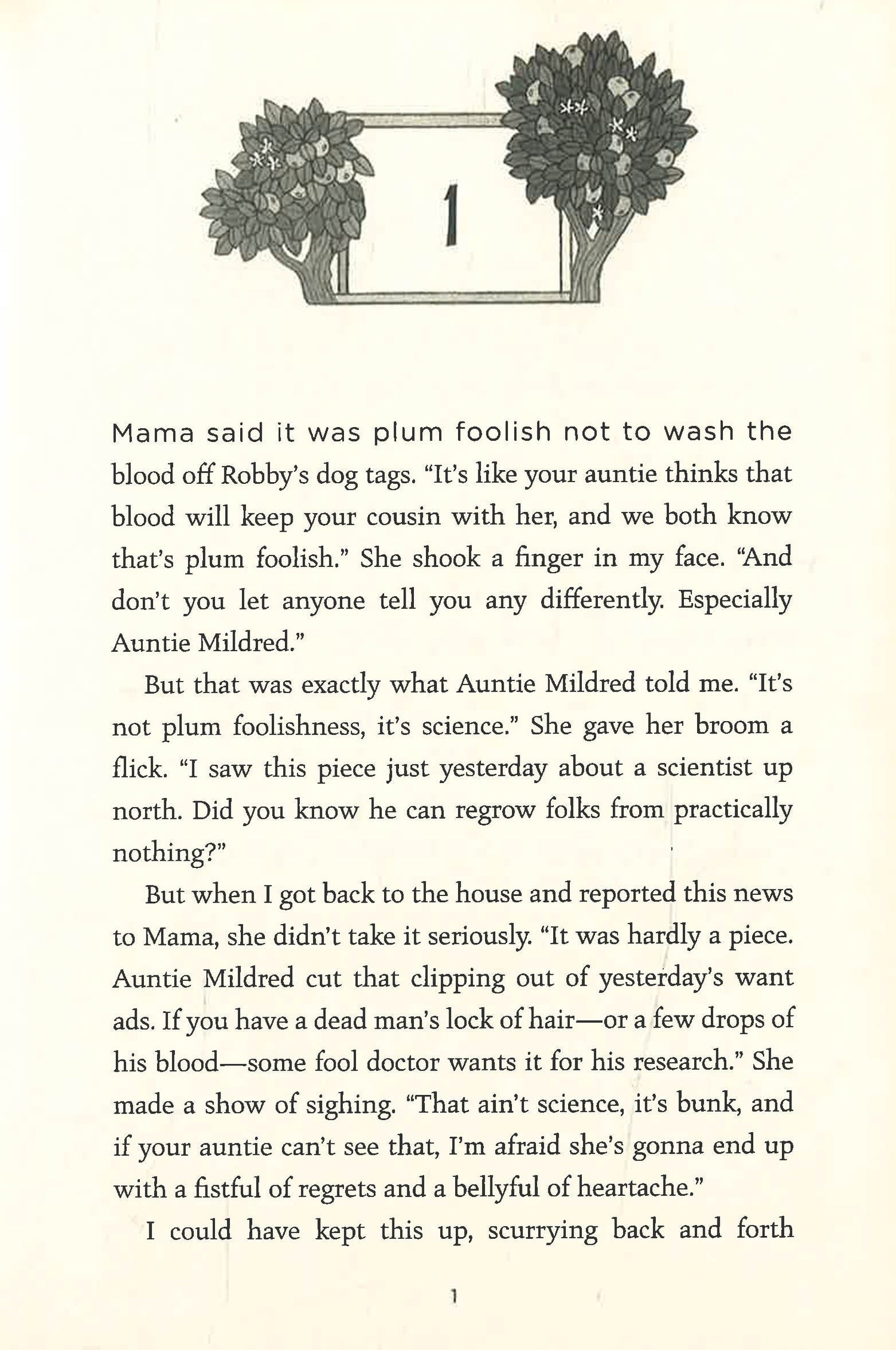 A fascinating speculative historical fiction debut set in 1950s California?perfect for fans of When You Reach Me. Twelve-year-old Ella Mae Higbee is a sensible girl. She eats her vegetables and wants to be just like Sergeant Friday, her favorite character on Dragnet. So when her auntie Mildred starts spouting nonsense about a scientist who can bring her cousin back to life from blood on his dog tags, Ella Mae is skeptical?until he steps out of a bio-pod right before her eyes. But the boy is not her cousin?he?s Japanese. And in California in the wake of World War II, the Japanese are still feared and despised. When her aunt refuses to take responsibility, Ella Mae and her Mama take him home instead. Determined to do what?s right by her new friend, Ella Mae teaches Takuma English and defends him from the reverend?s talk of H-E-double-toothpicks. But when his memories start to resurface, Ella Mae learns some shocking truths about her own family and more importantly, what it means to love. *This book may have remainder mark*