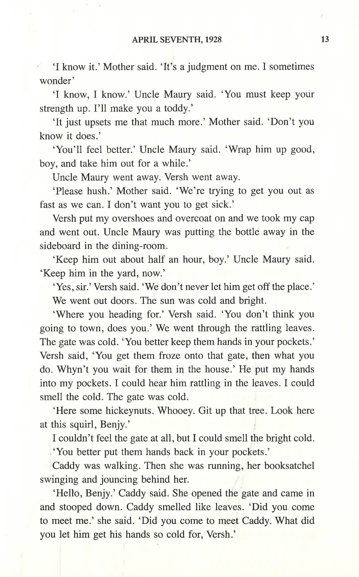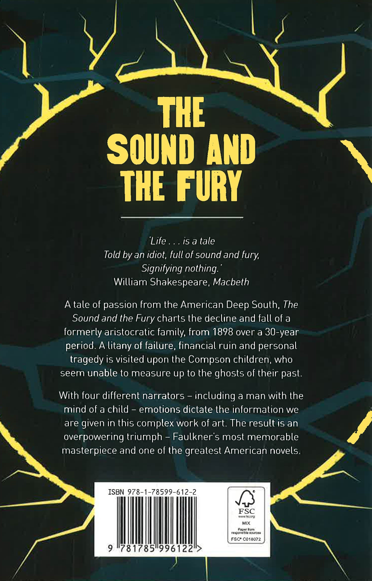 Ever since the first furore was created on its publication in 1929, The Sound and the Fury has been considered one of the key novels of this century. Depicting the gradual disintegration of the Compson family through four fractured narratives, the novel explores intense, passionate family relationships where there is no love, only self-centredness. At its heart, this is a novel about lovelessness - 'only an idiot has no grief; only a fool would forget it.