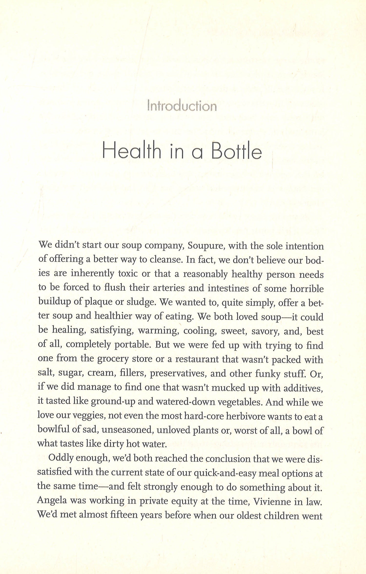 Souping is the new juicing!When Angela Blatteis and Vivienne Vella set out to create Soupure, the LA-based soup company at the forefront of the souping movement, they wanted to share the power of healing soups with the world. With a few simple, delicious recipes they've helped people lose weight, boost their energy, and feel better every day. Now with The Soup Cleanse they are bringing their satisfying, 100 percent good-for-you, whole food-based soups straight into your kitchen.With more than 50 delicious recipes and a flexible, easy-to-follow detox program, you'll learn how to nourish and purify your body while flooding it with essential nutrients. You will sip your way through high-fiber soups packed full of regenerative whole food ingredients. Unlike juicing and many other quick-fix diets, The Soup Cleanse is built on simple, satisfying recipes that won't leave you feeling hungry or deprived, making it accessible and easy to stick to-even for those with the busiest lifestyles.Get ready to rejuvenate, revitalize, and reclaim your health-one sip at a time!
