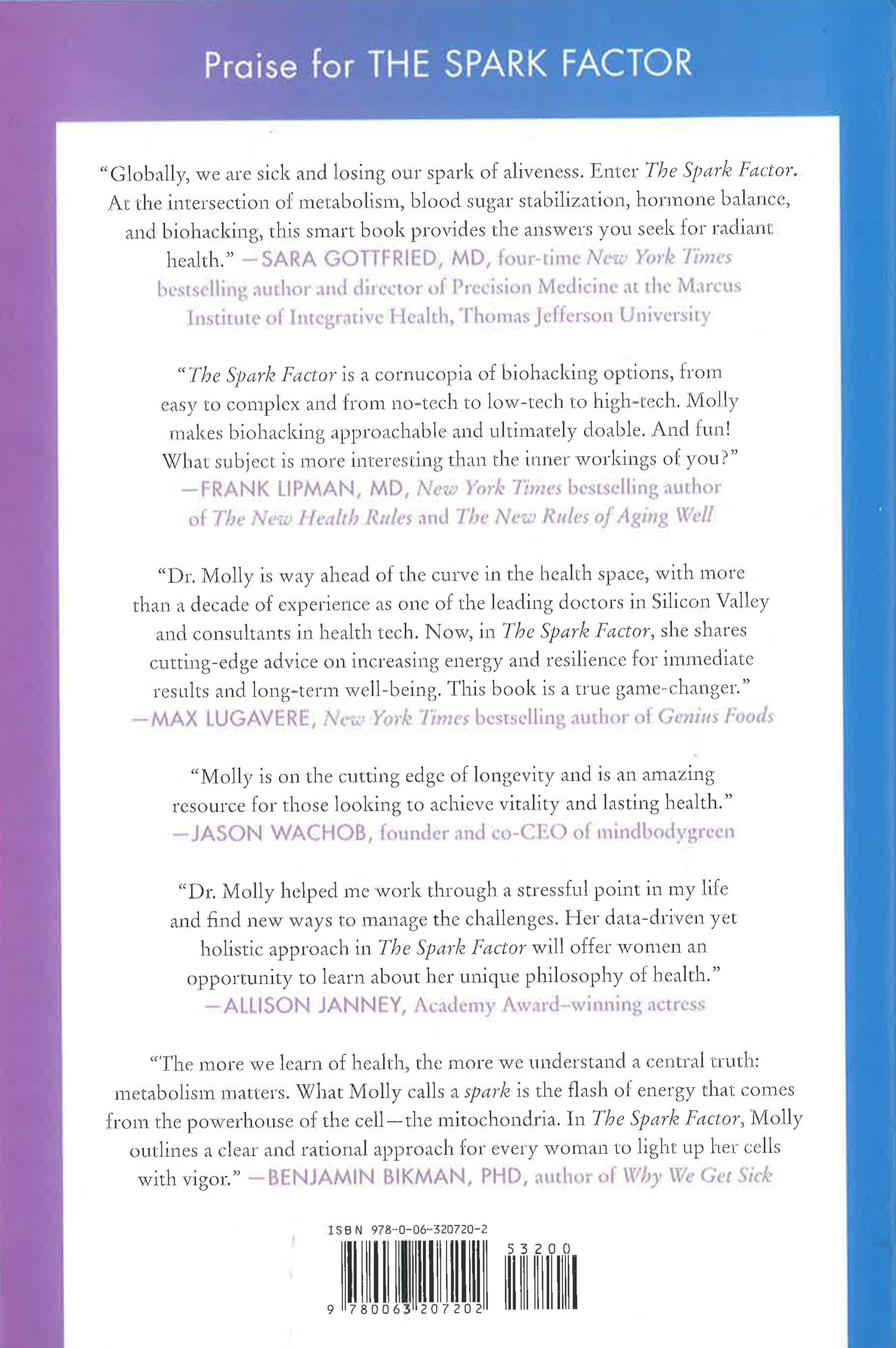 Now, in The Spark Factor, Dr. Molly Maloof shares a program uniquely tailored to the biology of women--a plan that targets the mitochondria, the power source of the cells. As Dr. Maloof shows, the intense, all-or-nothing approaches commonly used by biohackers to optimize health--including sustained fasting, ultra-low-carb diets, and intense training--can be harmful, especially for women, because they create excessive stress in an already-stressed body, which can make us tired, weak, and prone to illness.