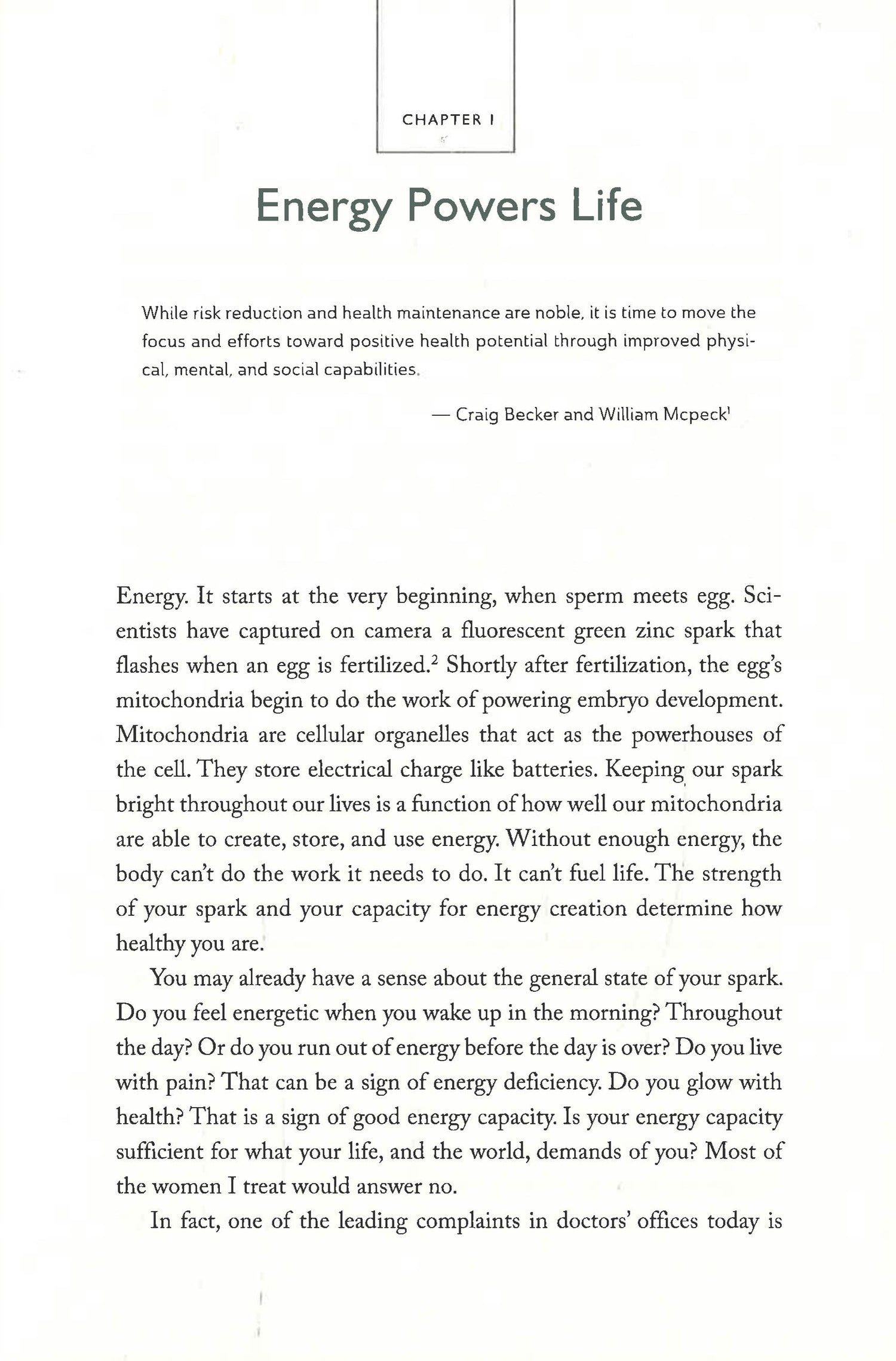 Inside of you, there is a spark--it's what animates you, and without it, you could not live. This energy creation isn't mystical, nor is it spiritual; it is science. We know from research that our cellular machinery transforms the food we eat and the air we breathe into the electricity that fuels us. With the right lifestyle inputs, we glow with energy; but when the demands on our bodies exceed our capacity--as is true for so many of us--we become burned out, mentally and physically.