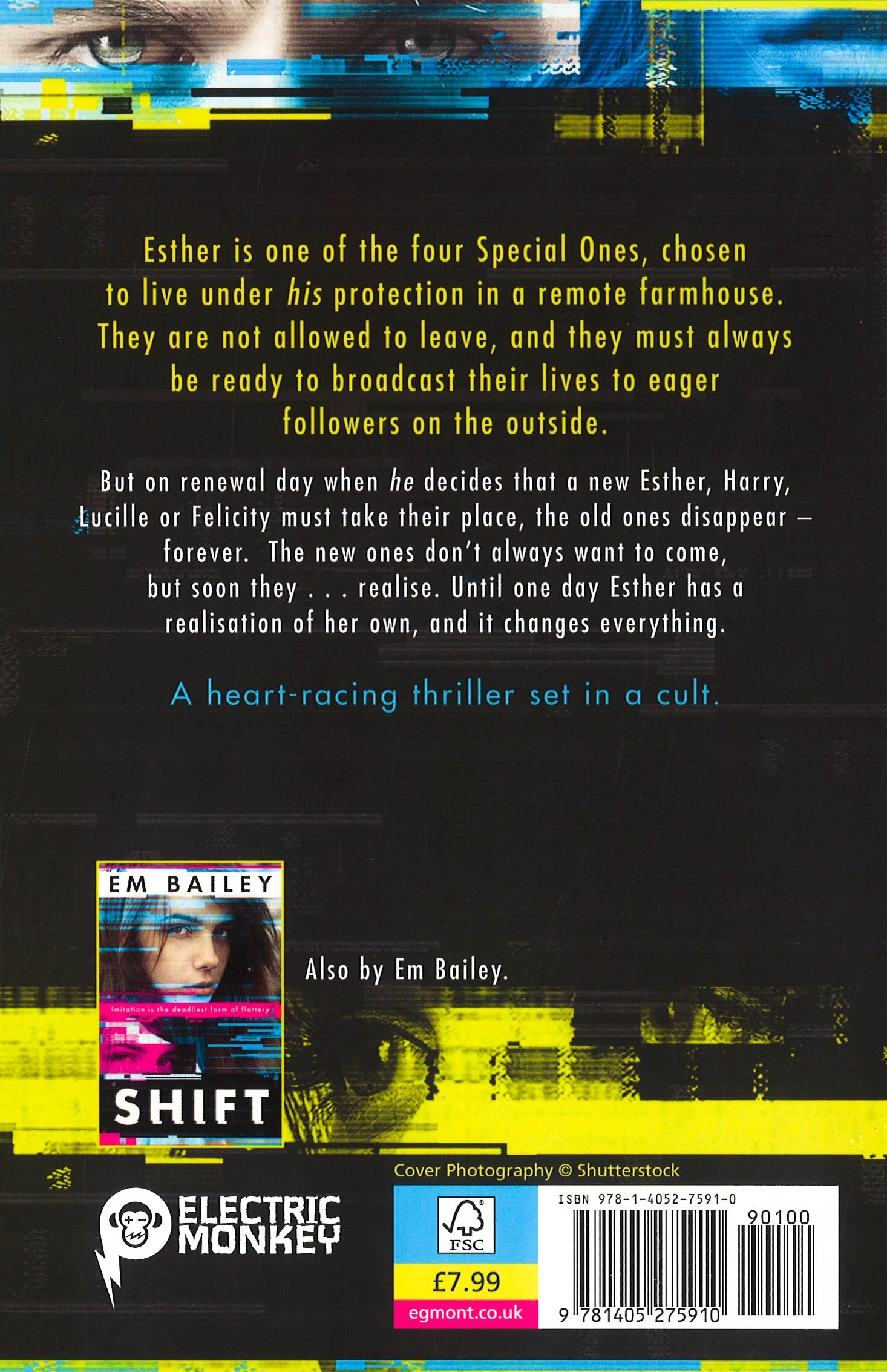Gone Girl meets Seed - a heart-racing YA thriller set in a cult that makes you question everything you thought you knew . They are chosen by him to live under his protection in a remote farmhouse, and they must always be ready to broadcast their lives to eager followers in the outside.Gone Girl meets Seed - a heart-racing YA thriller set in a cult that makes you question everything you thought you knew . . . Esther is one of the four Special Ones. They are chosen by him to live under his protection in a remote farmhouse, and they must always be ready to broadcast their lives to eager followers in the outside. But on renewal day when he decides that a new Esther, Harry, Lucille or Felicity must take their place, the old ones disappear - forever. The new ones don't always want to come, but soon they realise. Until one day Esther has a realisation of her own - and it changes everything. Perfect for fans of Melinda Salisbury, Lisa Heathfield and Sophie Mckenzie. Em Bailey is an Australian writer living in Germany with her partner and daughter. Em used to be a new-media designer for a children's television production house and is now a full-time author. The Special Ones is her second, much-anticipated novel for young adults. Her first novel, Shift, won the teens' choice Gold Inky Award in Australia and was shortlisted for a number of other awards.