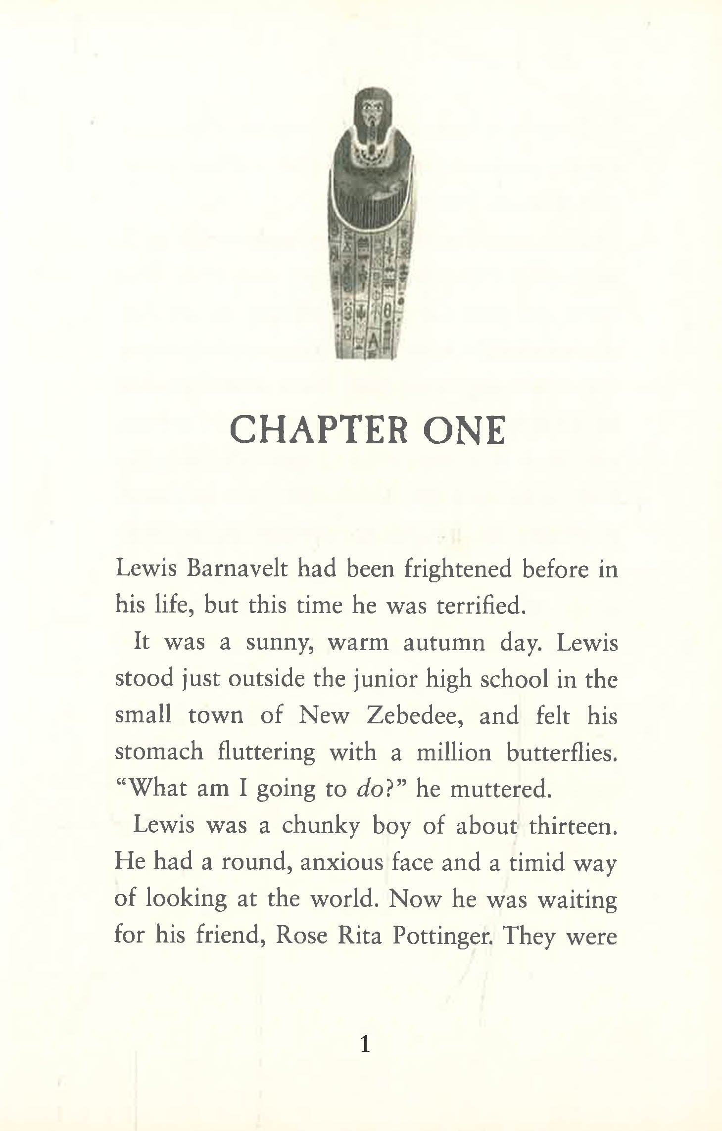 Lewis and Rose Rita have to participate in their school's talent contest, whether they like it or not. When they come up with the idea of doing a fake magic show, they decide to borrow some books on stage magic from a friend who works at a museum. After Rose Rita cuts her finger on an enchanted Egyptian scroll, she awakens the corpse of Belle Frisson, the scroll's previous owner, who captures Rose Rita and wants to use her body to live forever. Lewis must work together with his Uncle Jonathan and neighbour Mrs Zimmermann to rescue Rose Rita from the tomb in which she's imprisoned. For fans of Goosebumps.