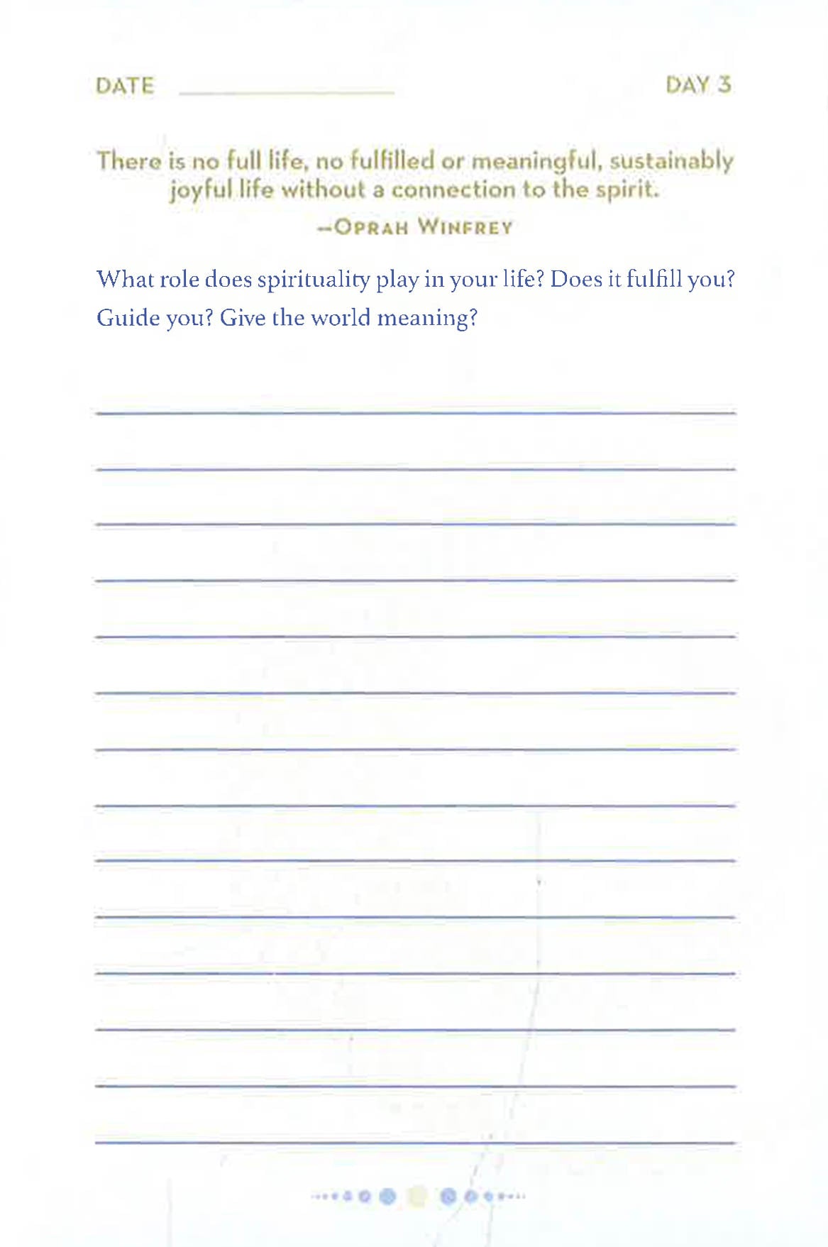 There are few subjects as satisfying to explore as your spirituality. Whether you worship in one religion or follow your own set of practices, this journal will help you examine your beliefs. With daily words of wisdom from inspiring figures and thought-provoking prompts, every page offers a chance to discover new insights, grapple with long-held convictions, or contemplate big questions about the universe. You will describe how your family shapes your beliefs, how your spirituality helped during a difficult time, and your relationship with a higher power. A few minutes every day are all you need to engage with your spiritual side.
