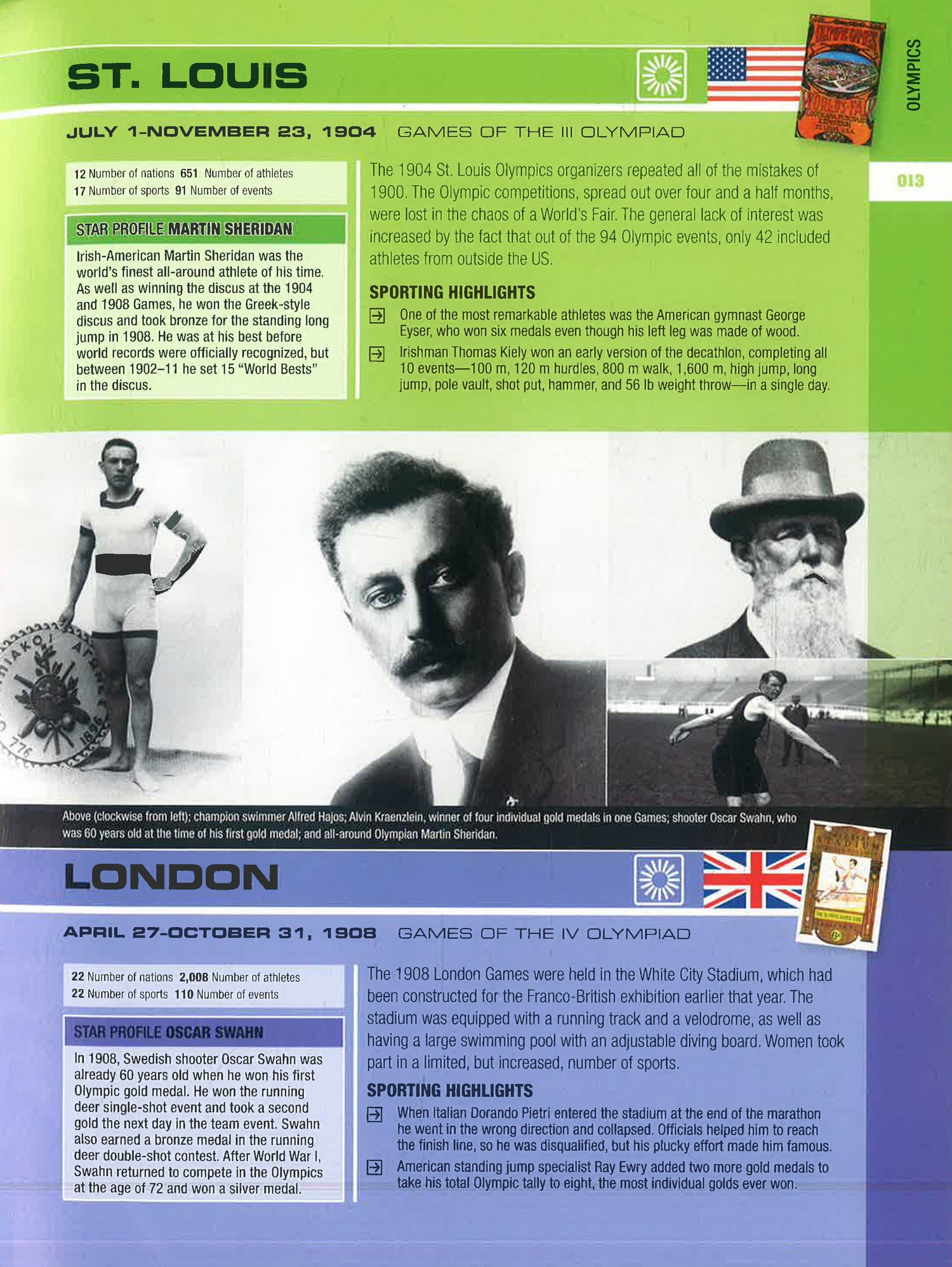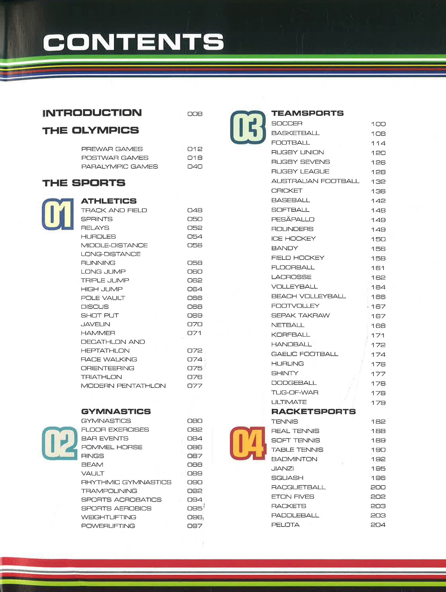 Fully updated with the latest statistics and world records, The Sports Book is packed with comprehensive details for more than 200 different sports, from baseball to hockey, jujitsu to cross-country skiing, and water polo to gymnastics. This invaluable reference also includes an extensive Olympics section covering the Paralympics, London 2012, and a look forward to Sochi 2014 and Rio 2016.
