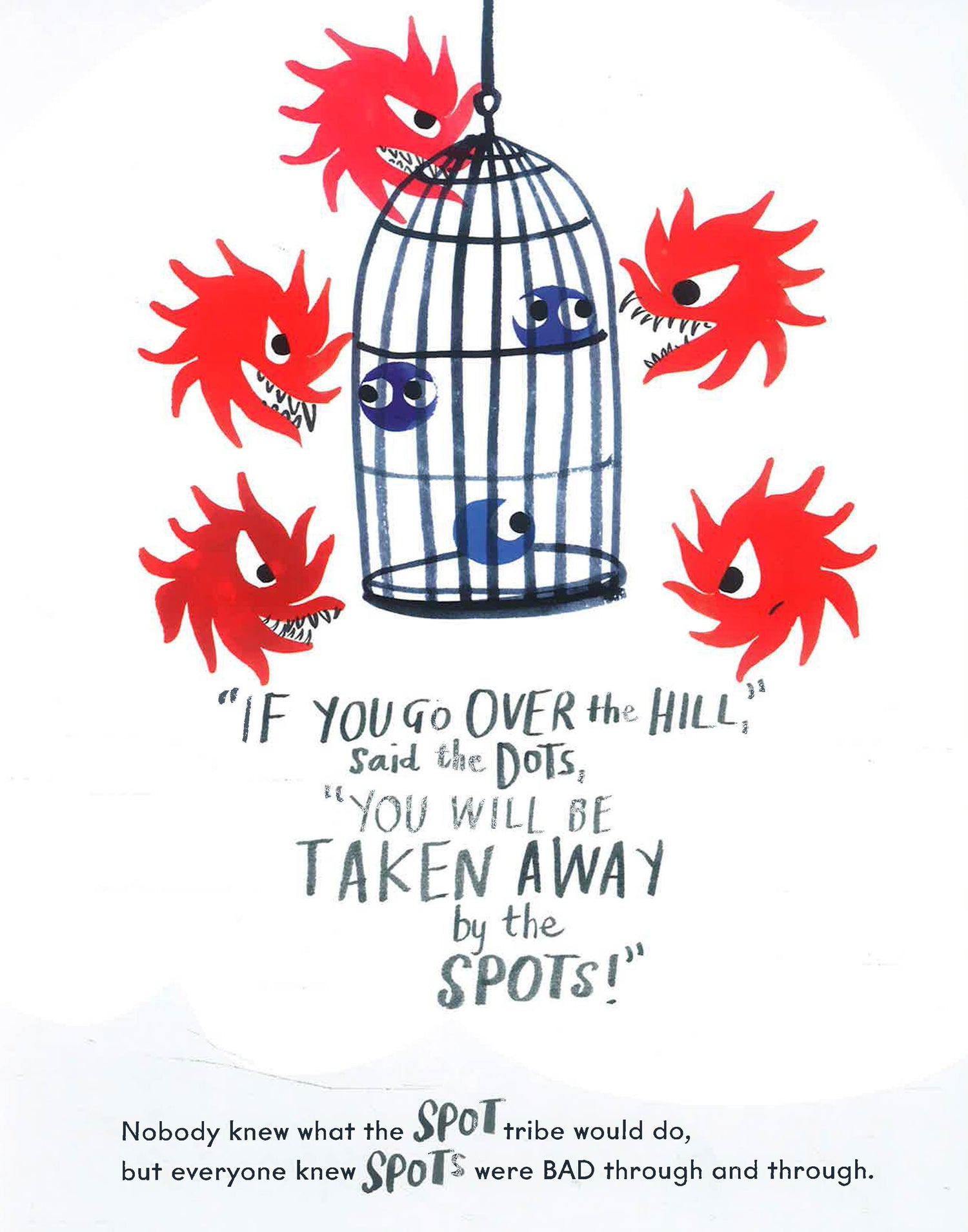 The Spots live on one side of the hill. The Dots live on the other. Both are fearful and suspicious of the other, but are they really all that different? When a young Spot and a young Dot meet at the top of the hill, they are about to find out...