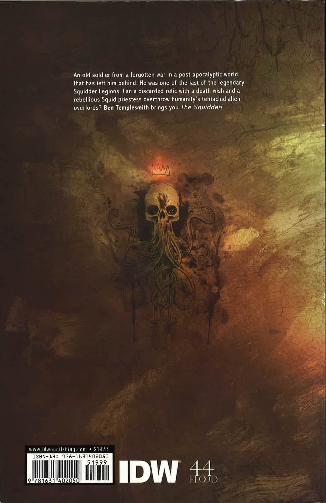 An old soldier from a forgotten war in a post-apocalyptic world that has left him behind. He was one of the last of the legendary Squidder Legions. Can a discarded relic with a death wish and rebellious Squid priestess overthrow humanity's tentacled alien overlords? Ben Templesmith brings you The Squidder!