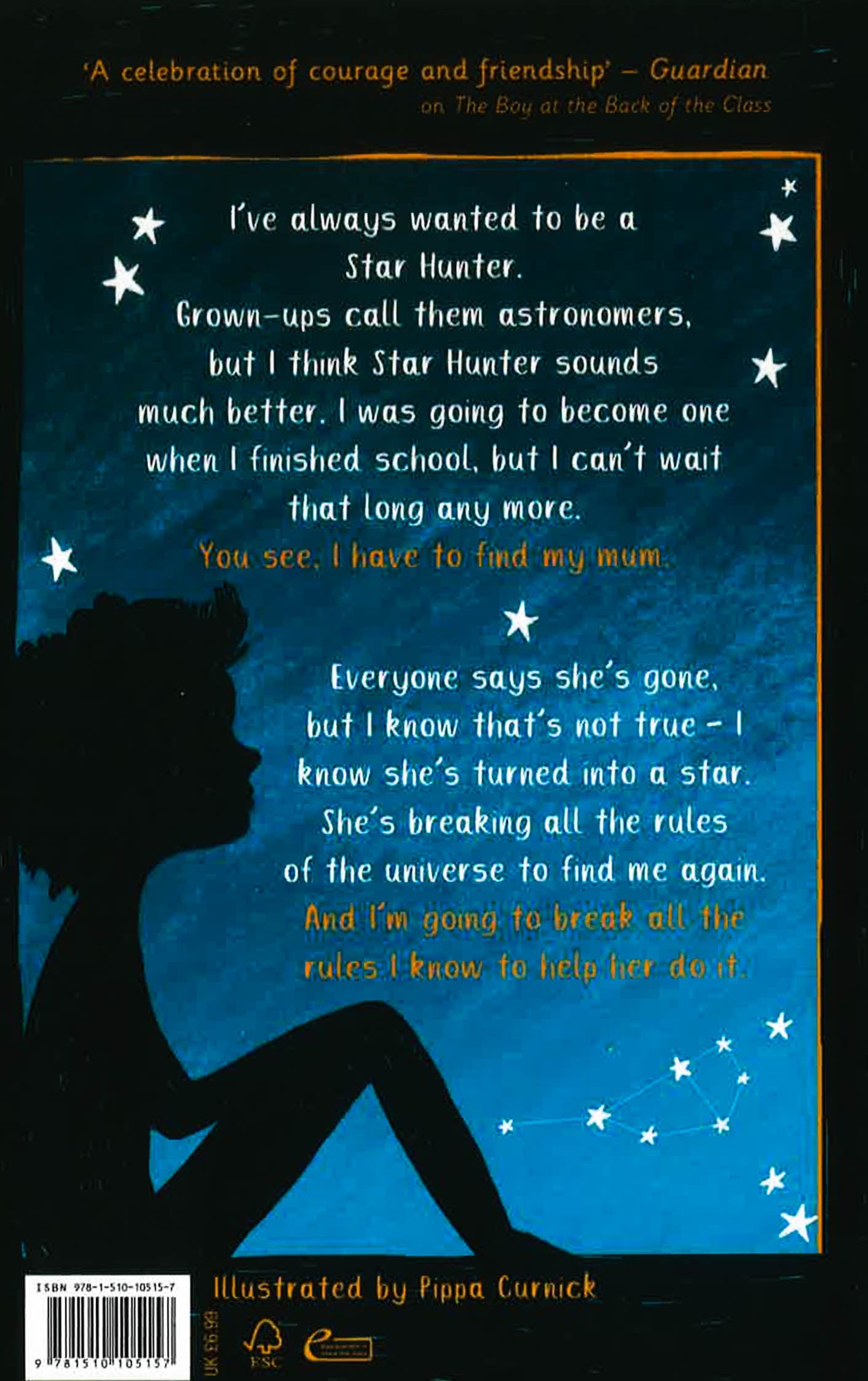 I've always wanted to be a Star Hunter. But I don't want to be the kind that looks for old stars that have already been burning for millions of years. I want to find the brand new ones - the ones that have only just been born and are searching for the people they've left behind...'Following the disappearance of her mum, 10-year-old Aniyah suddenly finds herself living in foster care. With her life in disarray, she knows just one thing for sure: her mum isn't gone for ever. Because people with the brightest hearts never truly leave. They become stars. So when a new star is spotted acting strangely in the sky, Aniyah is sure it's her mum, and she embarks on the adventure of a lifetime to make sure everyone else knows too -- an adventure that involves breaking into the Royal Observatory of London, a mischievous scurry of squirrels and the biggest star in Hollywood...Told through the innocent voice of a child, this is a story that explores the subtle faces and endless impacts of domestic violence, and celebrates the power of hope and resilience, from Onjali Rauf, the award-winning author of The Boy at the Back of the Class.*Parental guidance recommended: issues relating to domestic abuse included*