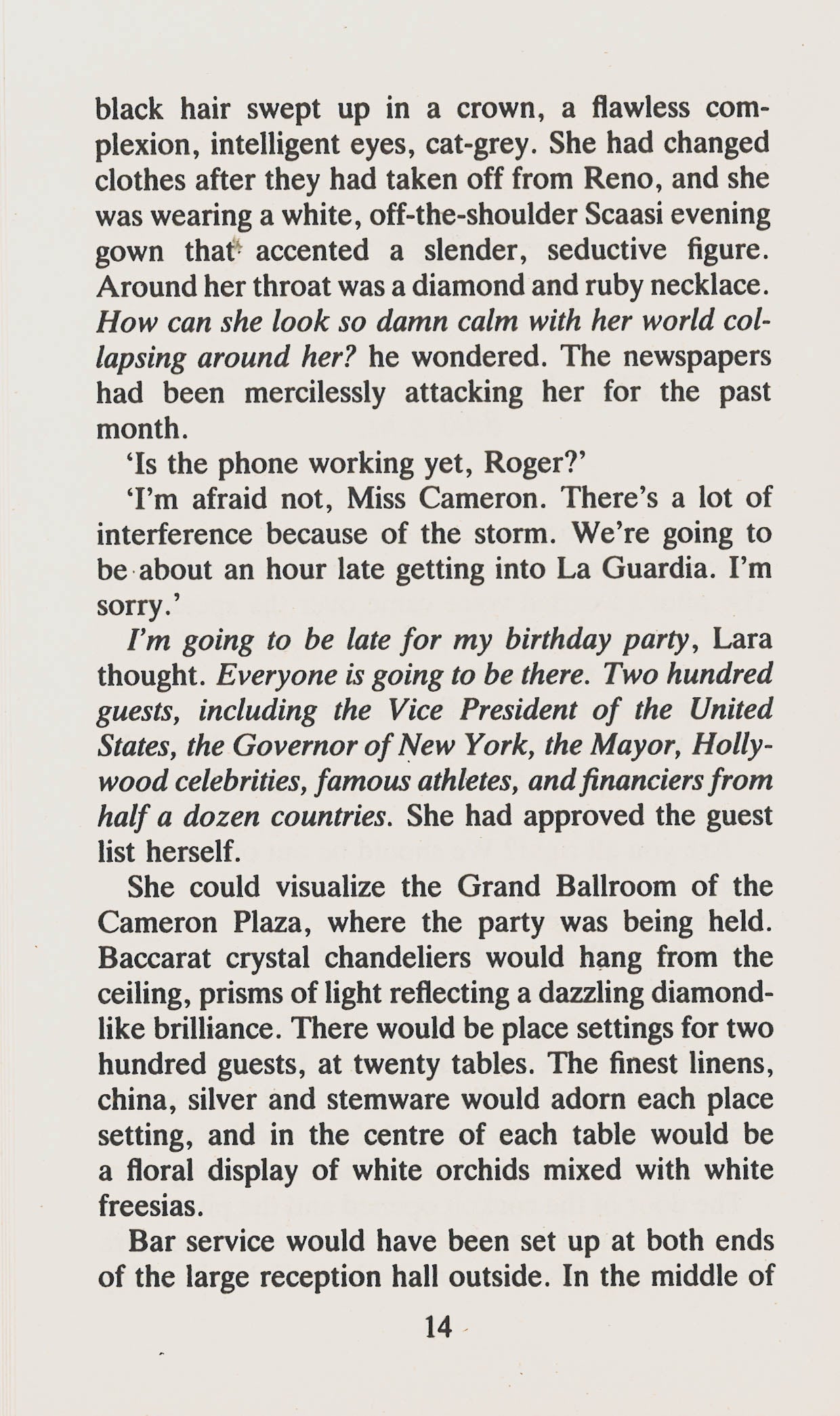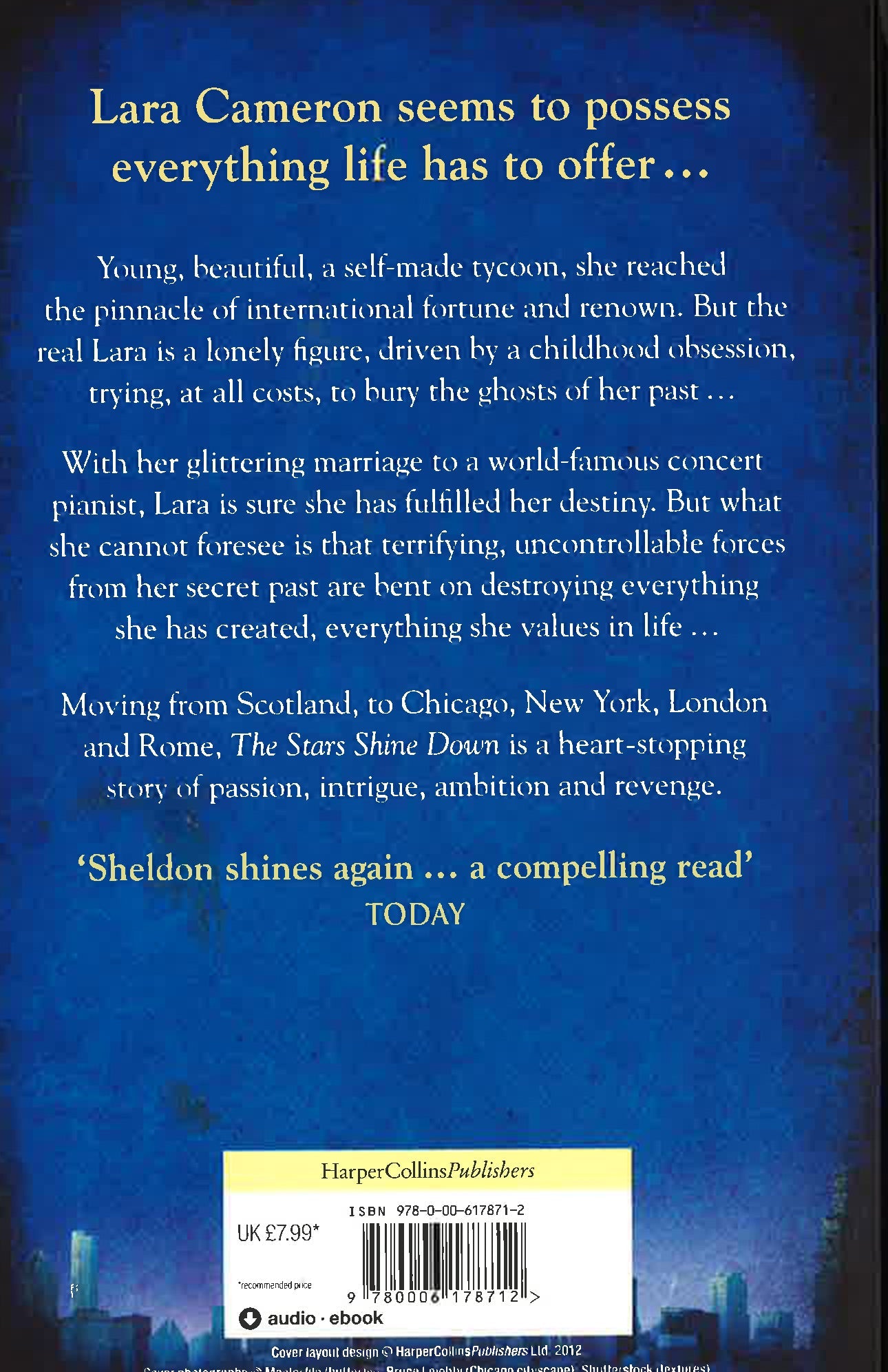 A page-turning thriller of love and betrayal from the bestselling Master of Suspense and author of If Tomorrow Comes and The Other Side of Midnight.The novel tells the story of Lara Cameron, a successful real estate developer who came from a broken family in Nova Scotia. Early in life, she learns to fend for herself and how to get her own way in a male-dominated world. After her father's death, Lara secures her first deal with the owner of the boarding house and before long her real-estate empire is booming. Moving to Chicago she goes on to become one of America's most successful businesswomen. She falls in love with a talented pianist, Philip Alder, and marries him, but her past comes back to haunt her and she is on the verge of losing everything. Can Lara recover from all her shattered dreams and win back the only man she has ever loved?