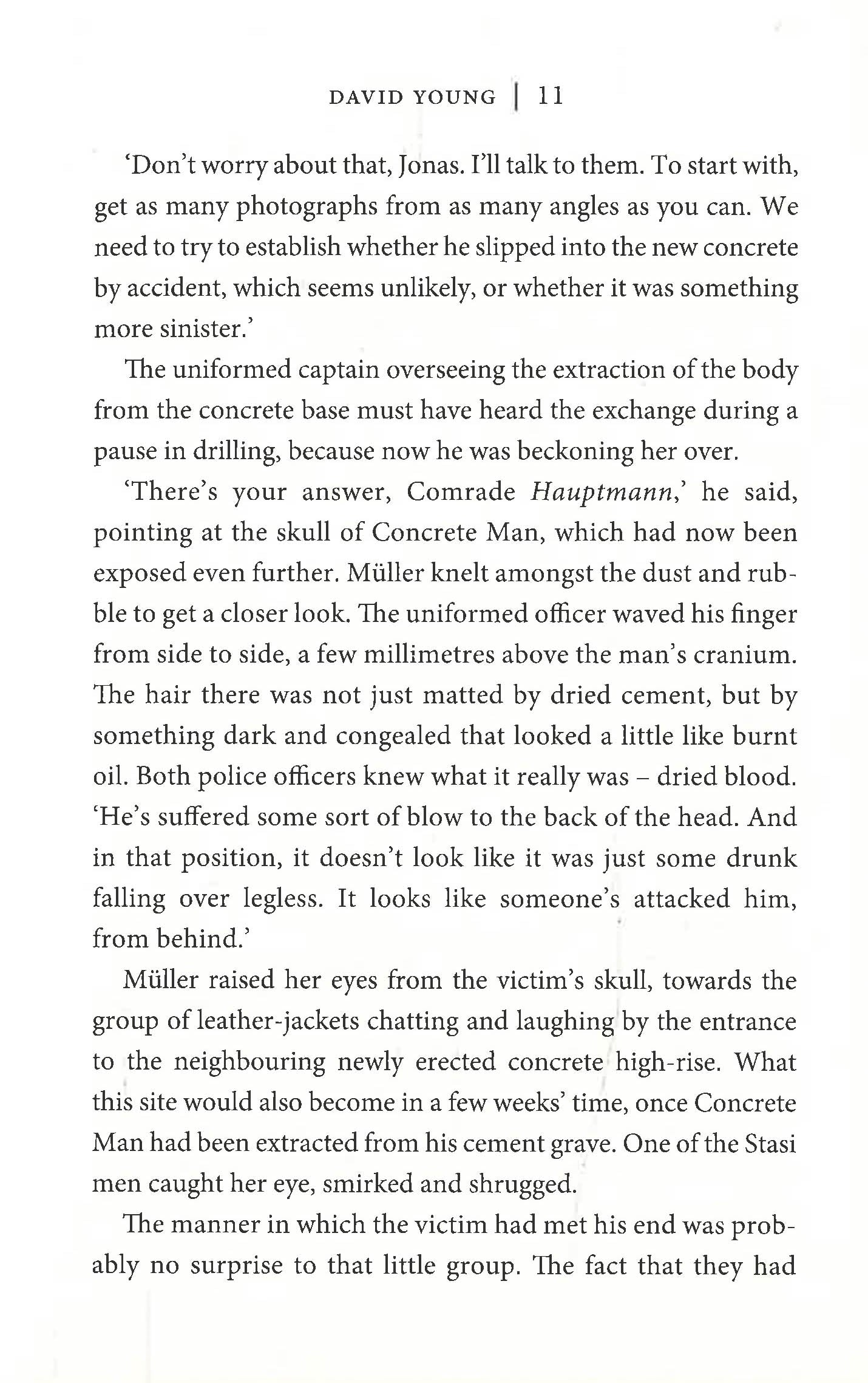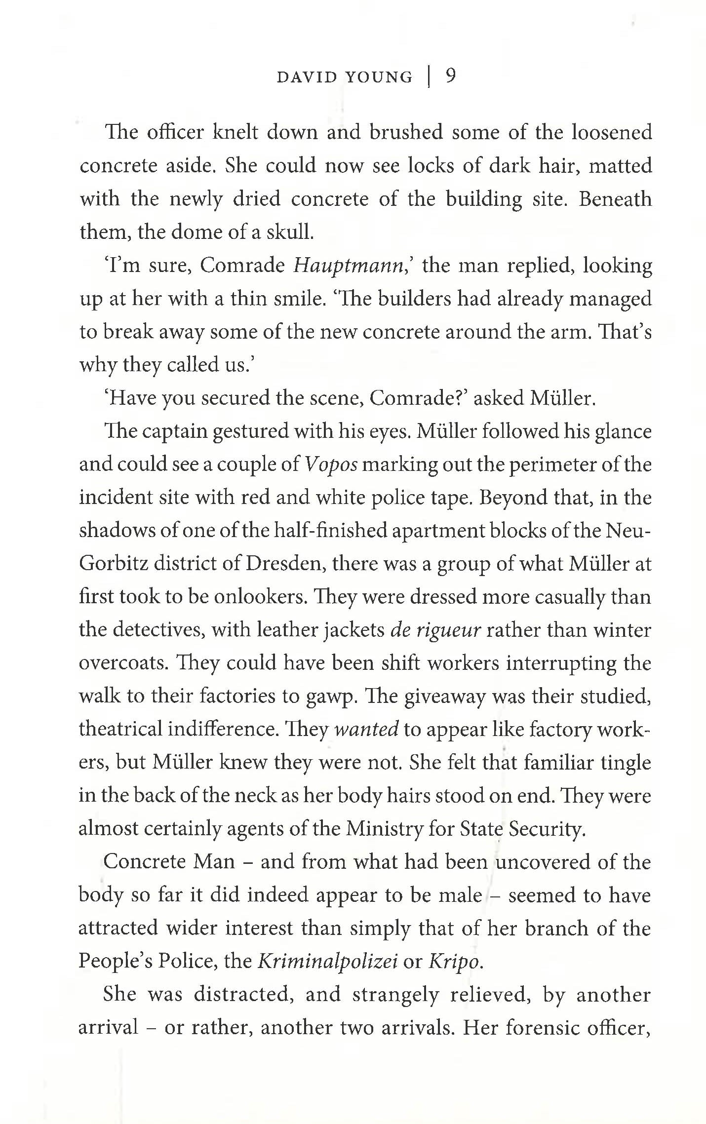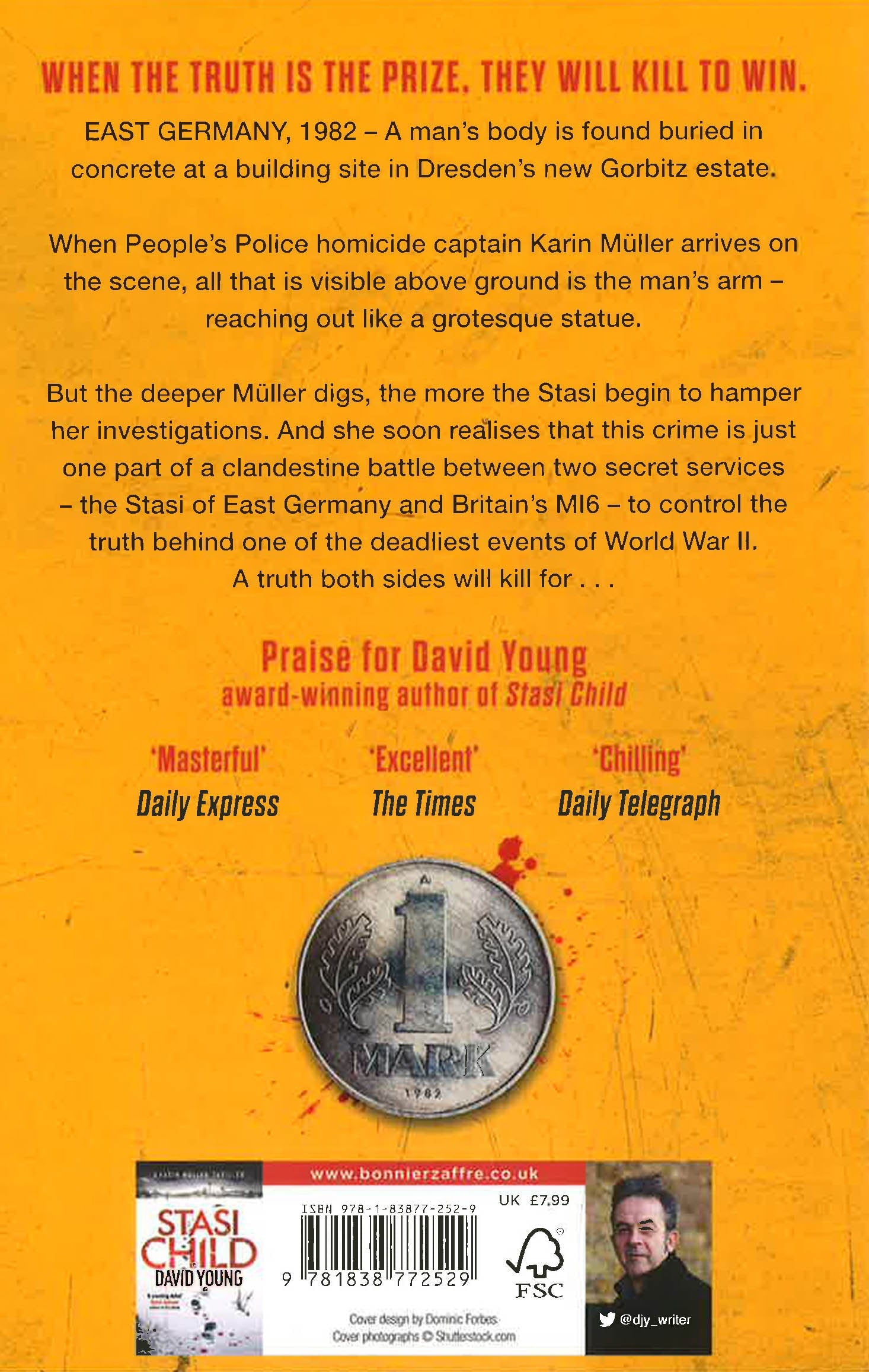 The Stasi and MI6 clash in this gripping Cold War crime thriller, from the award-winning author of Stasi Child. Dresden, East Germany, 1980 - A man's body is found buried in concrete at a building site in the new town district. When People's Police homicide captain Karin Muller arrives at the scene, she discovers that all of the body's identifiable features have been removed - including its fingertips. The deeper Muller digs, the more the Stasi begin to hamper her investigations. She soon realises that this crime is just one part of a clandestine battle between two secret services - the Stasi of East Germany and Britain's MI6 - to control the truth behind one of the deadliest events of World War II. The Stasi Game brilliantly fictionalises the true story of how Britain's wartime leaders justifed the fire-bombing of German city of Dresden, which many have since condemned as a war crime.