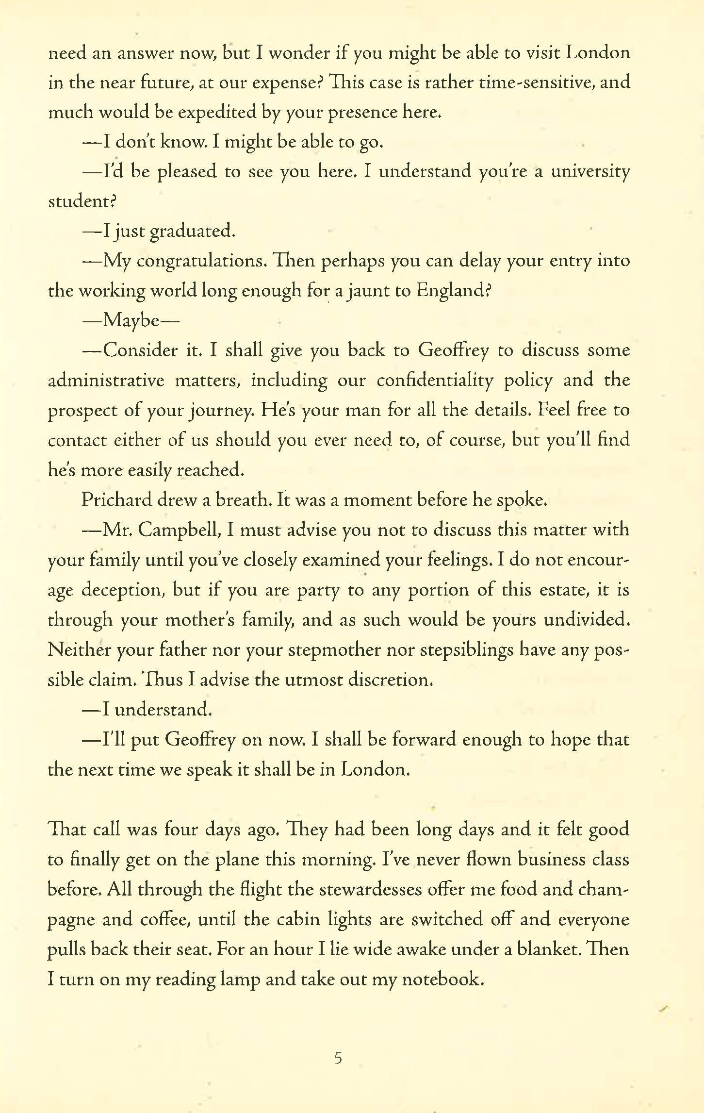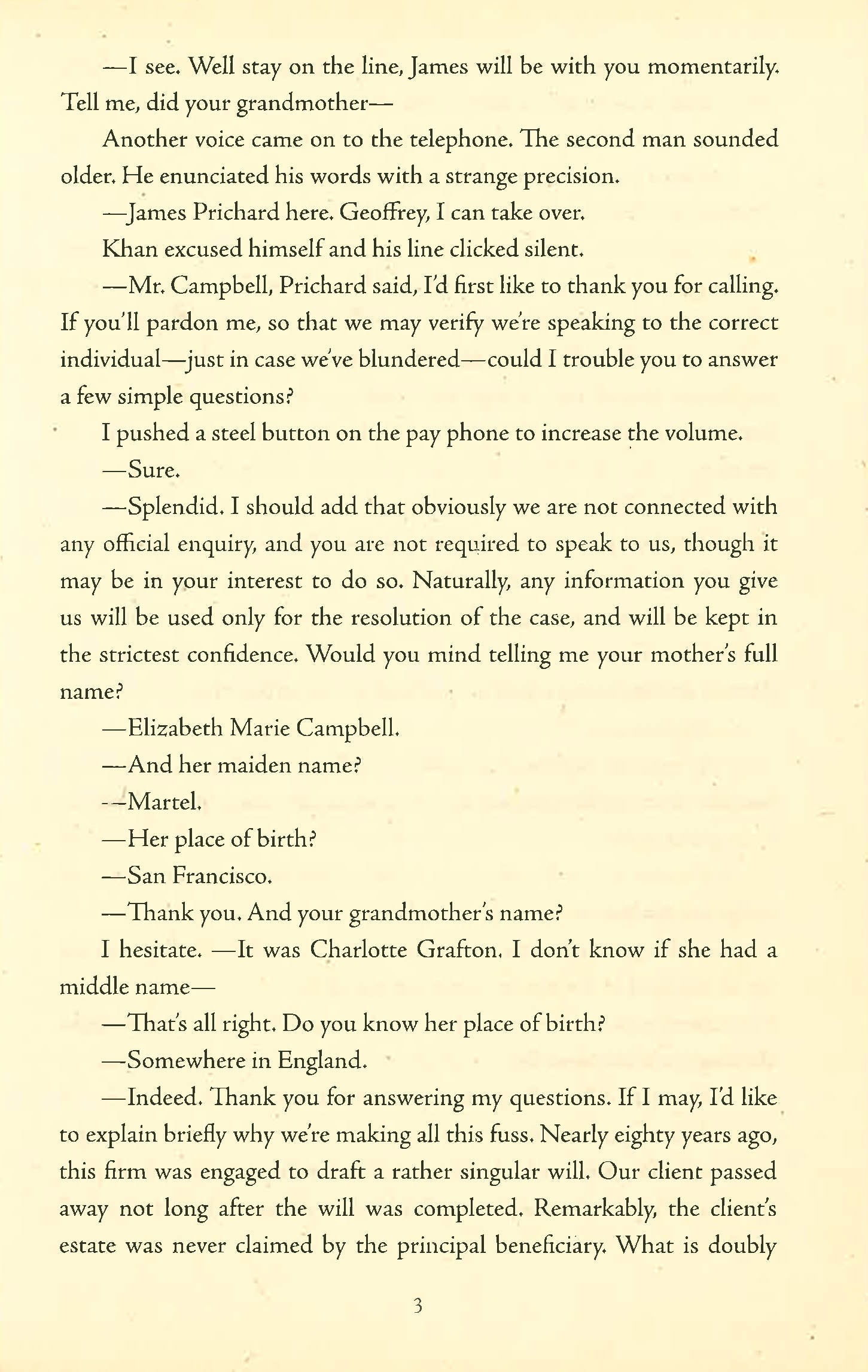 Just after graduating college, Tristan Campbell receives a letter delivered by special courier to his apartment in San Francisco. It contains the phone number of a Mr J F Prichard of Twyning & Hooper, Solicitors, in London - and news that could change Tristan's life forever. In this mesmerizing debut, a young American discovers he may be heir to the unclaimed estate of an English World War I officer, which launches him on a quest across Europe to uncover the elusive truth. Just after graduating college, Tristan Campbell receives a letter delivered by special courier to his apartment in San Francisco. It contains the phone number of a Mr. J.F. Prichard of Twyning & Hooper, Solicitors, in London - and news that could change Tristan's life forever.In 1924, Prichard explains, an English alpinist named Ashley Walsingham died attempting to summit Mt. Everest, leaving his fortune to his former lover, Imogen Soames-Andersson. But the estate was never claimed. Information has recently surfaced suggesting Tristan may be the rightful heir, but unless he can find documented evidence, the fortune will be divided among charitable beneficiaries in less than two months.In a breathless race from London archives to Somme battlefields to the Eastfjords of Iceland, Tristan pieces together the story of a forbidden affair set against the tumult of the First World War and the pioneer British expeditions to Mt. Everest. Following his instincts through a maze of frenzied research, Tristan soon becomes obsessed with the tragic lovers, and he crosses paths with a mysterious French girl named Mireille who suggests there is more to his quest than he realizes. Tristan must prove that he is related to Imogen to inherit Ashley's fortune - but the more he learns about the couple, the stranger his journey becomes.The Steady Running of the Hour announces the arrival of a stunningly talented author. Part love story, part historical tour de force, Justin Go's novel is utterly compelling, unpredictable, and heartrending.