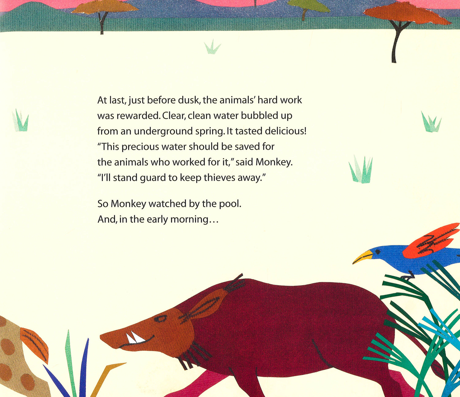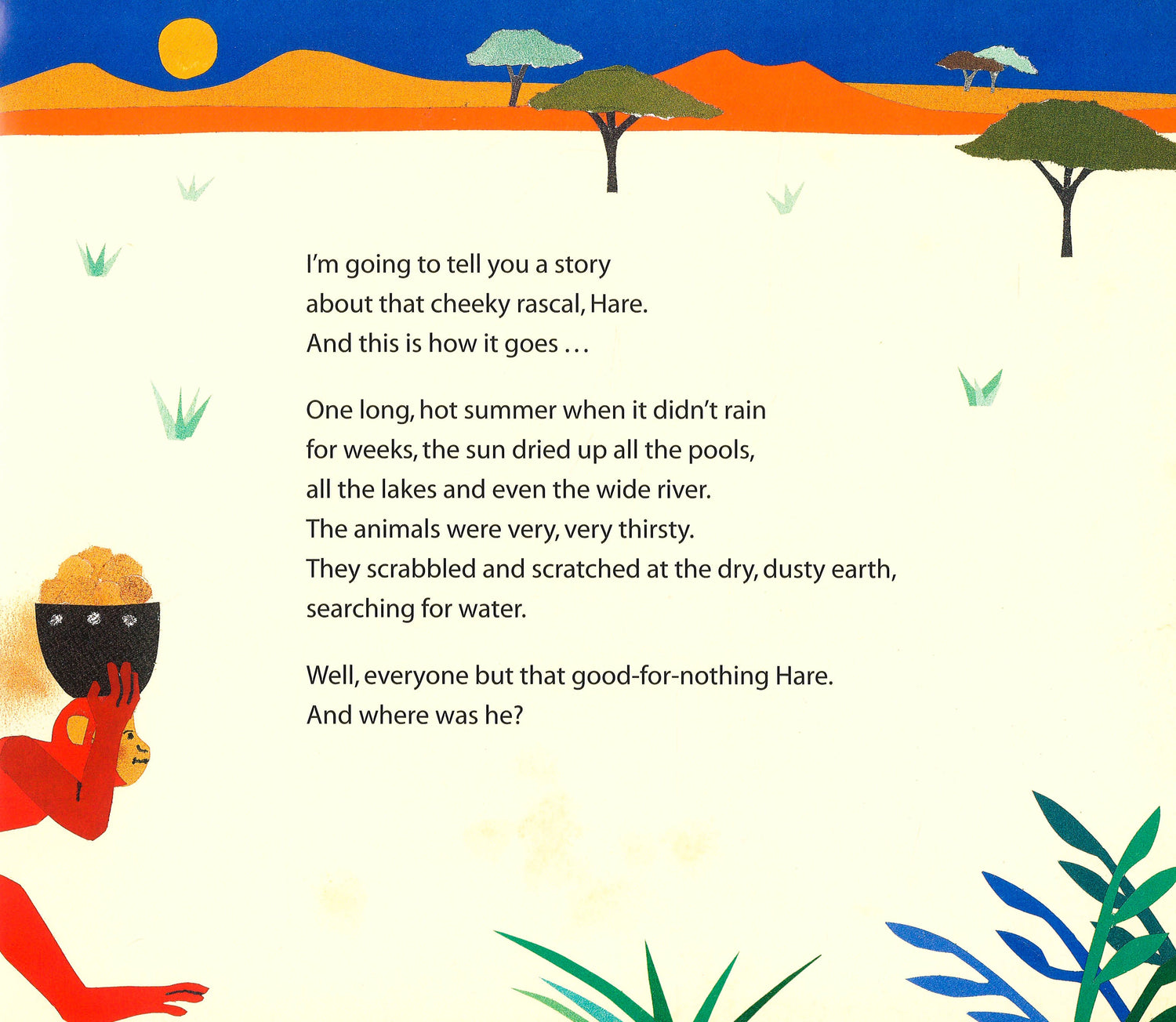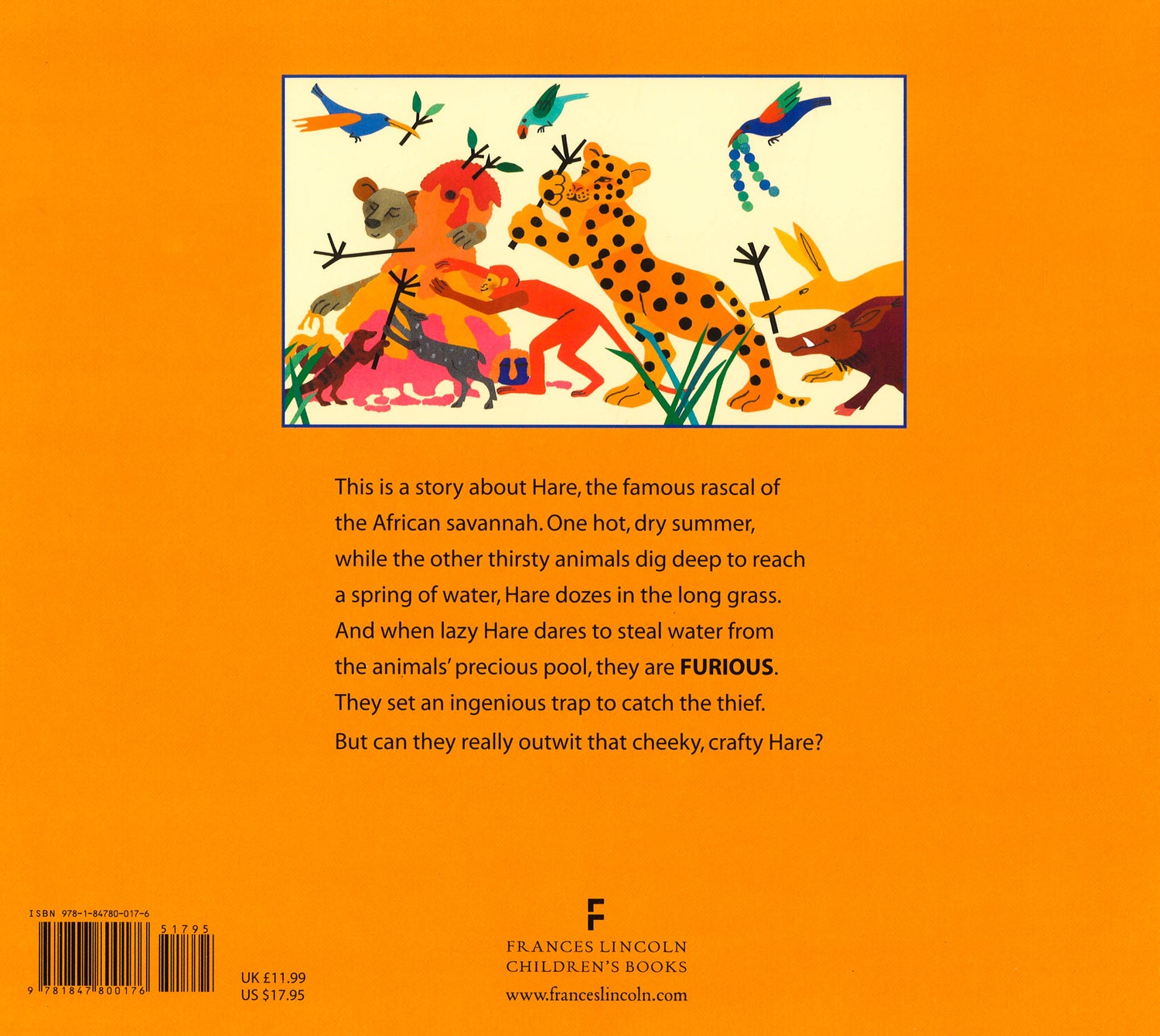 Hare is a cheeky rascal who prefers to have a nap while the other animals are scratching in the earth searching for water. Hare tricks Monkey and then Hyena into shutting their eyes tight while he fills his calabash with the newly-found water and scampers away. By now, the animals are angry, and decide to get their own back. They make a huge, gummy, sticky doll, set it up at the water's edge, and wait...Along comes Hare with his empty calabash, most annoyed to find someone else by the precious water. He hits out at the sticky doll and is trapped at last in front of all the animals. But even now wily Hare finds a way to get the better of the other animals and escape puinishment! This traditional trickster tale dates back to the Uncle Remus story of Brer Rabbit and the Tar Baby, and can be found in different versions all over South and West Africa, North and South America - even in a Jataka tale from India. Jessica Souhami has turned a West African version into a comic, read-aloud story accompanied by stunning, brilliantly coloured collage to create a book bursting with fun for very young readers.