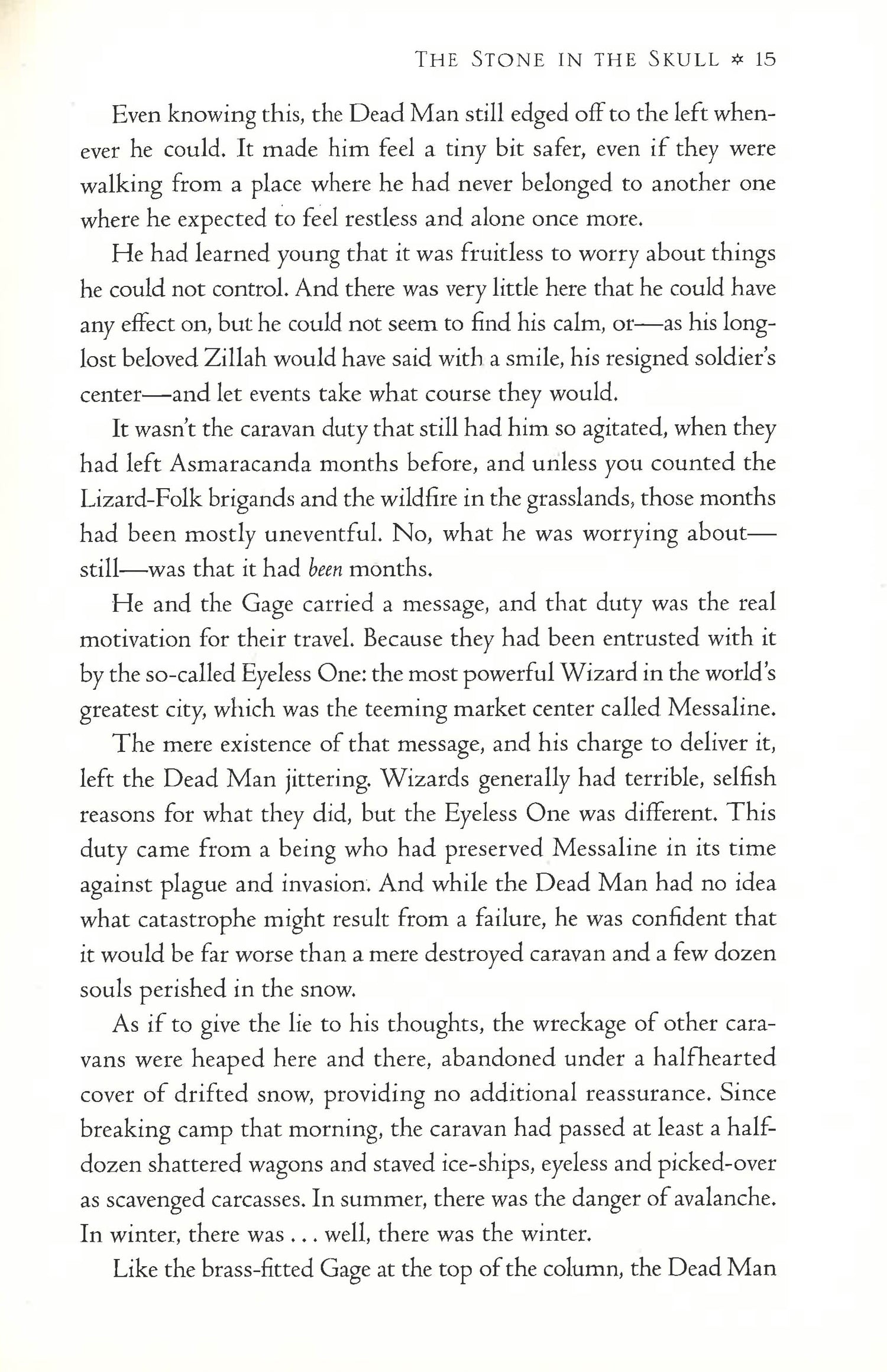 This first volume of a new Eternal Sky trilogy takes readers over the dangerous mountain passes of the Steles of the Sky and south, into the Lotus Kingdoms.The Gage is a brass automaton created by a Wizard of Messaline around the core of a human being. His wizard is long dead, and he works now as a mercenary. He carries a message from a powerful sorcerer to the ruling queen of one of the Lotus Kingdoms. With him is the Dead Man, a bitter survivor of the bodyguard of the deposed Uthman Caliphate, protecting the message and the Gage. They are friends, of a peculiar sort.They are walking into a dynastic struggle between the rulers of the shattered pieces of a once great Empire.The young queen of Sarathai must choose a husband - a husband who will become the master of her kingdom. The leading suitor is her repulsive cousin, who believes he is destined to sit on the Peacock Throne - if not through marriage then by conquest. Can sorcery and war in the hands of the Gage and a dead man reunite an Empire?