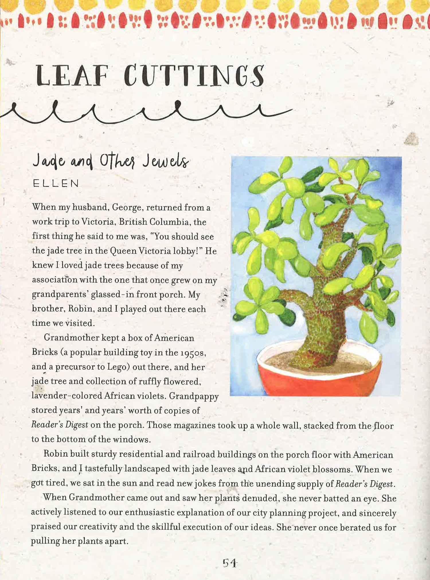 This charming book of lovely tales is about the magic of self-discovery, memory, and human connections transmitted through botany. The stories are supplemented with simple plant propagation how-tos for the plants that connect to the memories. Start a rosebush from the rose in your wedding bouquet, remember Grandma's hollyhock from a cutting of the plant by her clothesline, enjoy onions in your garden descending from a gift of an onion at a B&B where you spent a week on a romantic holiday, or plant a balsam fir at the end of the driveway to remind you of Christmas.