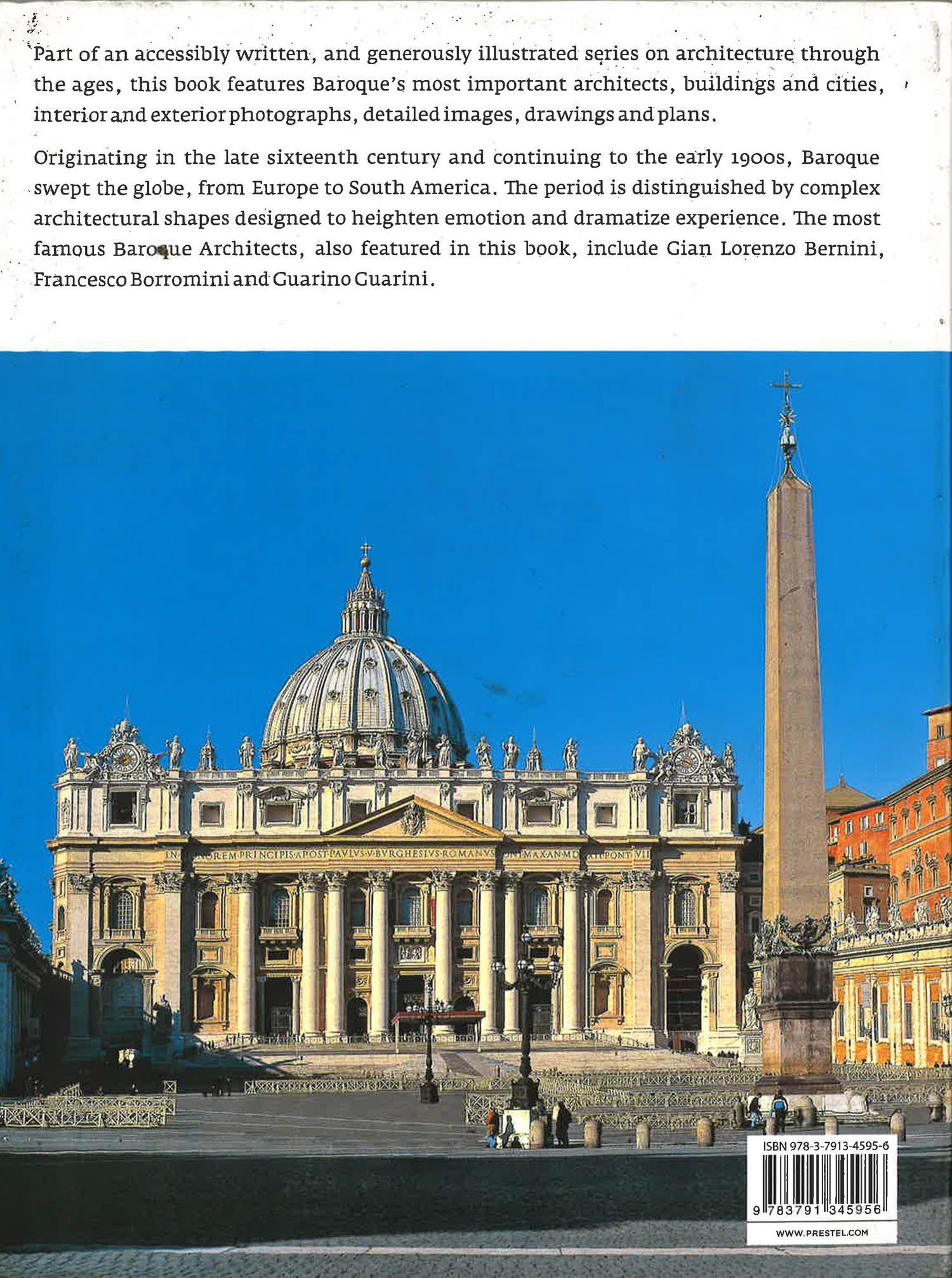 Part of a new, accessibly written, and generously illustrated series on architecture through the ages, this book features Baroque's most important architects, buildings and cities, interior and exterior photographs, detailed images, drawings, and plans. The book offers a general introduction to Baroque, discusses the characteristics of the style, and the commonly used techniques and materials. Originating in the late sixteenth century and continuing to the early 1900s, Baroque swept the globe, from Europe to South America. The period is distinguished by complex architectural shapes designed to heighten emotion and dramatize experience. Buildings from this period are celebrated for their grandeur, intricate embellishments, and gilded statuary. Renowned Baroque architects include Gian Lorenzo Bernini, Francesco Borromini, and Guariono Guarini.