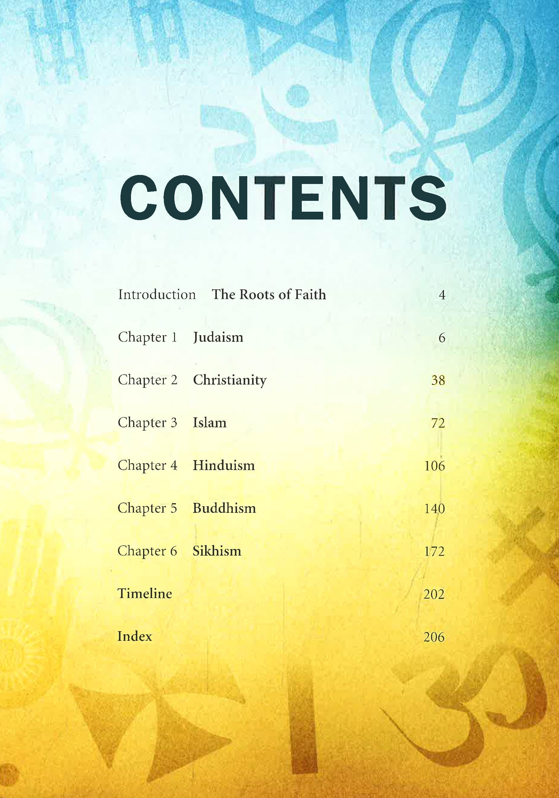 This book traces the history of the world's great religions from their foundation to the present day. Their development is shown in interesting visuals--such as maps and photographs--as well as informative yet concise text. Also included are short biographies of major figures, statistics, calendars of festivals and timelines.The religions included are: Buddhism, Christianity, Hinduism, Islam, Judaism and Sikhism.Tells the stories of the world's major faiths--their early history and the different traditions and movements of each one. Accessible text--ideal for adults and teenagers. Attractive layout, with many features, including boxouts, photographs and maps.