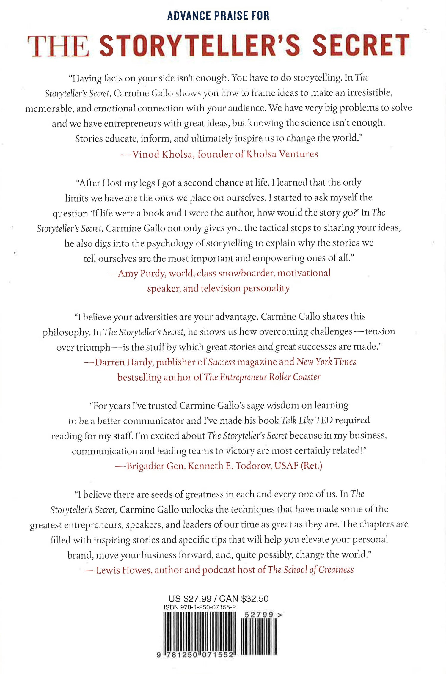How did a Venice Beach T-shirt vendor become television's most successful producer? How did an entrepreneur who started in a garage create the most iconic product launches in business history? How did a timid pastor's son overcome a paralyzing fear of public speaking to captivate sold-out crowds at Yankee Stadium, twice? How did a human rights attorney earn TED's longest standing ovation, and how did a Facebook executive launch a movement to encourage millions of women to "lean in"? They told brilliant stories.In The Storyteller's Secret: From TED Speakers to Business Legends, Why Some Ideas Catch on and Others Don't, keynote speaker, bestselling author, and communication expert Carmine Gallo reveals the keys to telling powerful stories that inspire, motivate, educate, build brands, launch movements, and change lives.