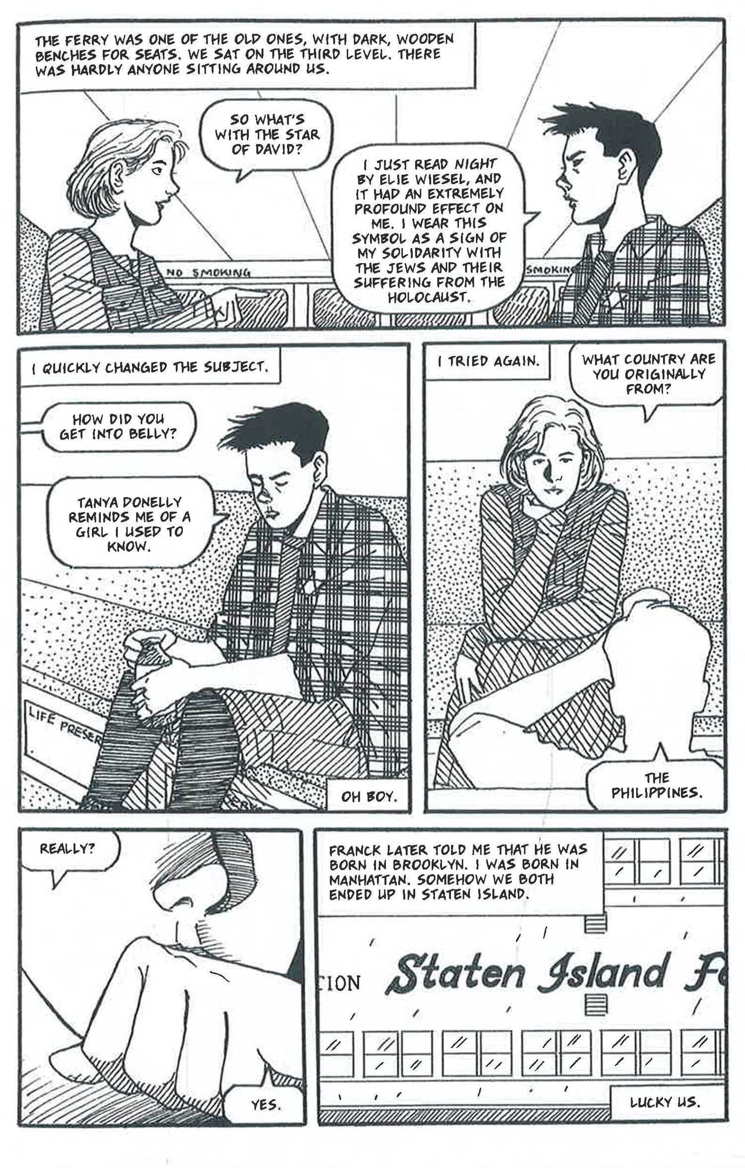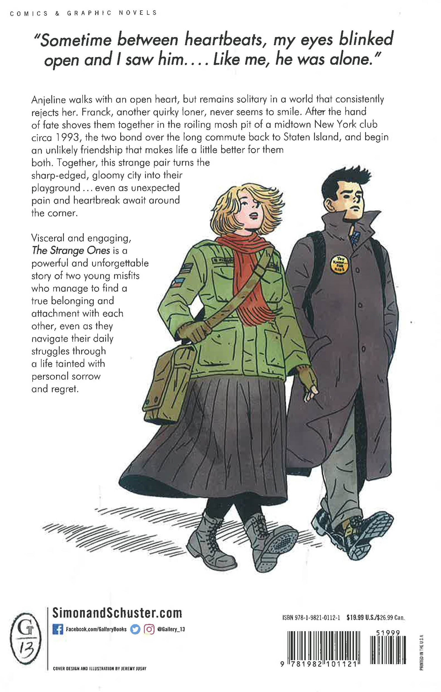 Filled with visceral and engaging prose, this graphic novella offers a nostalgic look at two young misfits who manage to find belonging and heartbreak in each other's friendship. Anjeline walks with an open heart, but alone, through a world that consistently rejects her; Franck, another loner, never smiles. After the hand of fate literally shoves them together in the roiling mosh pit at a Midtown rock concert, they bond over the long commute back to Staten Island, and begin a friendship that makes the world a little better for them both. Together, this strange pair turns the sharp-edged, gloomy New York City into their playground...even as pain and heartbreak await around the corner.