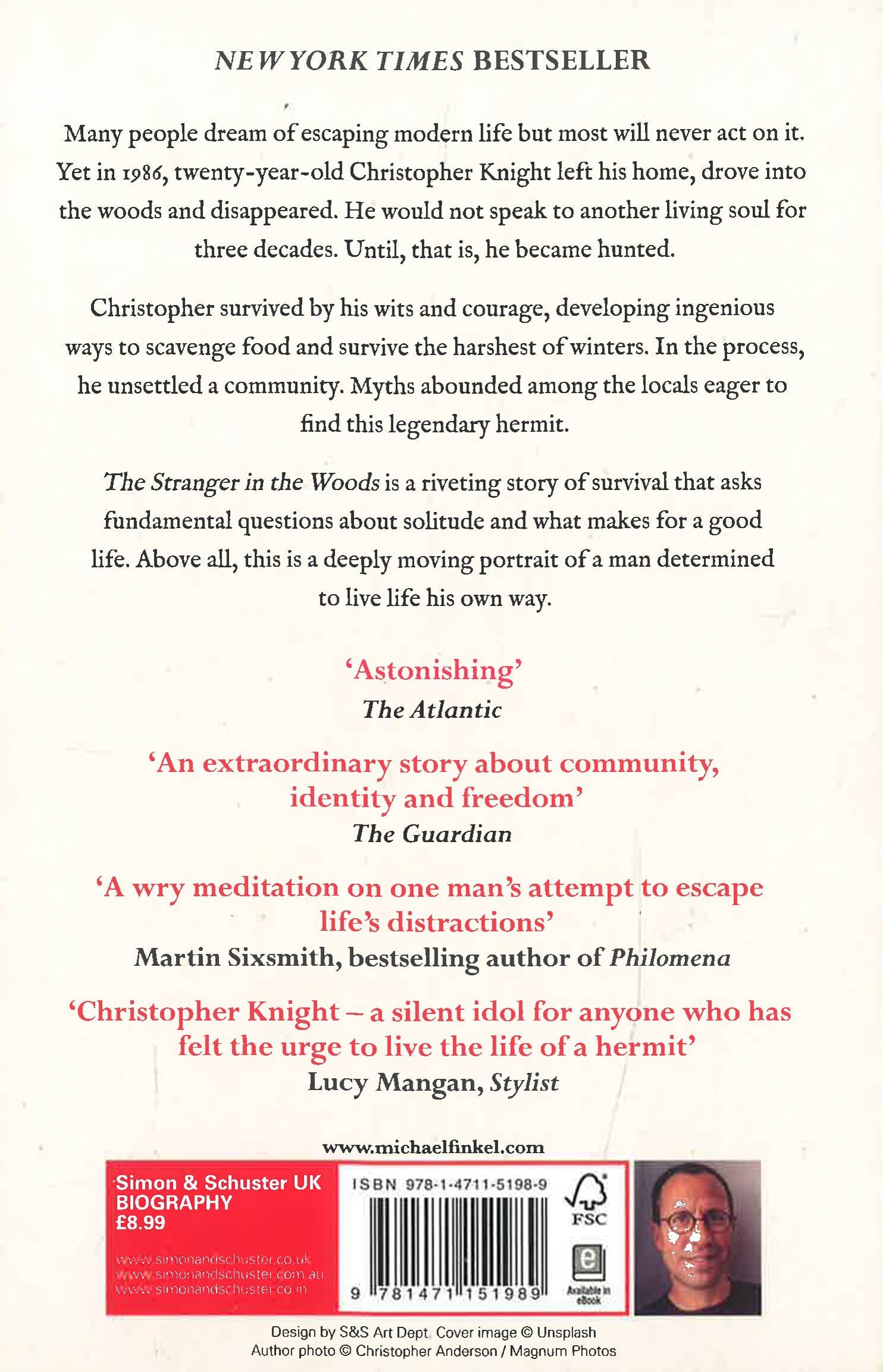 *THE NEW YORK TIMES BESTSELLER* Could you leave behind all that you know and live in solitude for three decades? This is the extraordinary story of the last true hermit - Christopher Knight. 'This was a breath-taking book to read and many weeks later I am still thinking about the implications for our society and - by extension - for my own life' Sebastian Junger, bestselling author of The Perfect Storm 'A wry meditation on one man's attempt to escape life's distractions and look inwards, to find meaning not by doing, but by being' Martin Sixsmith, bestselling author of Philomena and Ayesha's Gift 'Not all heroes wear capes. My latest one is a man called Christopher Knight - a silent idol for anyone who has felt the urge to just sack it all off and live the life of a hermit' Lucy Mangan, Stylist 'An extraordinary story about solitude, community, identity and freedom' Guardian 'A meditation on solitude, wildness and survival. It is also, unexpectedly, a tribute to the joys of reading' The Wall Street Journal In 1986, twenty-year-old Christopher Knight left his home in Massachusetts, drove to Maine, and disappeared into the woods. He would not speak to another human being until three decades later when he was arrested for stealing food. Christopher survived by his wits and courage, developing ingenious ways to store food and water in order to avoid freezing to death in his tent during the harsh Maine winters. He broke into nearby cottages for food, clothes, reading material and other provisions, taking only what he needed. In the process, he unwittingly terrified a community unable to solve the mysterious burglaries. Myths abounded amongst the locals eager to find this legendary hermit. Based on extensive interviews with Knight himself, this is a vividly detailed account of his secluded life and the challenges he faced returning to the world. The Stranger in the Woods is a riveting story of survival that asks fundamental questions about solitude and what makes for a good life. Above all, this is a deeply moving portrait of a man determined to live life his own way.